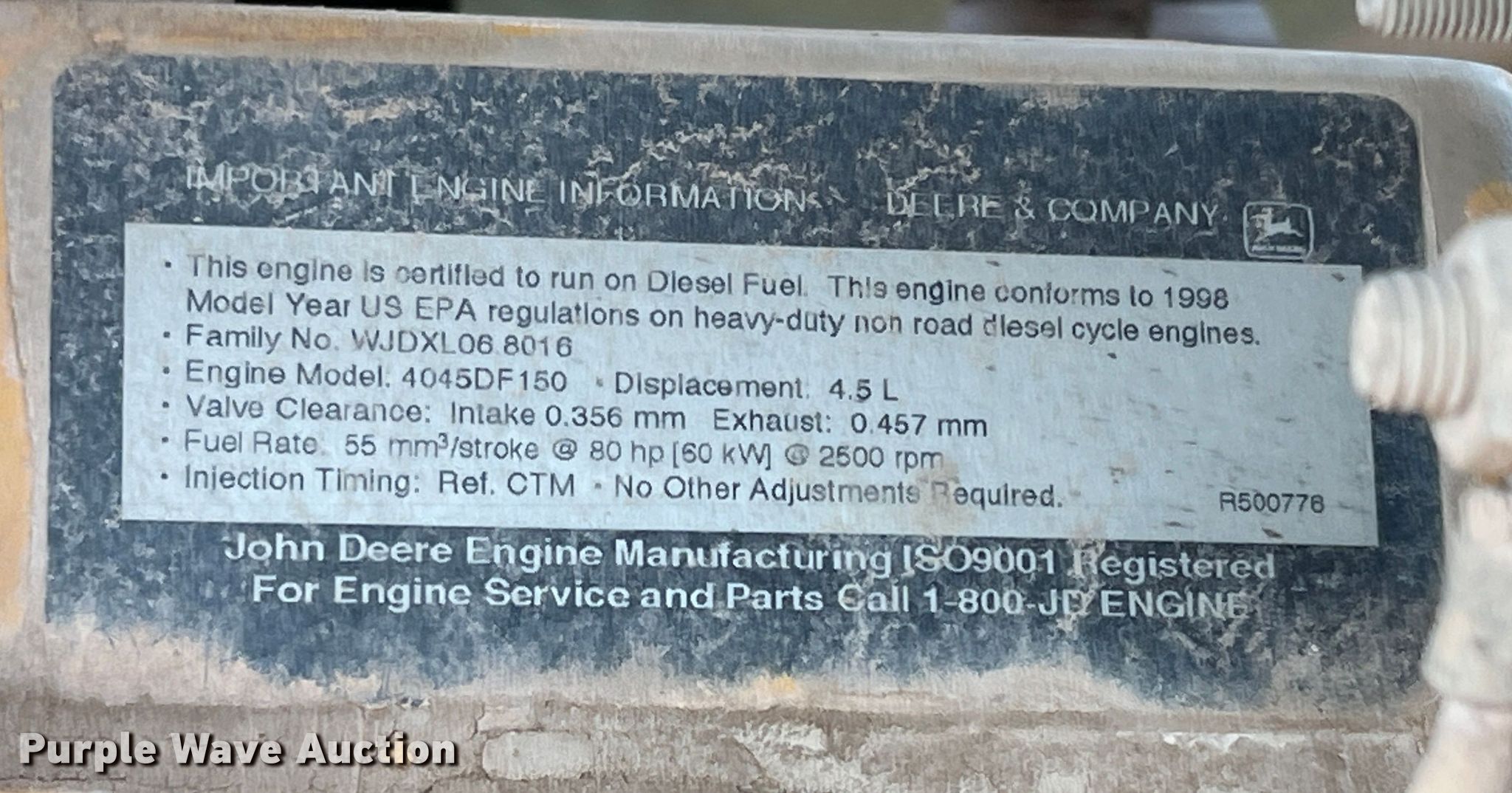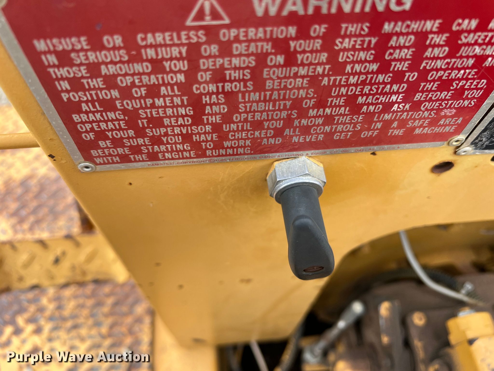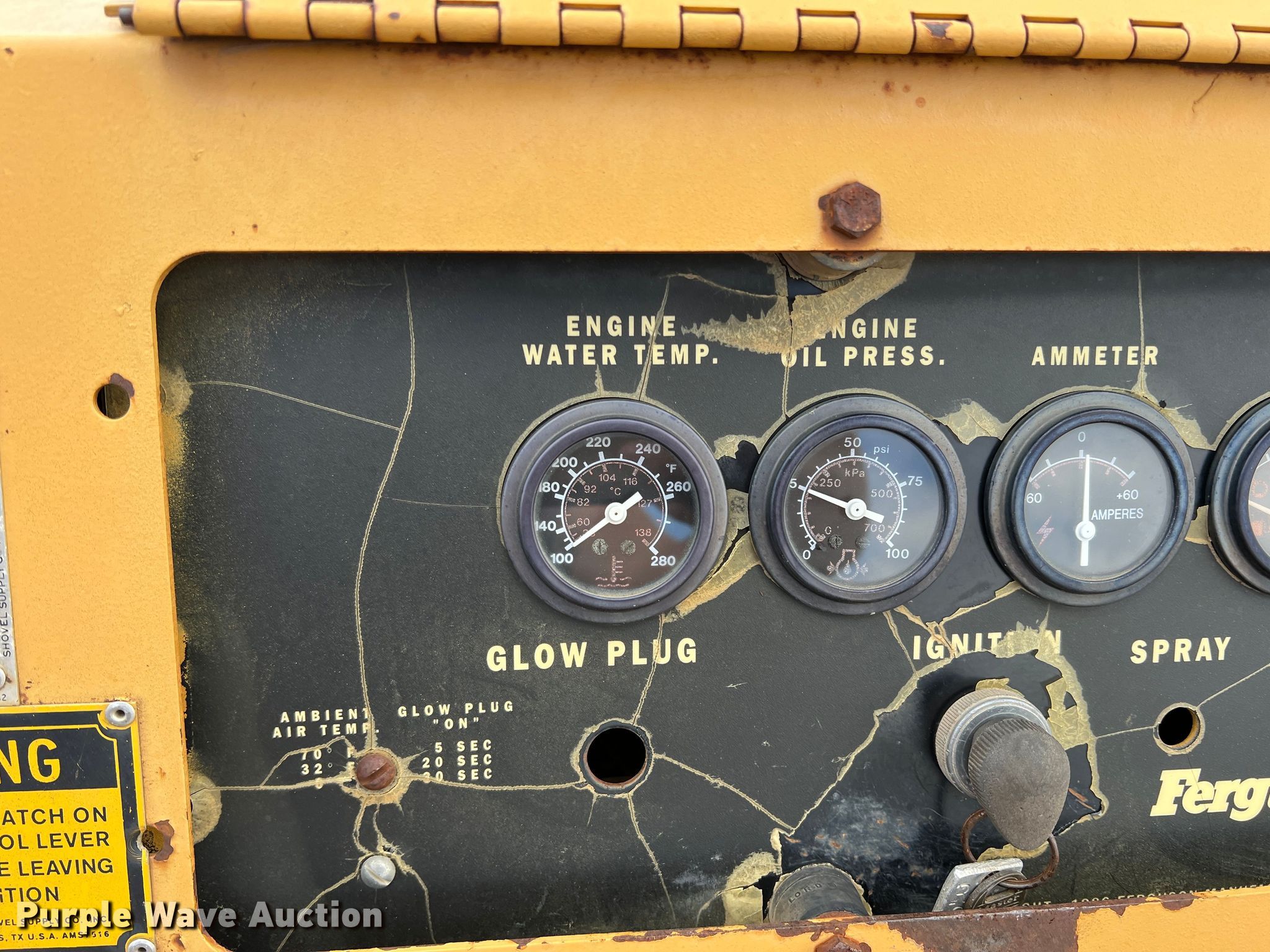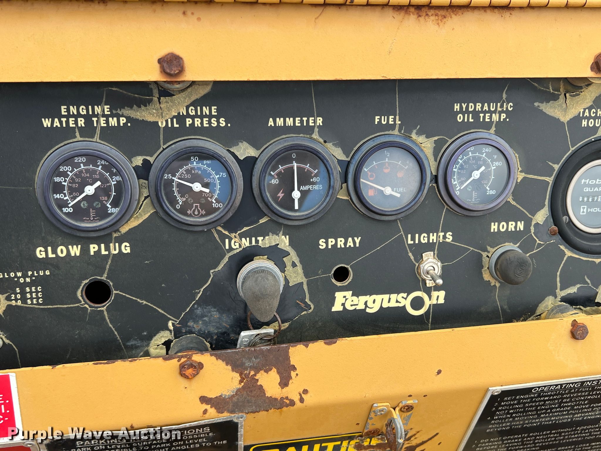 1999 Ferguson SP912 pneumatic roller. Hours: 968 on meter, Serial: 1516. Engine John Deere , Cylinders: 4, Fuel type: Diesel. Transmission Hydrostatic, 4F - 4R. Tires Size: 7.50-150, Quantity: 9. Notes Flat tire, Unknown operating condition. 102 West College Street. Burkburnett, TX 76354