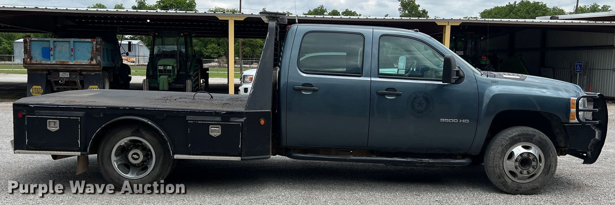 Purple Wave is selling a used 3/4 or 1 Ton Pickup or Van in Texas. This item is a 2013 Chevrolet 3500HD Crew Cab flatbed pickup truck with the following: Miles: 56,160 on odometer, VIN: 1GB4C0C84DF231243