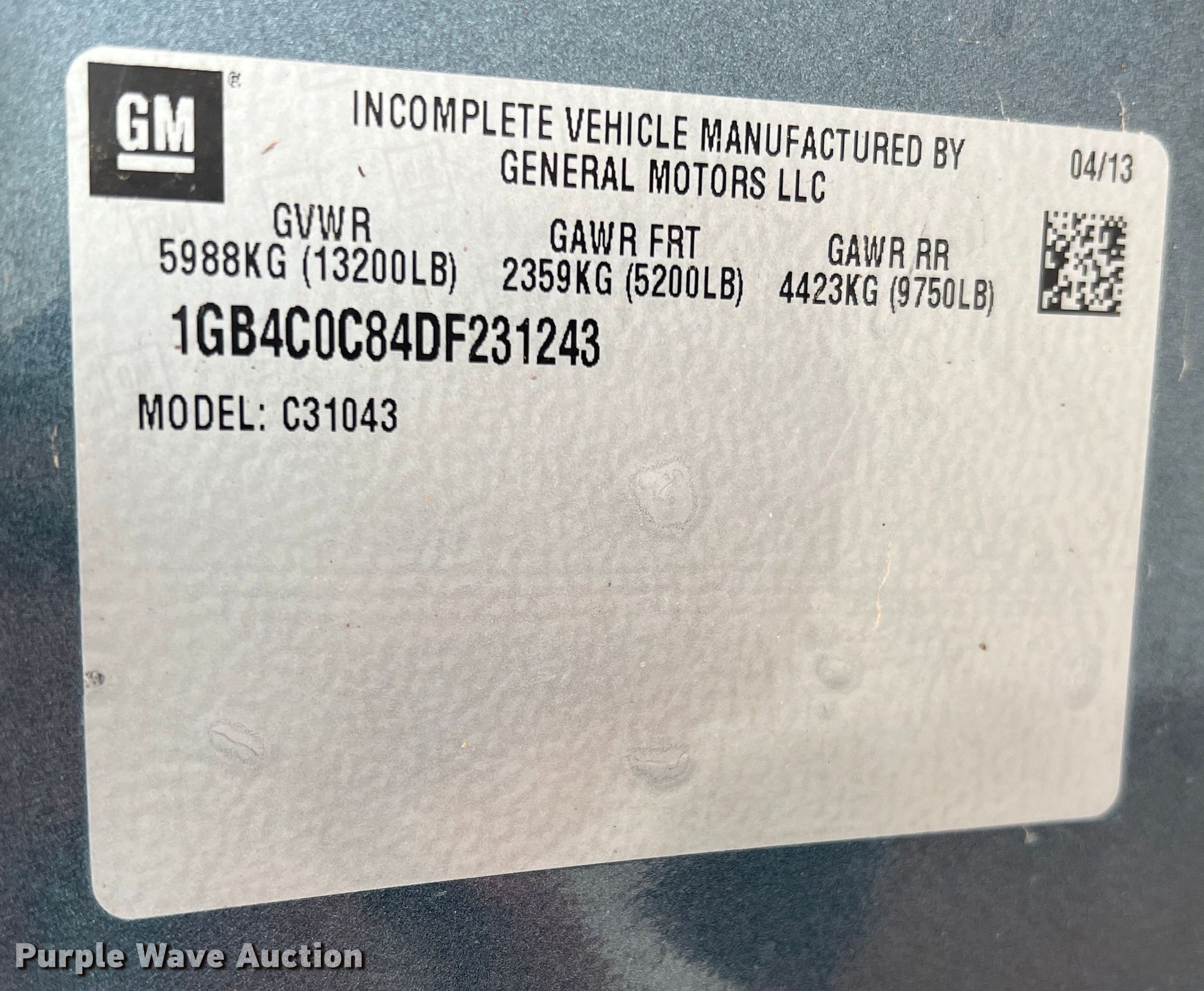 2013 Chevrolet 3500HD Crew Cab flatbed pickup truck. Miles: 56,160 on odometer, VIN: 1GB4C0C84DF231243. Engine Displacement: 6.6L V8 OHV, Cylinders: 8, Fuel type: Diesel. Transmission Automatic. Interior AC, Heat, Power windows, Power locks, Cruise control. Features Flatbed 112" L x 98" W, Hitch: Gooseneck. Tires Front: 235/80R17, Rear: same. Notes ECU issues , Contents not included , Battery not included , Interior driver door handle broken. Texas title. 102 West College Street. Burkburnett, TX 76354