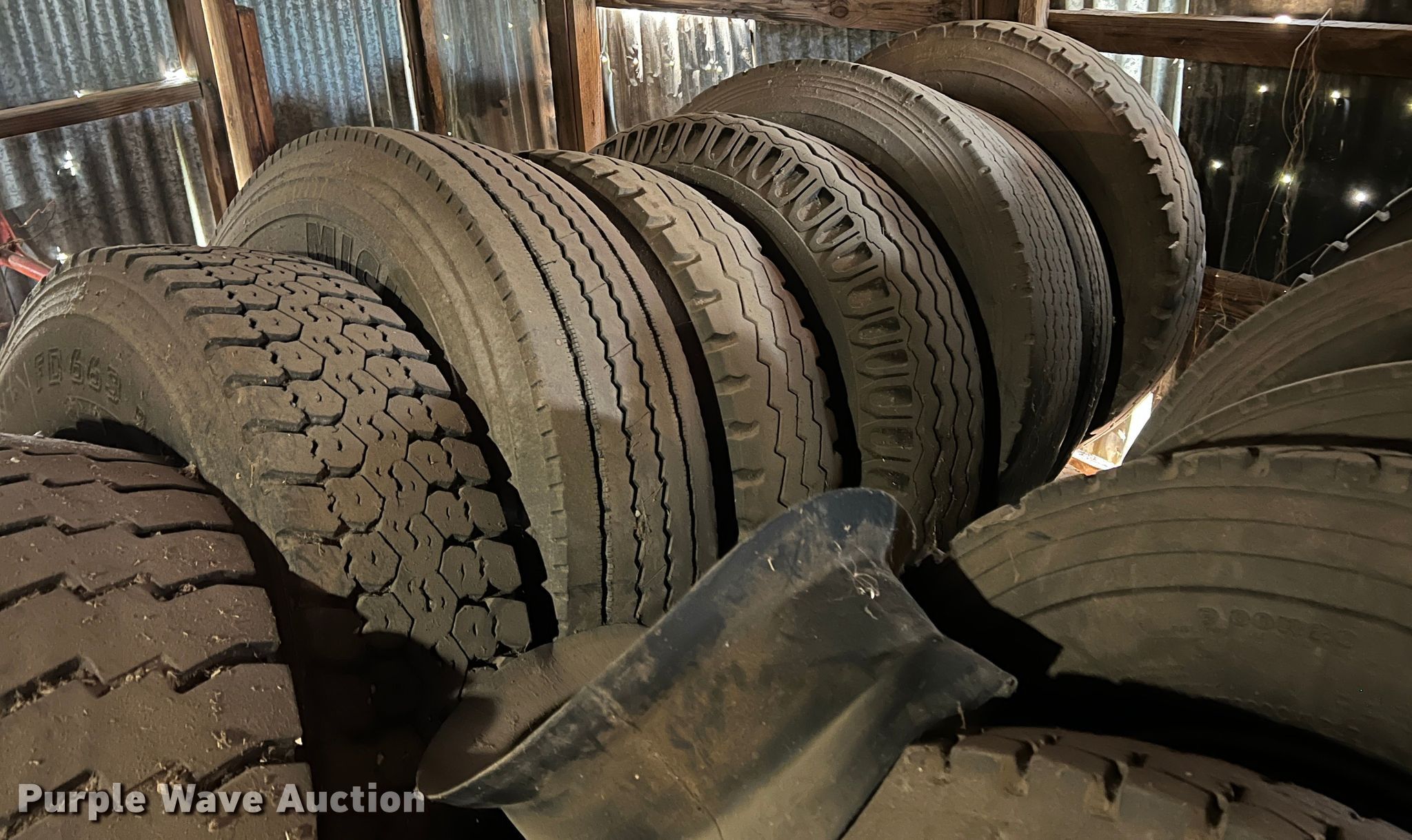Purple Wave is selling a used Industrial Tires or Tracks in Texas. This item is a Approximately 27 tires and wheels with the following: Tire machine, Unknown operating condition