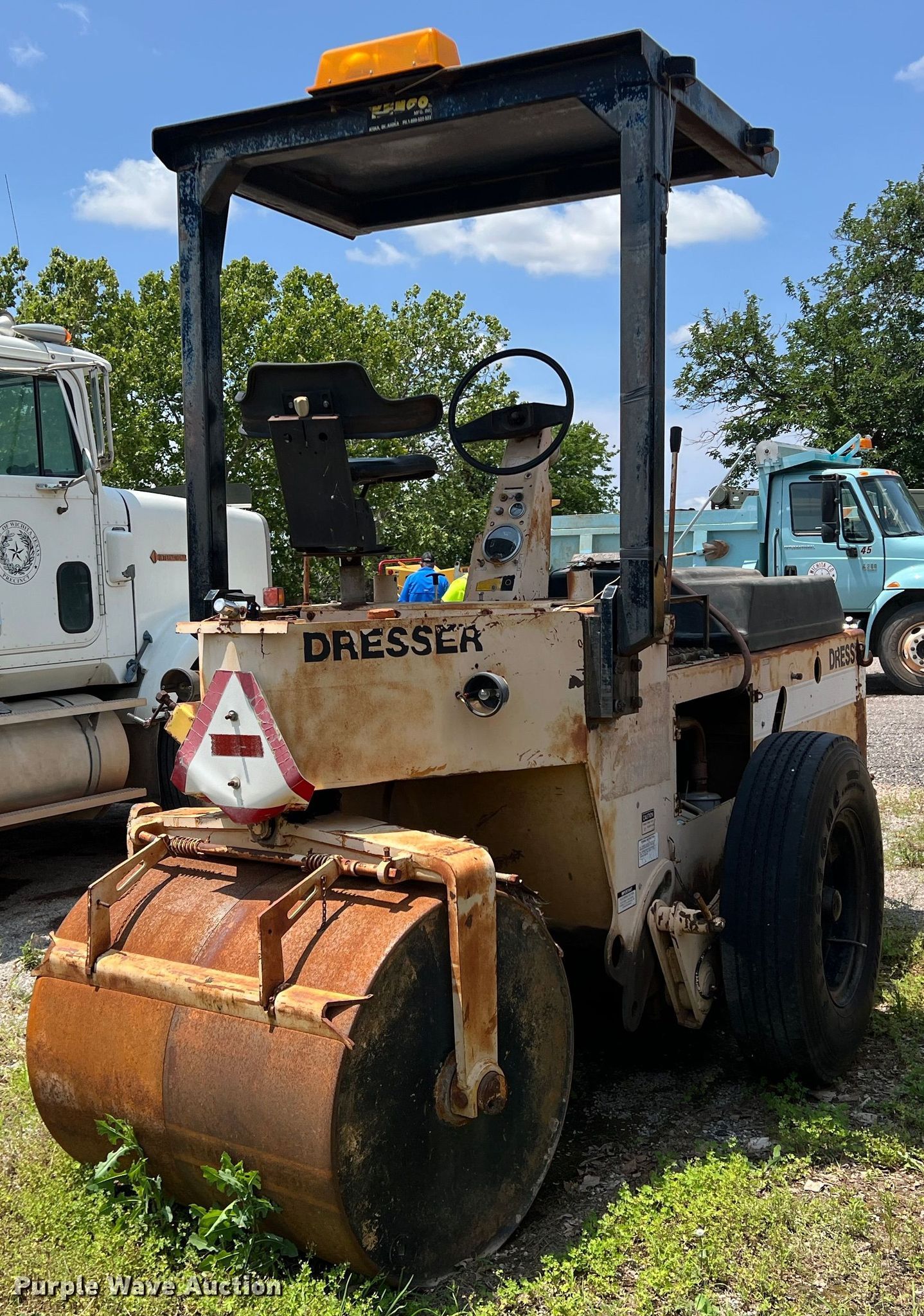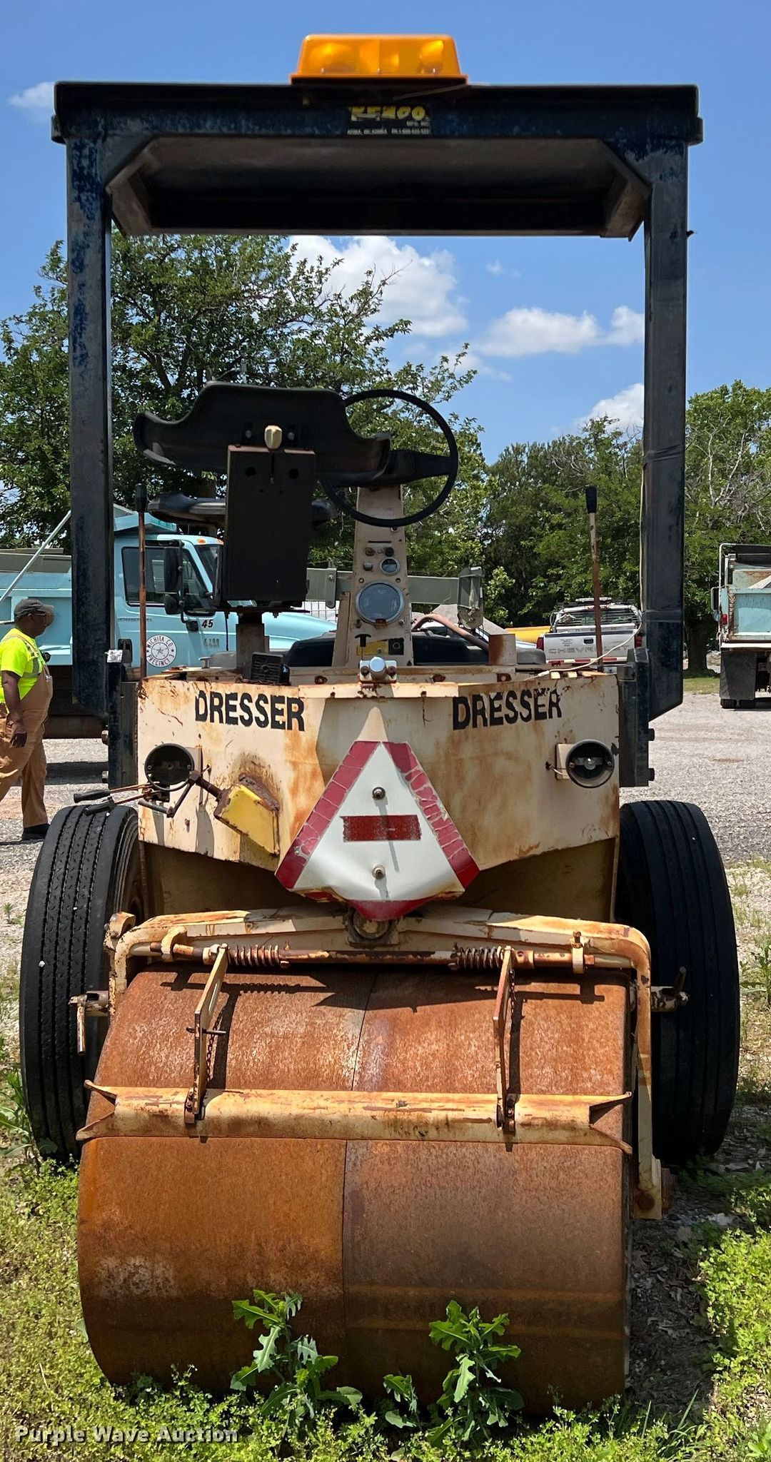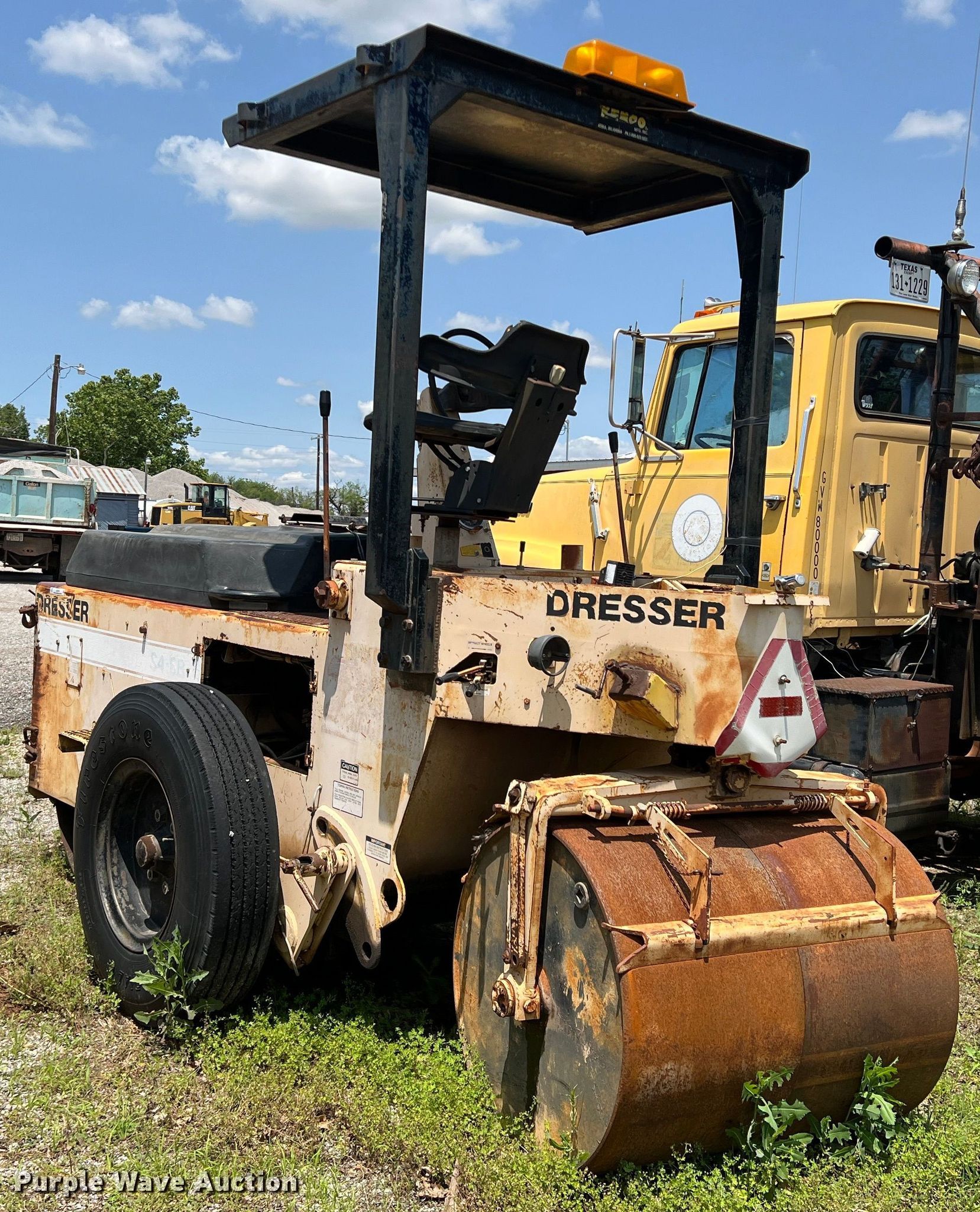Dresser S4-6B double drum roller. Serial: R250002U061597. Engine Cylinders: 4, Fuel type: Diesel. Transmission Hydrostatic. Features Drum: Smooth, Front drum Width: 44", Diameter: 48", Rear drum Width: 40", Diameter: 34", Drum scrapers: Front, Rear. Tires Size: 10.00R20, Steel wheels. Notes Non-operational unit. 610 East Jefferson Avenue. Iowa Park, TX 76367