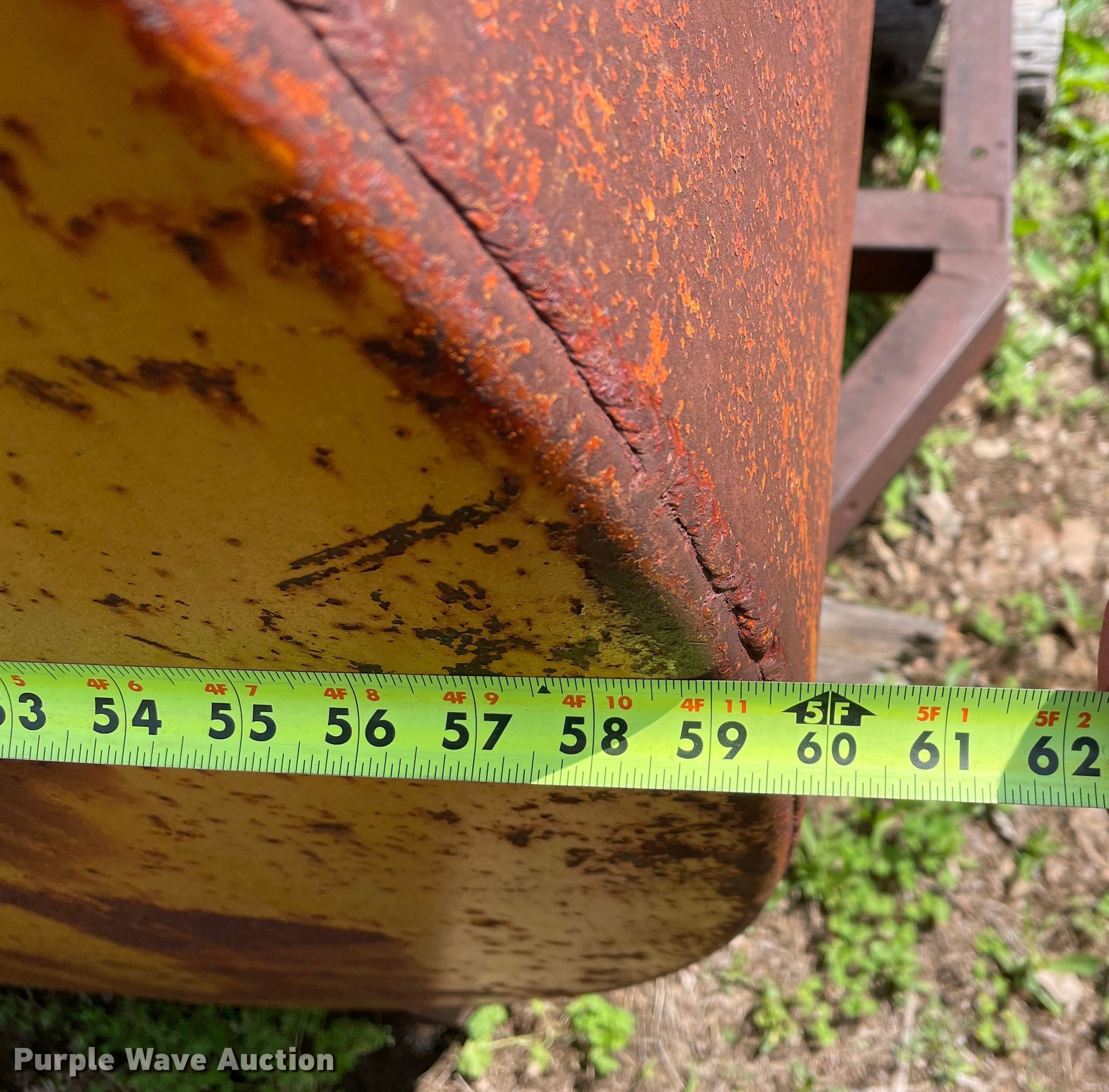 Purple Wave is selling a used Tanks in Texas. This item is a Steel water tank with the following: Dimensions: 121" L x 60" W, Capacity: Approx. 1,500 gallons, Skid mounted