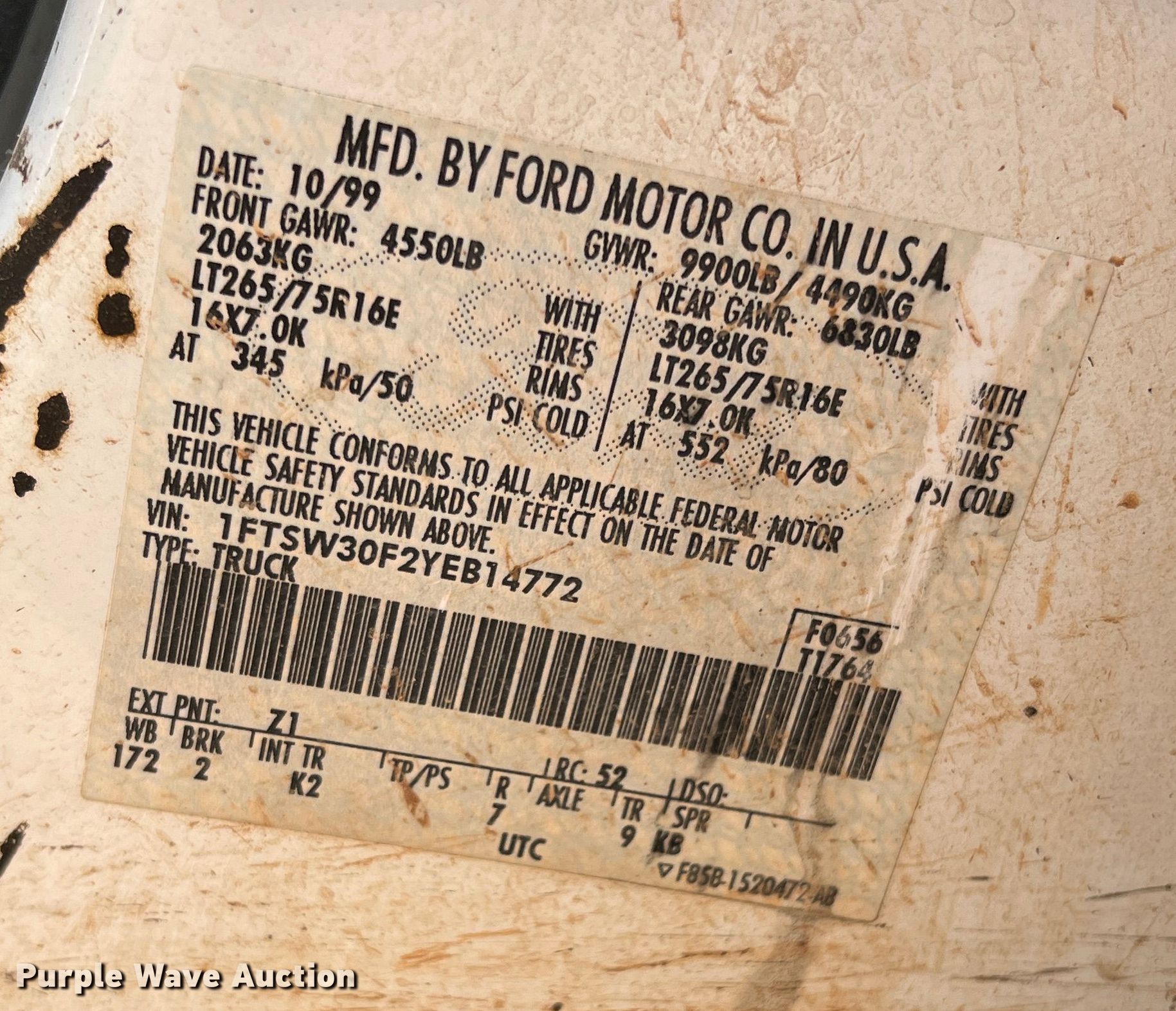 Purple Wave is selling a used 3/4 or 1 Ton Pickup or Van in Texas. This item is a 2000 Ford F350 Super Duty Crew Cab pickup truck with the following: Miles: 122,090 on odometer, VIN: 1FTSW30F2YEB14772