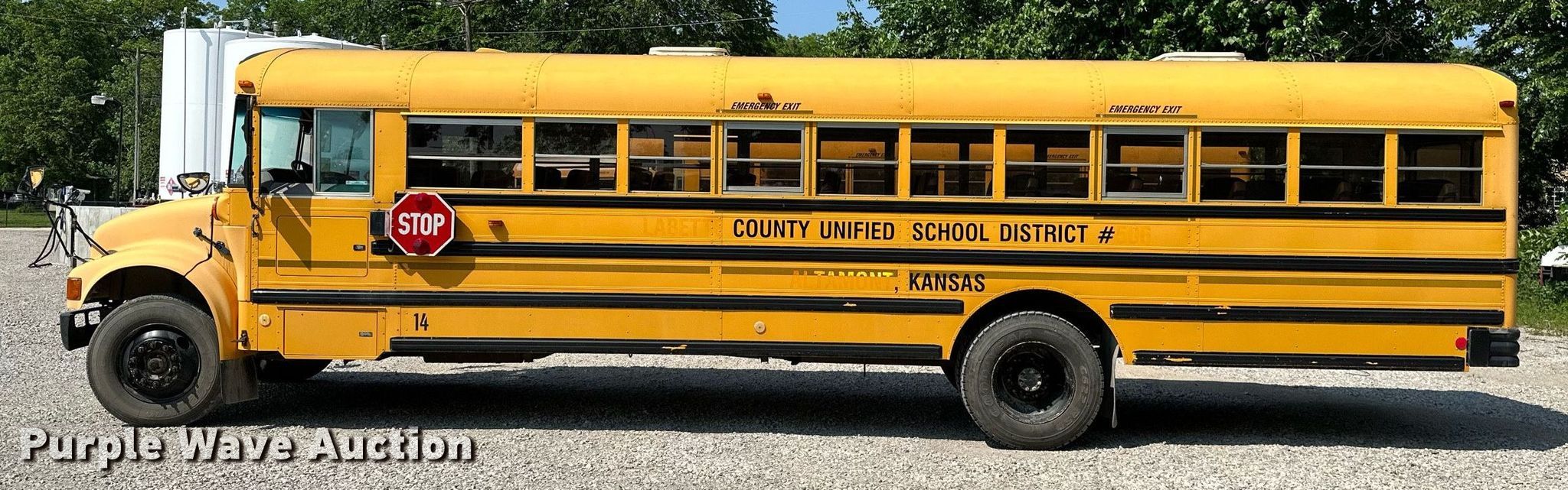 Purple Wave is selling a used Bus in Kansas. This item is a 2002 American school bus with the following: Miles: 238,879 on odometer, Hours: 8,585 on meter, VIN: 4DRBRAAP72B946891