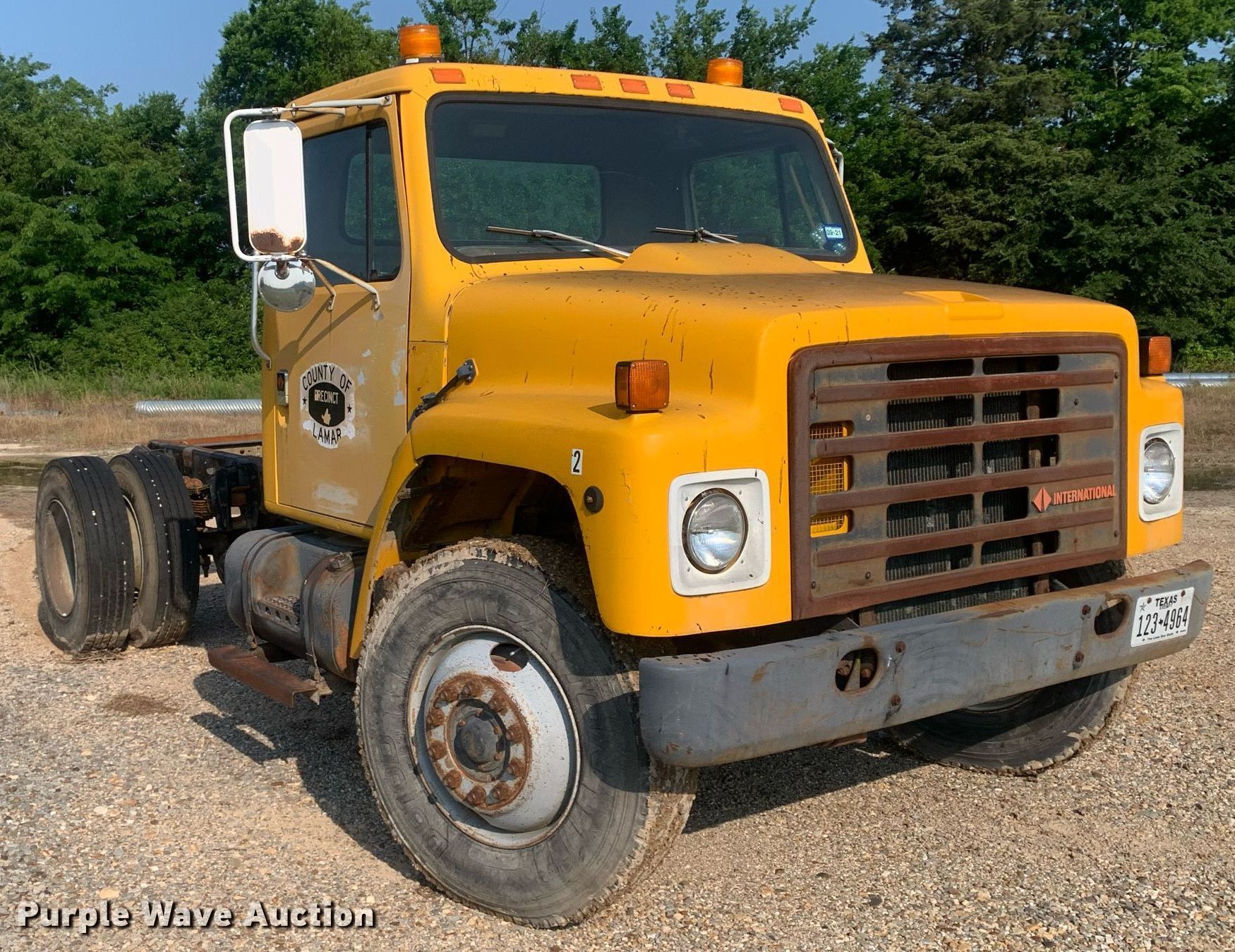 1986 International S1700 truck cab and chassis. Miles: 123,250 on odometer, VIN: 1HSLCHYNXGHA67522. Engine International, Cylinders: 8, Fuel type: Diesel. Transmission Spicer, Manual, Speed: 10. Chassis Axles: Single, Suspension: Spring, Brakes: Air, PTO, Truck chassis: 116". Interior Heat. Tires Front: 11R22.5, Rear: 10R22.5. Notes No battery, Possible engine issues, cracked head , Non-operational unit. Texas title. Title distribution may be delayed up to 14 days from verification of funds. Lamar County, TX Precinct 4. County Road 44110. Paris, TX 75462