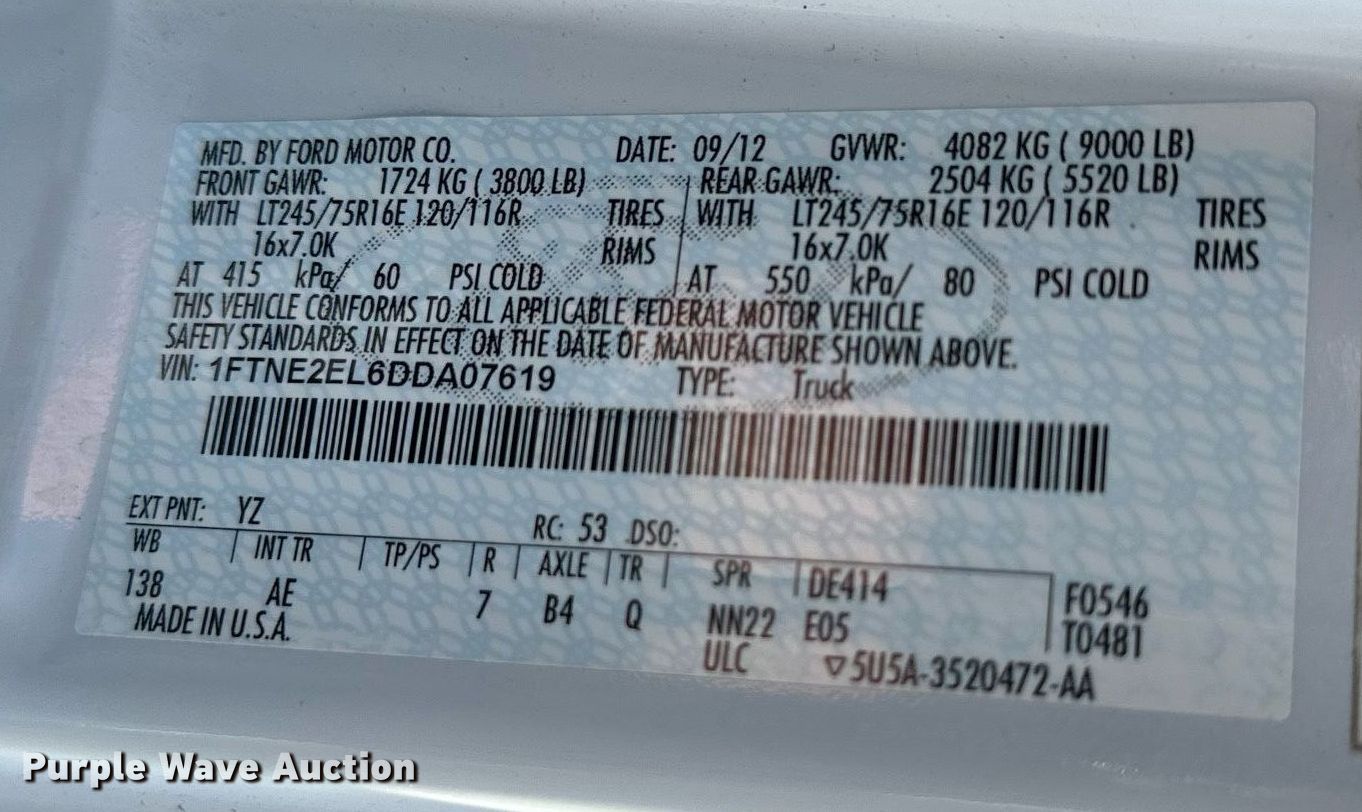 Purple Wave is selling a used 3/4 or 1 Ton Pickup or Van in Kansas. This item is a 2013 Ford E250 van with the following: Miles: 50,568 on odometer, VIN: 1FTNE2EL6DDA07619
