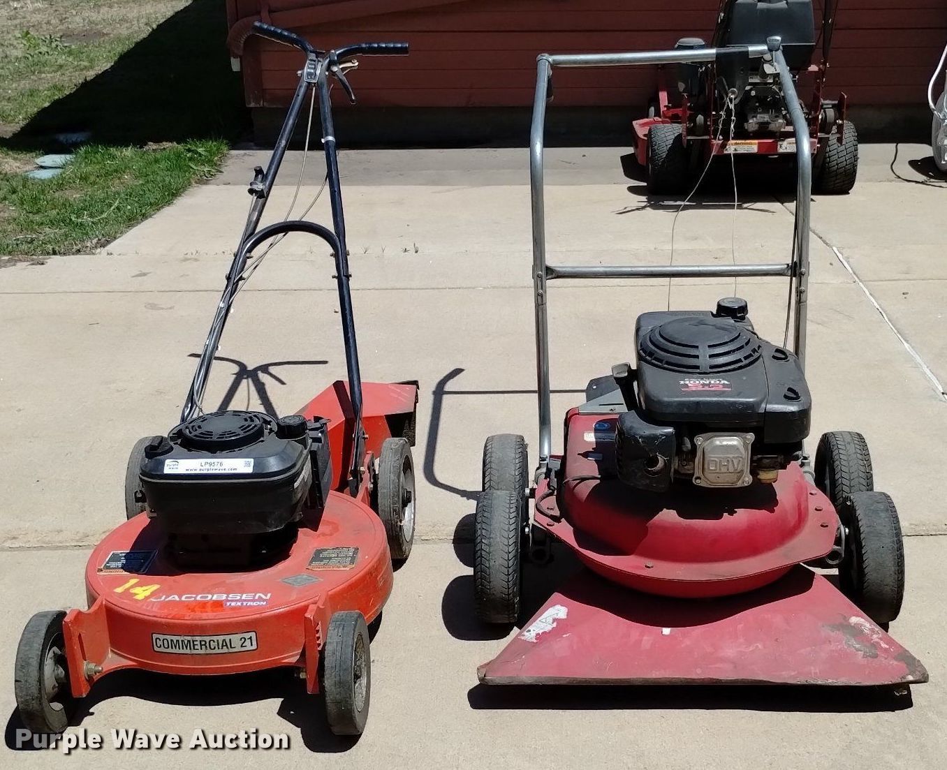 Purple Wave is selling a used Lawn and Garden in Colorado. This item is a Lawn equipment with the following: Parker SV9405H lawn vacuum, Honda single cylinder gas engine, Width: 30", Jacobsen Commercial 21 push mower, Briggs & Stratton single cylinder gas engine, Width: 21"
