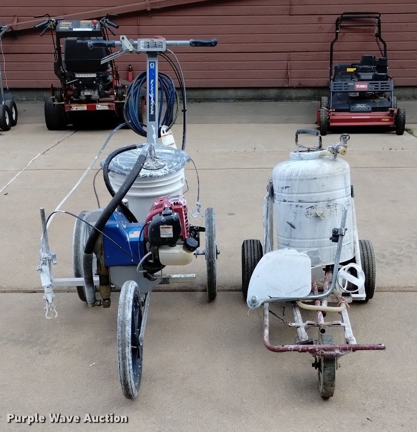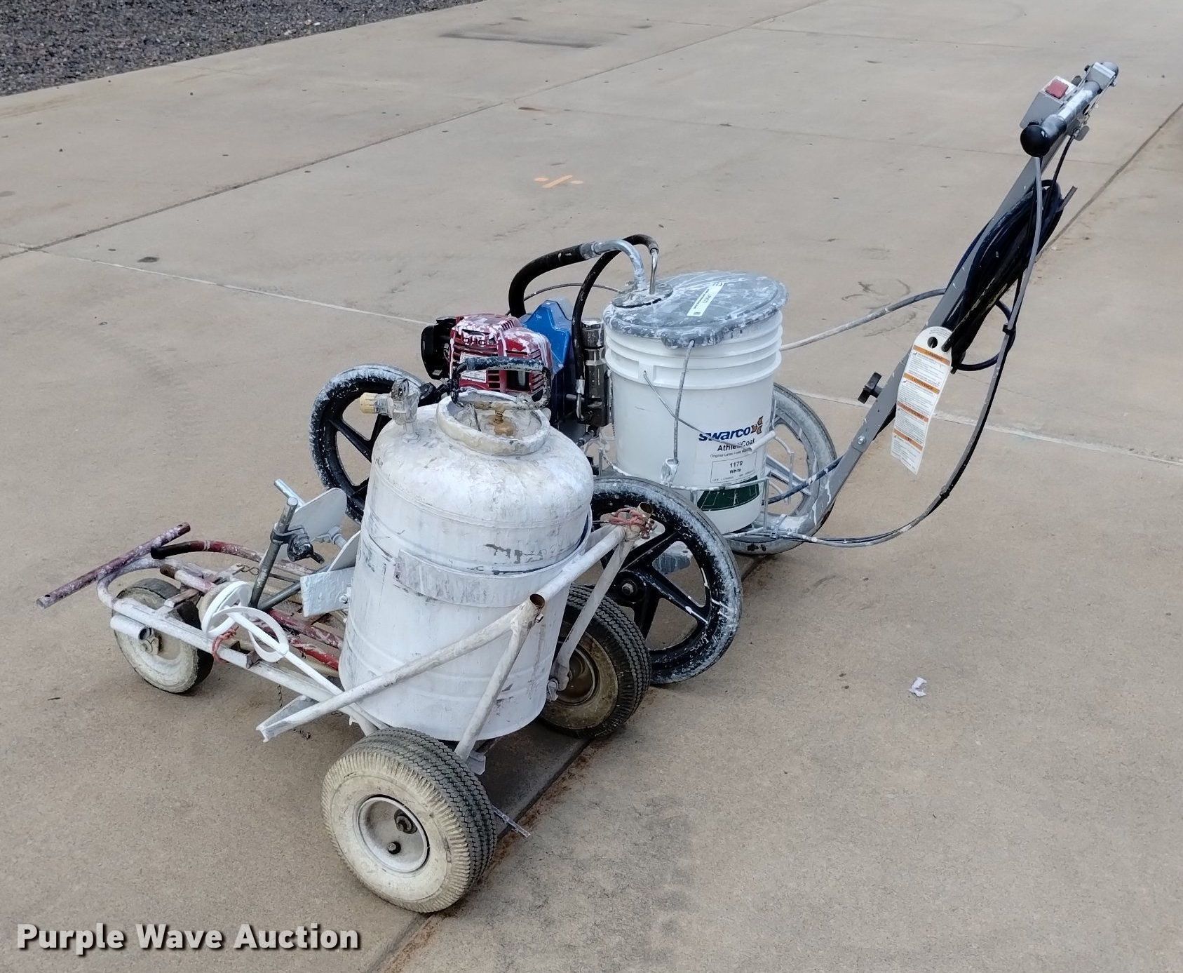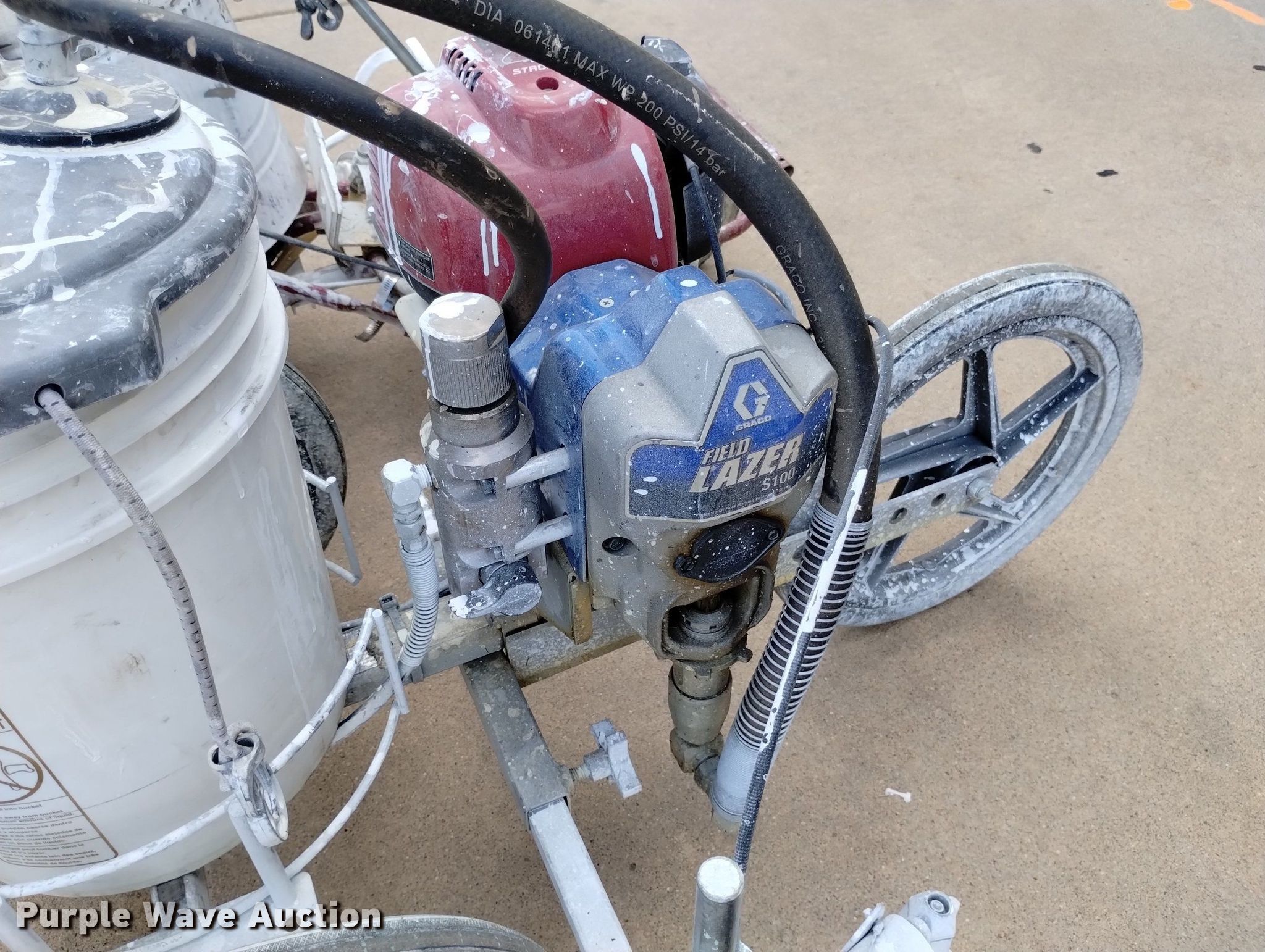 Purple Wave is selling a used Lawn and Garden in Colorado. This item is a (2) field paint stripers with the following: Fieldlazer 5100, Single cylinder gas engine, Five gallon capacity, Field paint striper