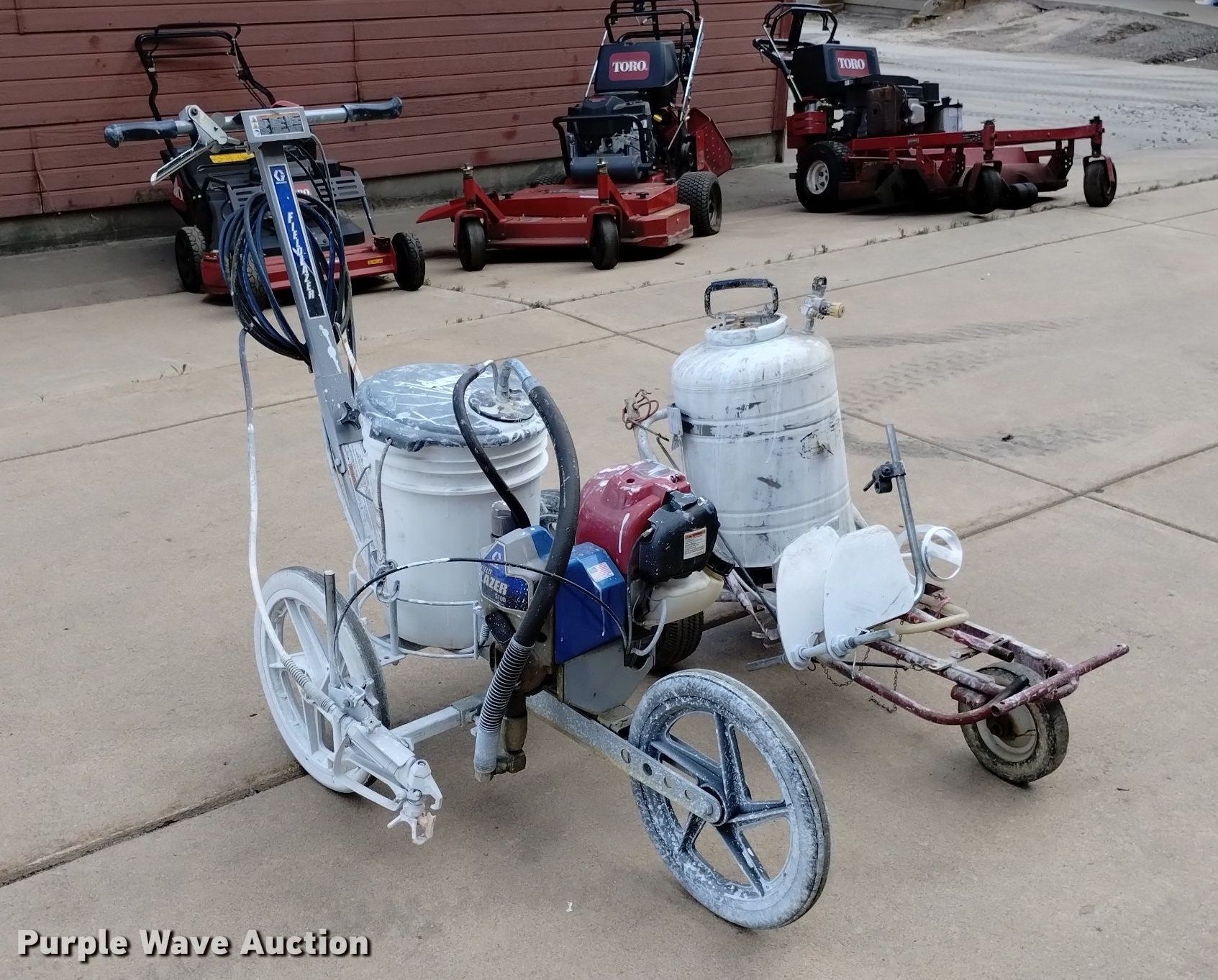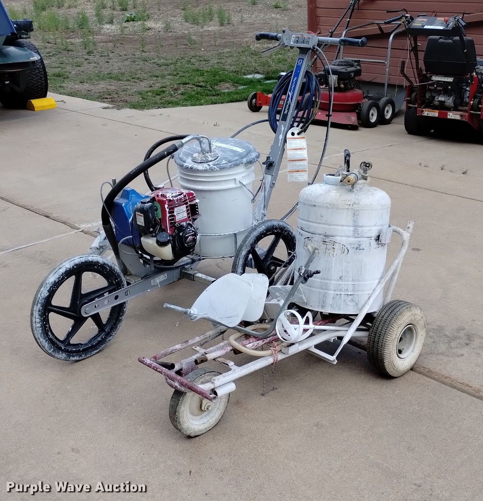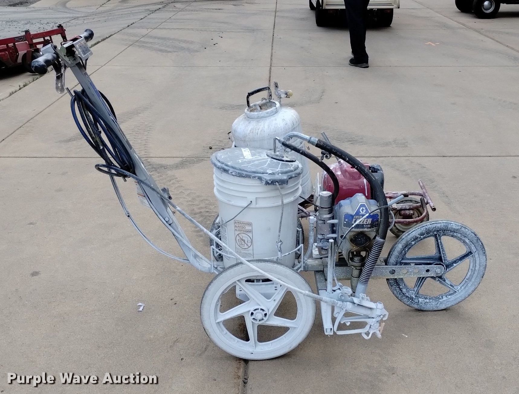Purple Wave is selling a used Lawn and Garden in Colorado. This item is a (2) field paint stripers with the following: Fieldlazer 5100, Single cylinder gas engine, Five gallon capacity, Field paint striper