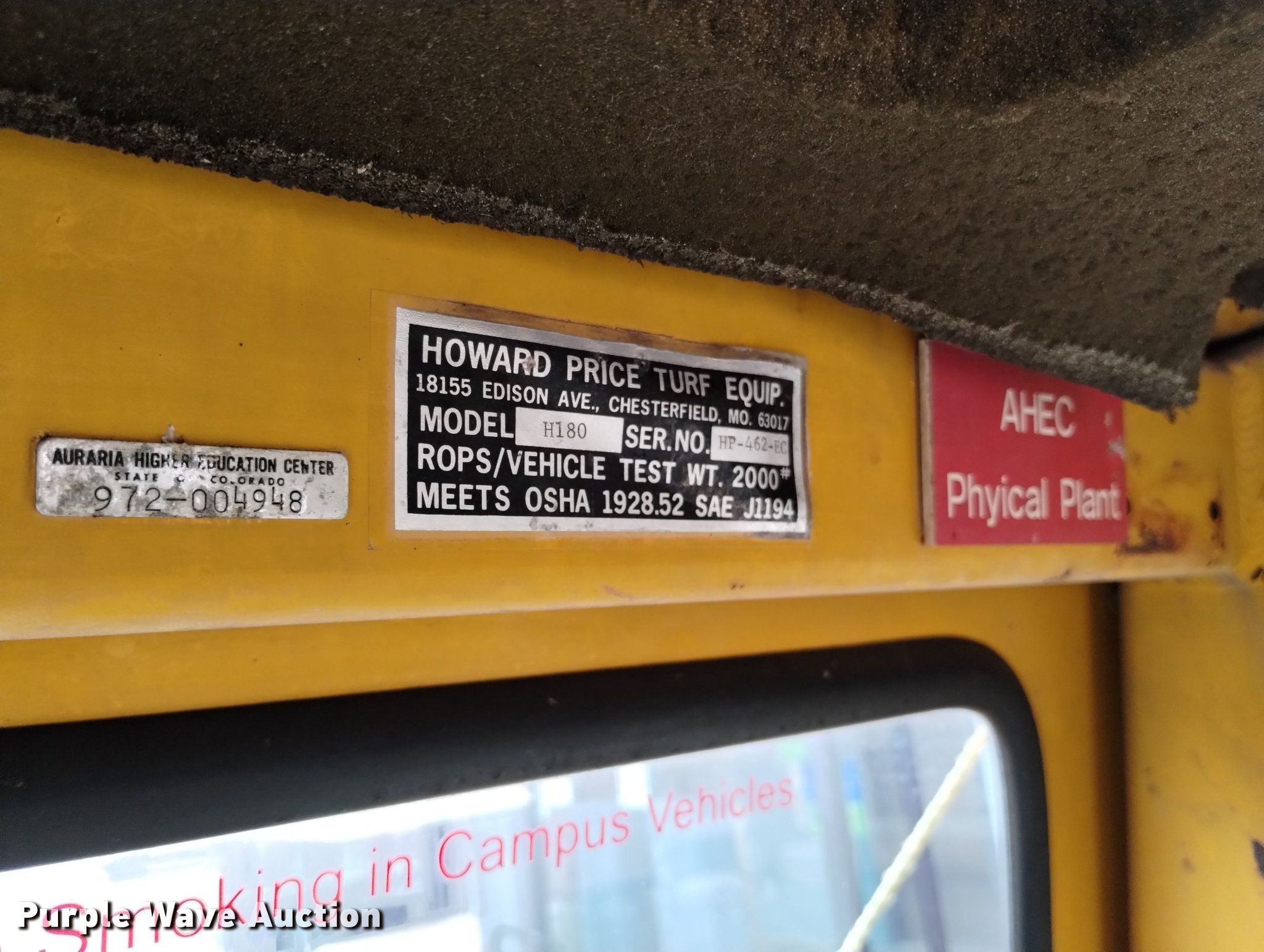 Purple Wave is selling a used Broom in Colorado. This item is a Howard H180 broom with the following: Hours: 3,130 on meter, Serial: HP-462-EC