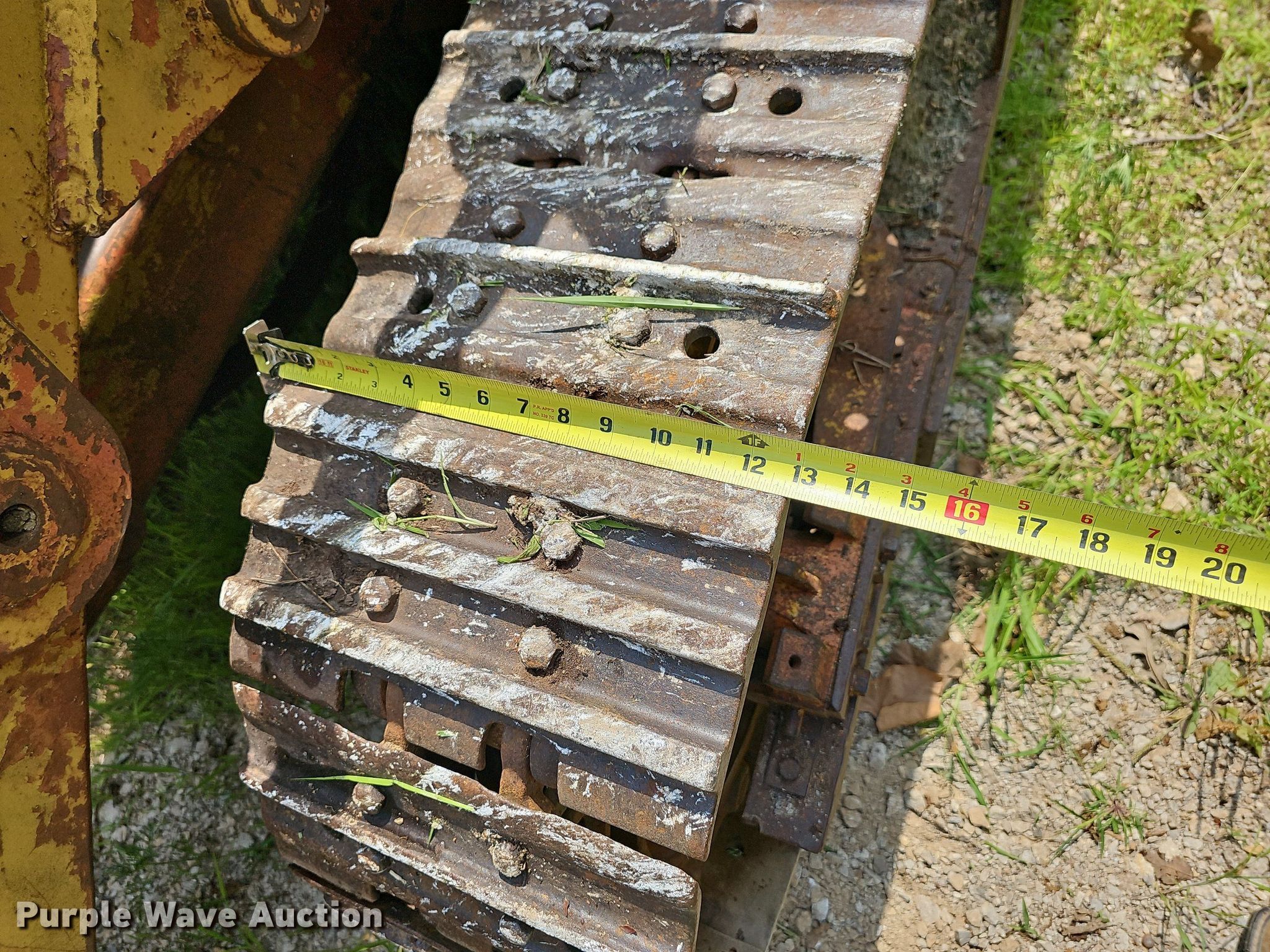 Allis Chalmers TS5 track loader. Hours: 214 on meter, Serial: 4133. Engine Cylinders: 2, Fuel type: Diesel. Transmission Direct-drive. Operators station Bucket controls: Two-lever. Features Bucket Width: 75", Cutting edge: Bolt-on. Tracks Width: 13", Grouser pads: Single. Crawford State Park. 1 Lake Rd. Farlington, KS 66734