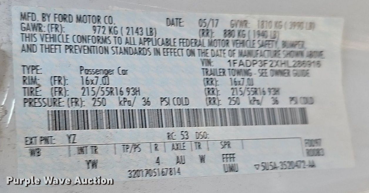 Purple Wave is selling a used Passenger Vehicle in Nebraska. This item is a 2017 Ford Focus SE with the following: Miles: 88,506 on odometer, VIN: 1FADP3F2XHL286916, Unit #: 10310