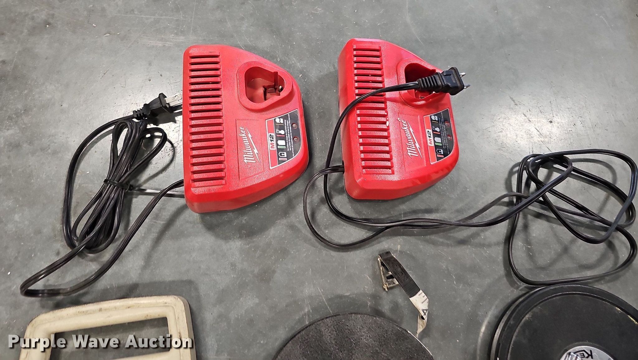 • (2) Milwaukee M12 battery chargers