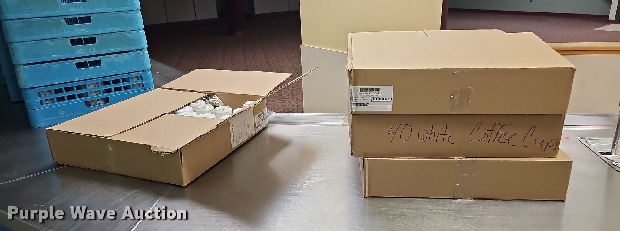 Purple Wave is selling a used Restaurant Equip. in Nebraska. This item is a Kitchen equipment with the following: Coffee cups, Quantity: Approx. 159, Dish drying racks, Quantity: Approx. 20
