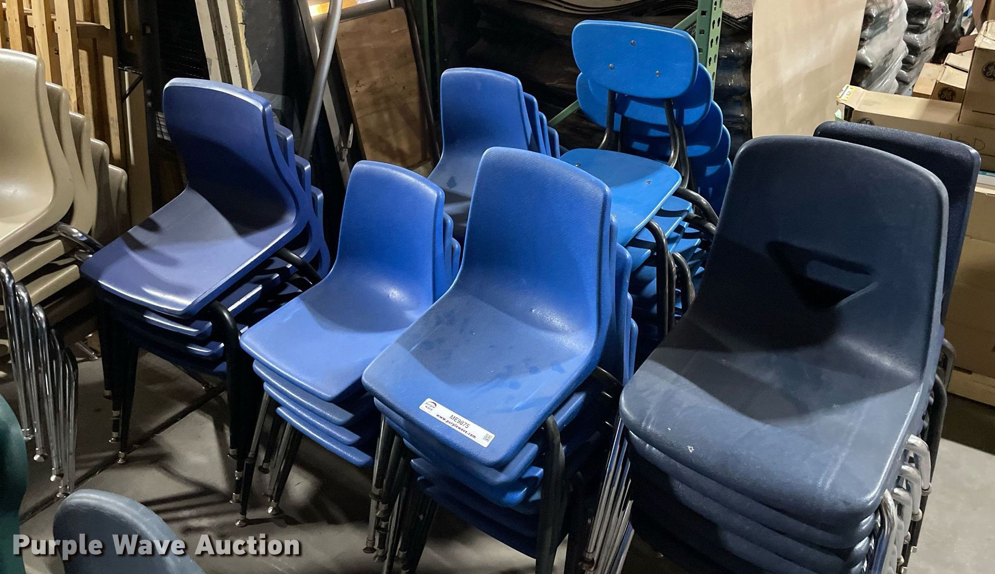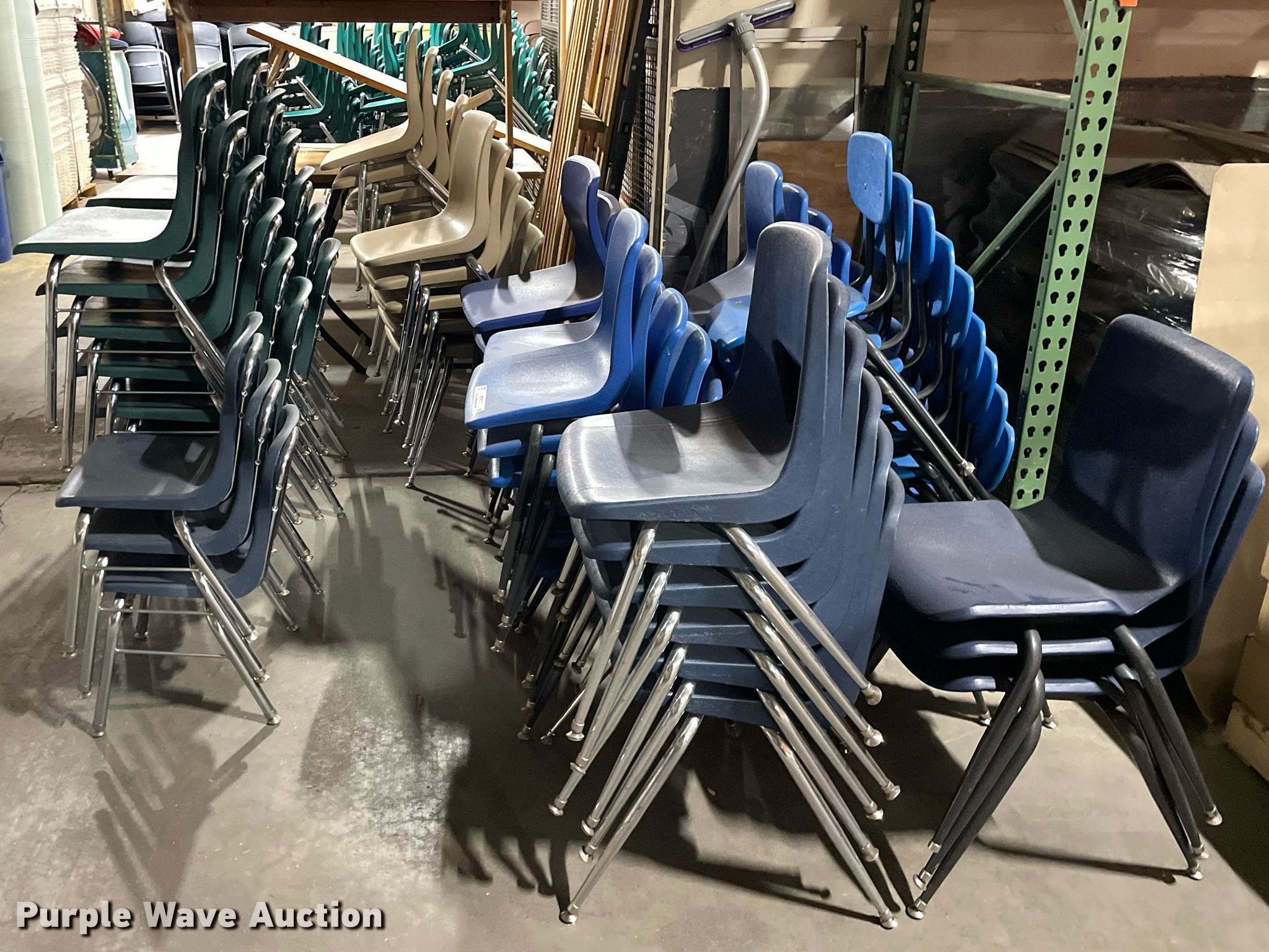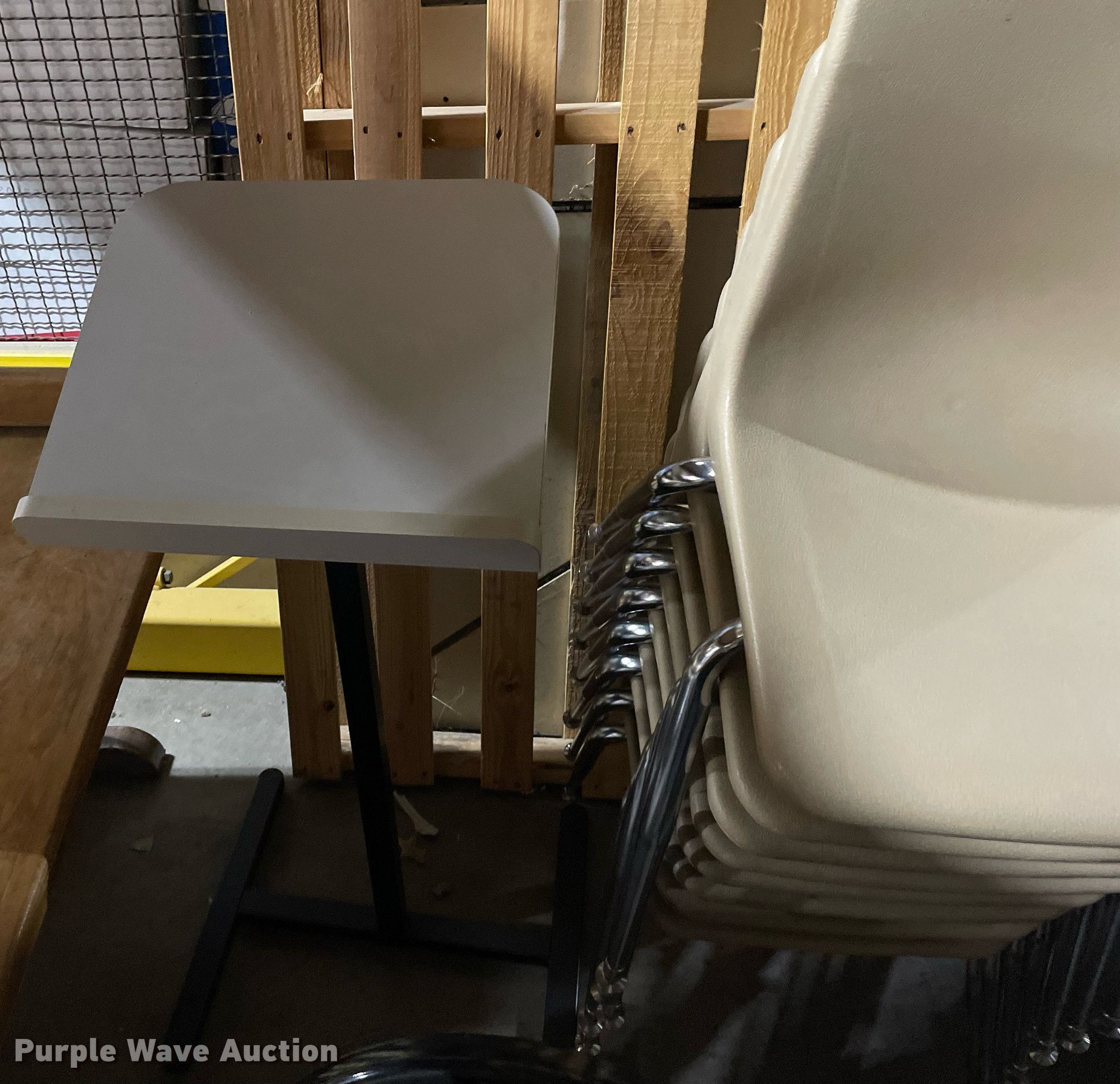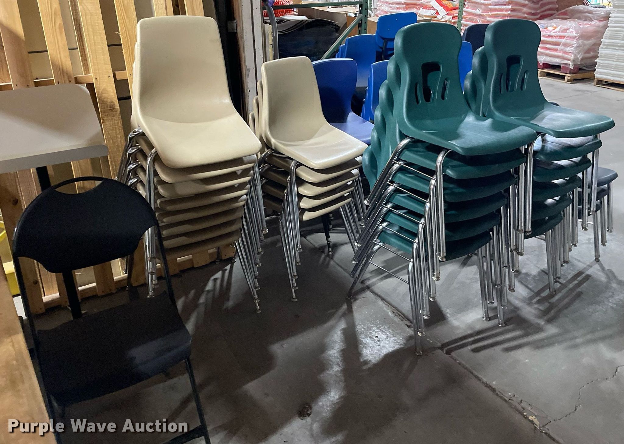 Purple Wave is selling a used Furniture in Kansas. This item is a Furniture with the following: Approx. 70 chairs, (4) tables, Podium
