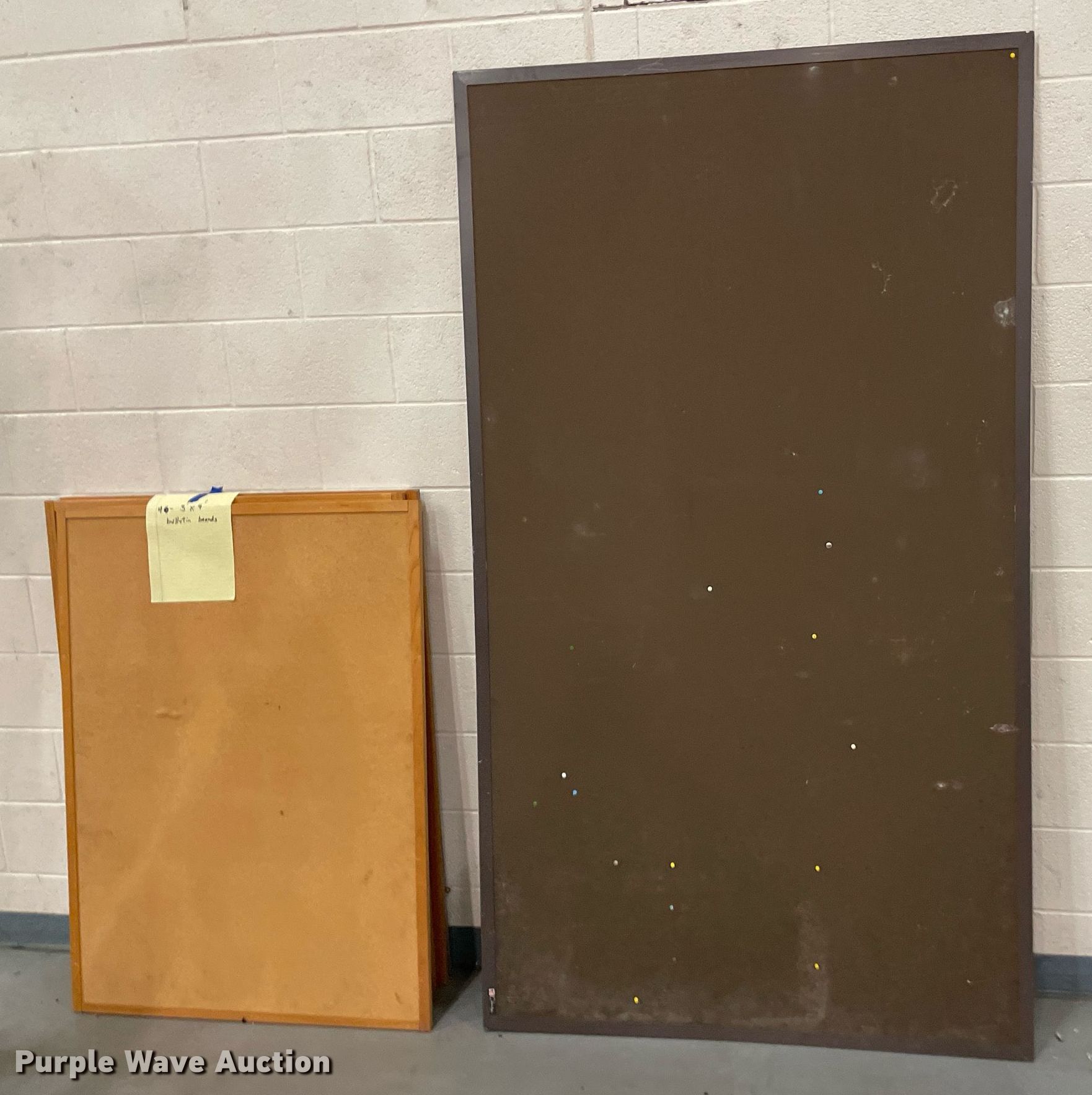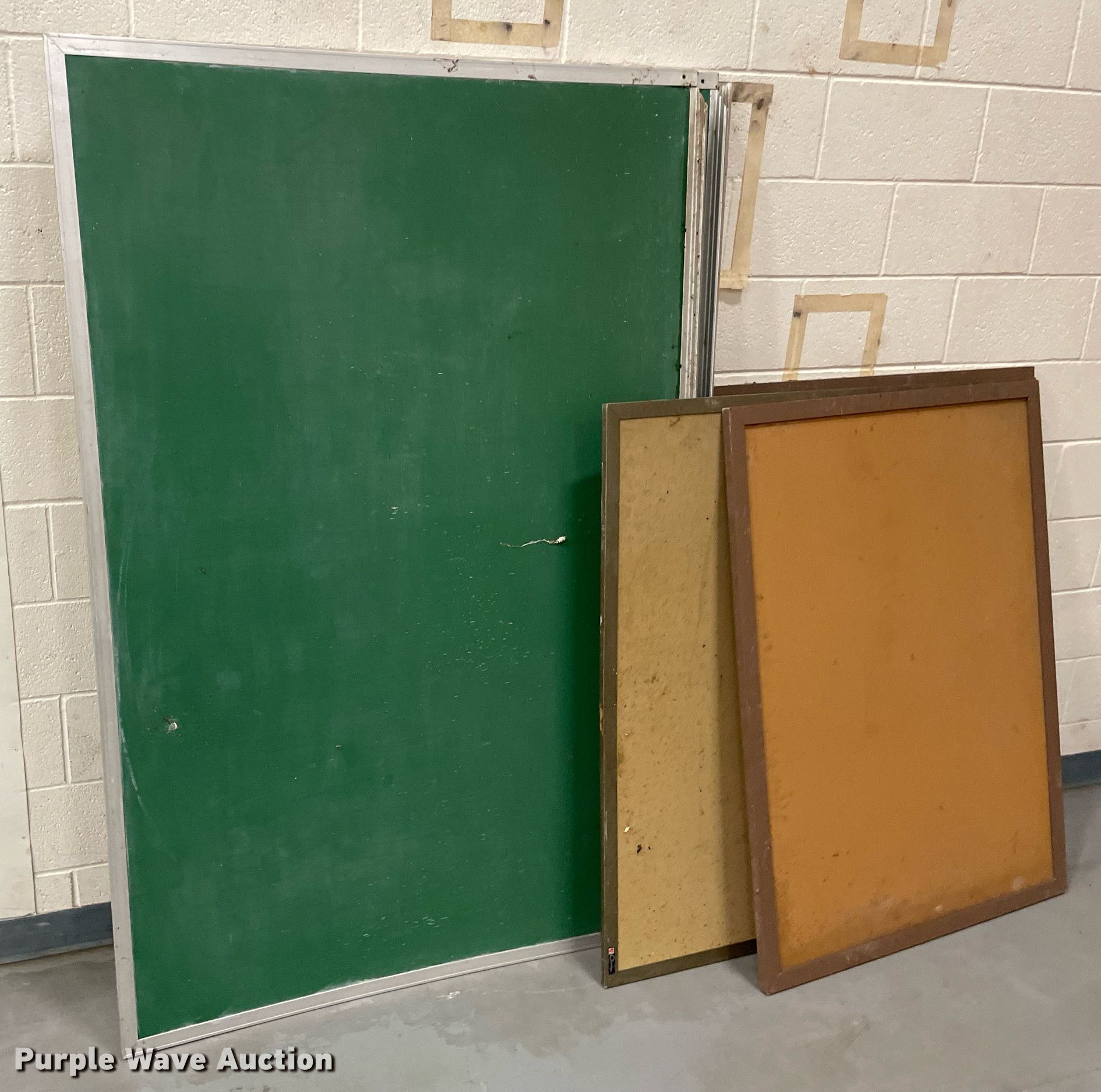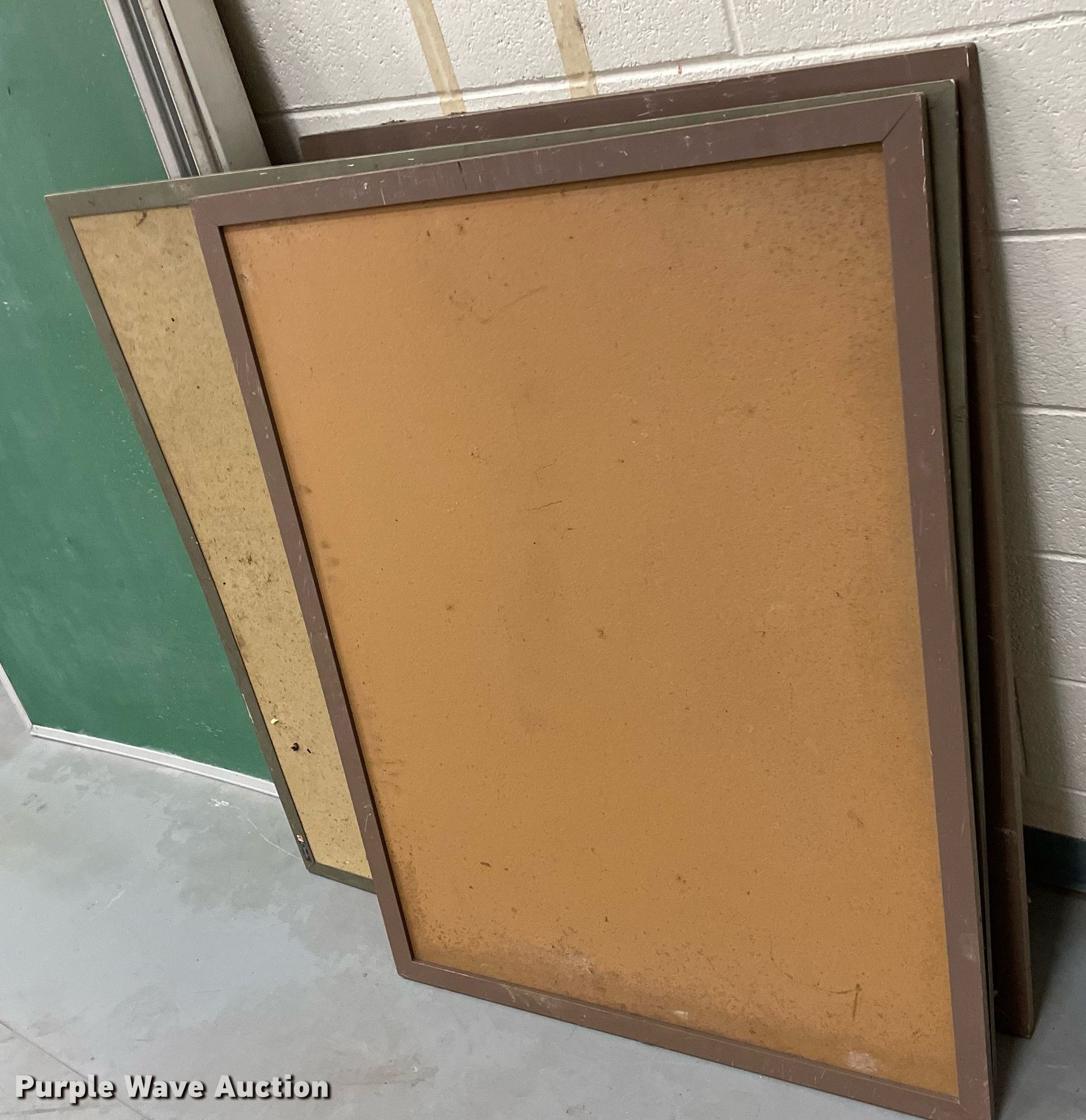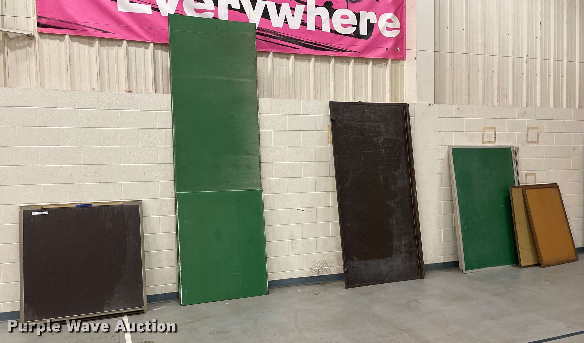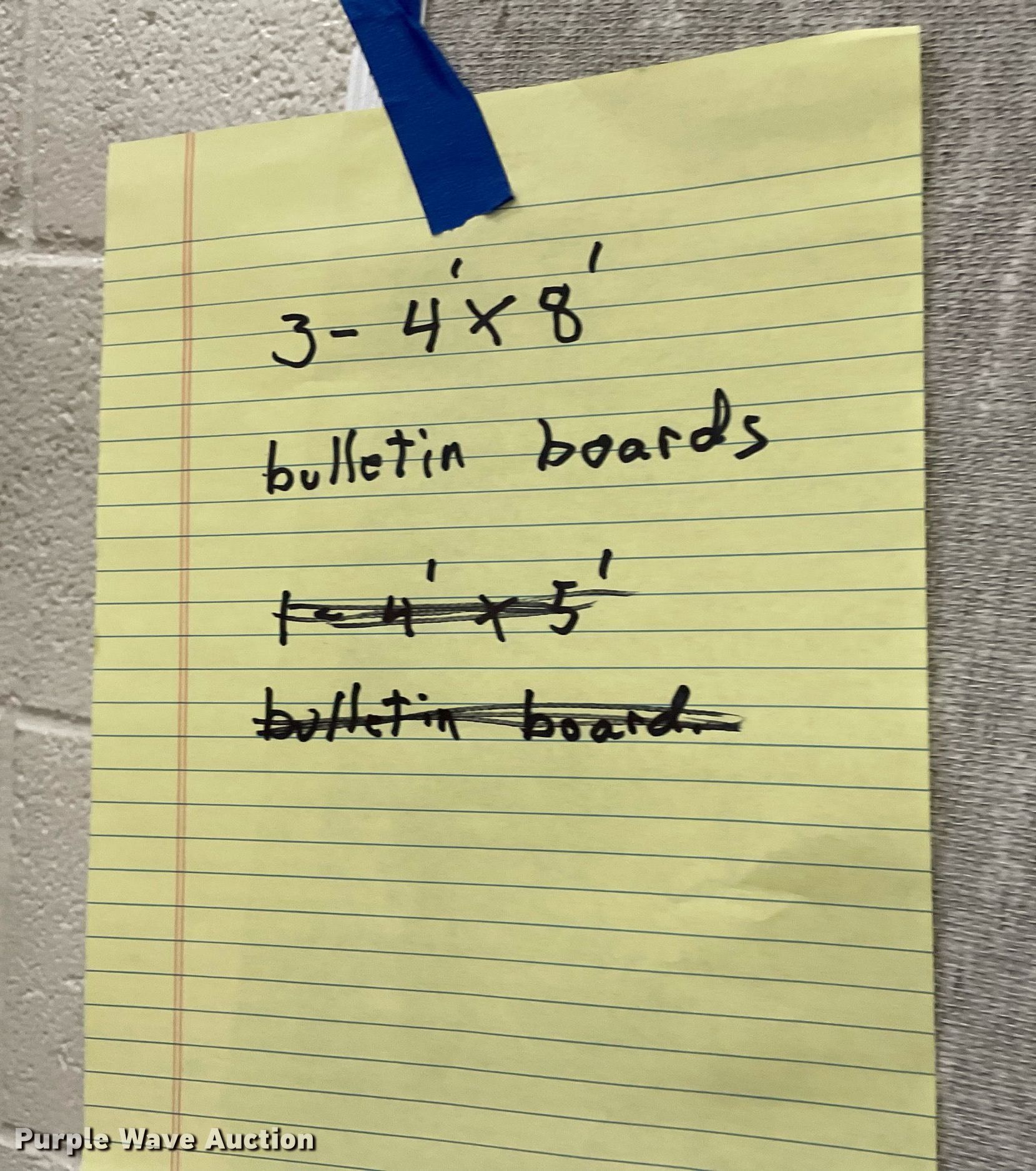 Purple Wave is selling a used Office Supplies and Equip. in Kansas. This item is a Office supplies with the following: (9) chalk boards, (11) bulletin boards, (3) overhead projectors, (2) projector screens