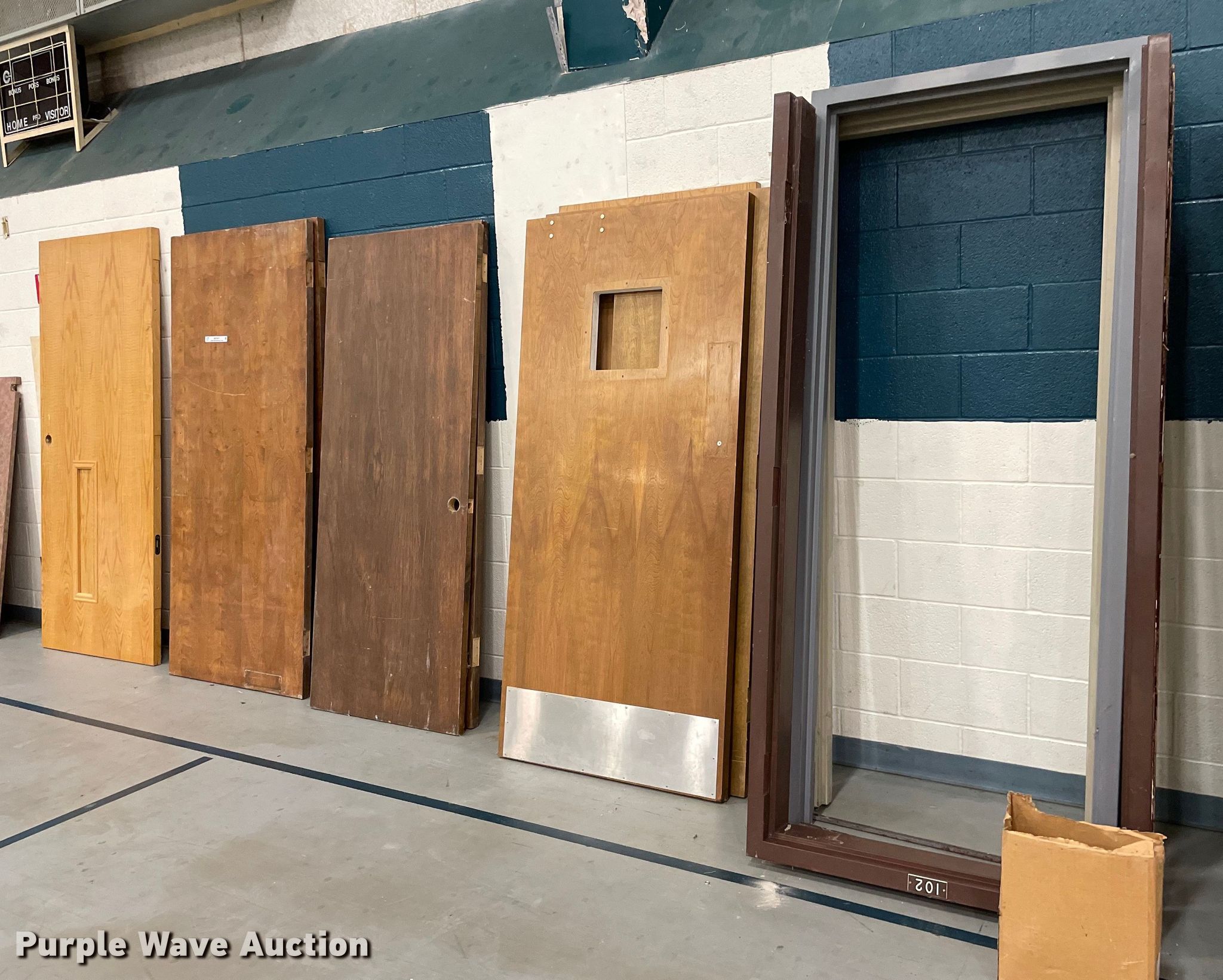 Purple Wave is selling a used Building Materials in Kansas. This item is a (8) doors with the following: (3) metal door frames included