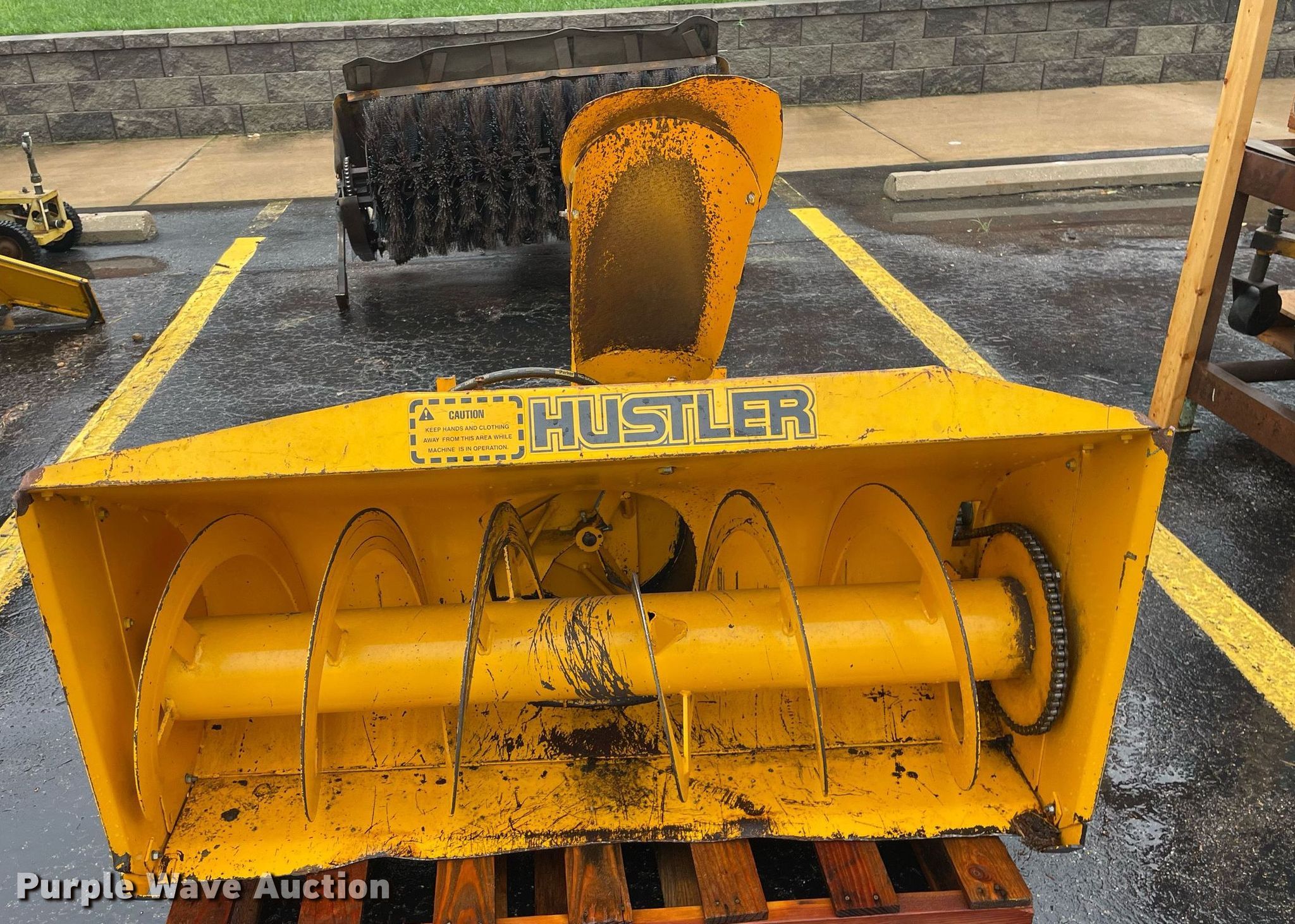 Purple Wave is selling a used Lawn and Garden in Kansas. This item is a Mower attachments with the following: 53" W Excel 920504 snow blower, 5'W Sweepster, Excel enclosed cab, Model 275,285, Serial: D453802, Nelson 400 Rain Train sprinkler