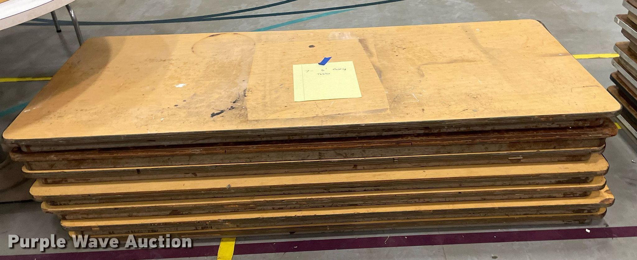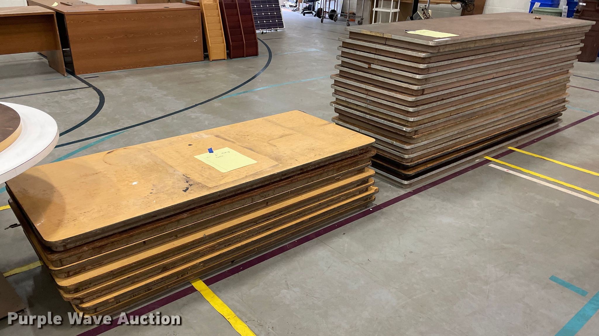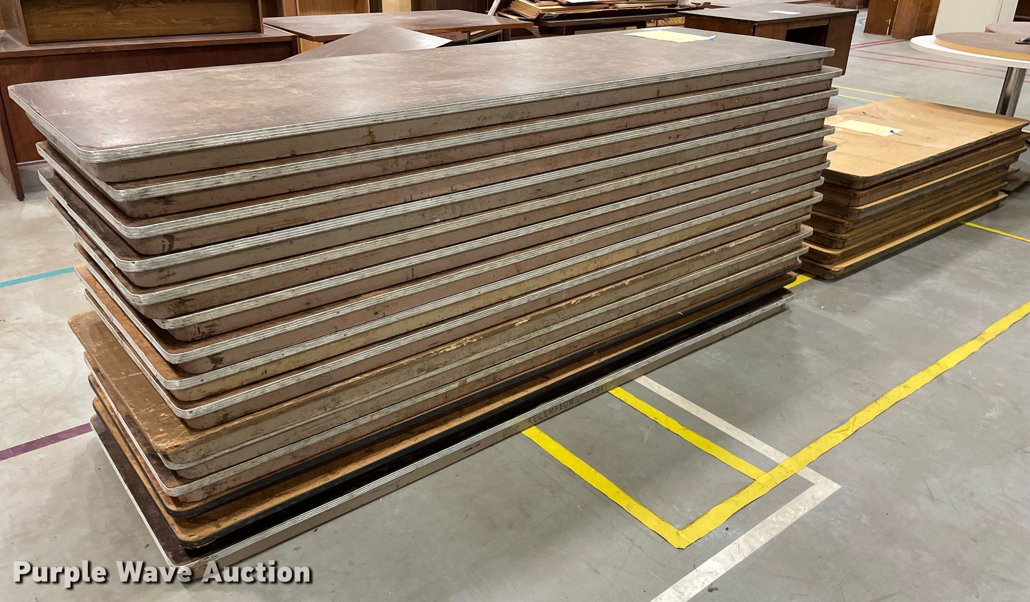 Purple Wave is selling a used Furniture in Kansas. This item is a (22) folding tables with the following: (15) 8'L, (7) 6'L