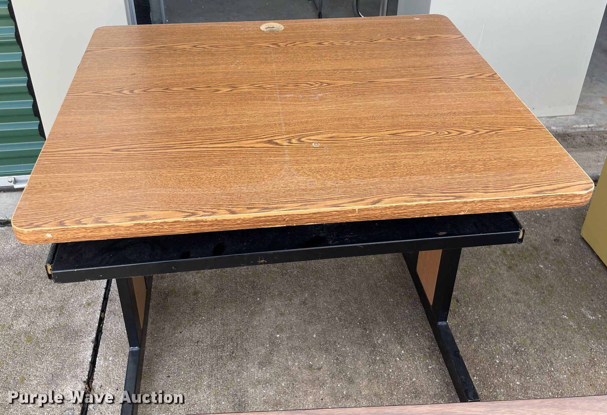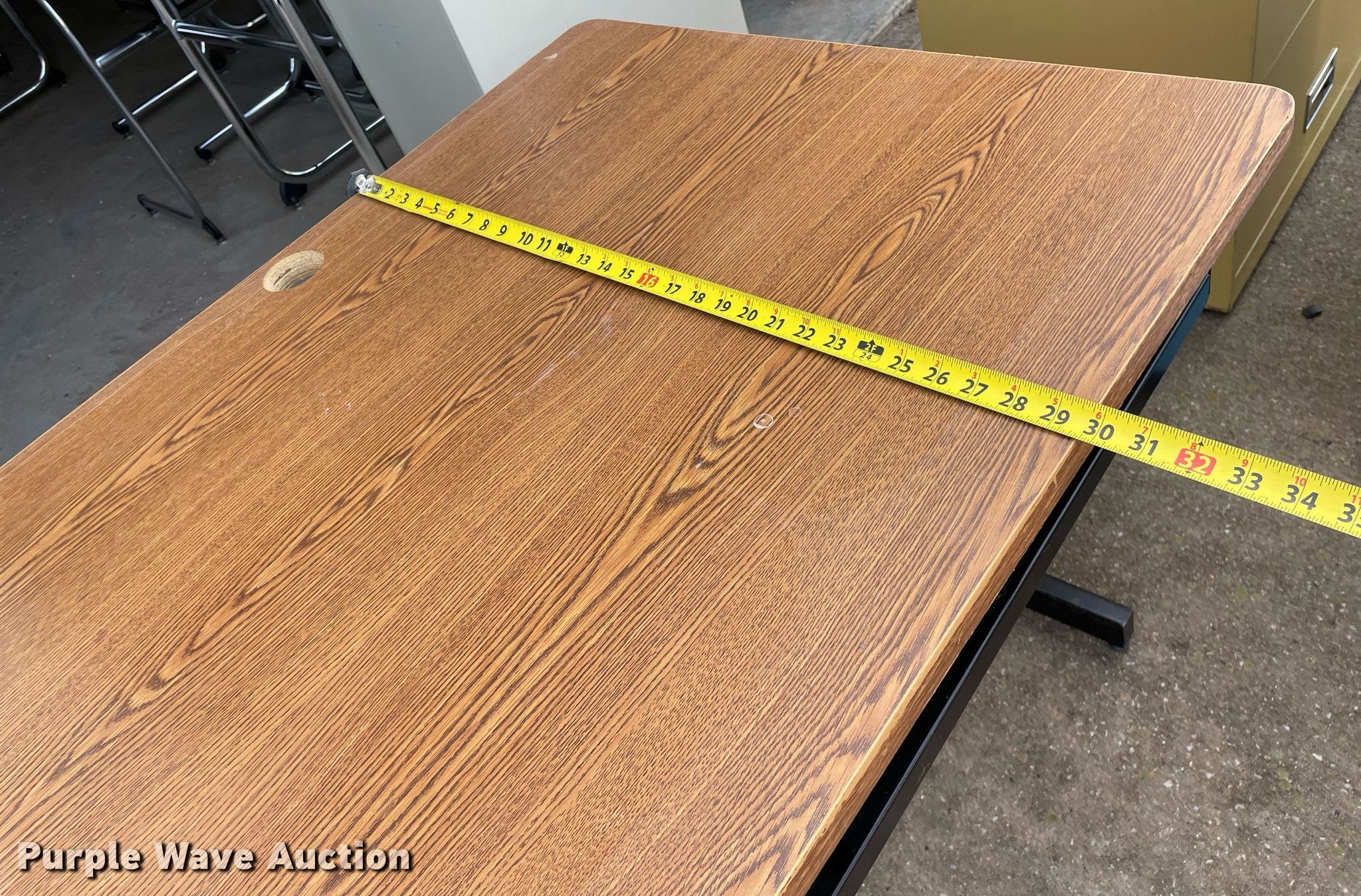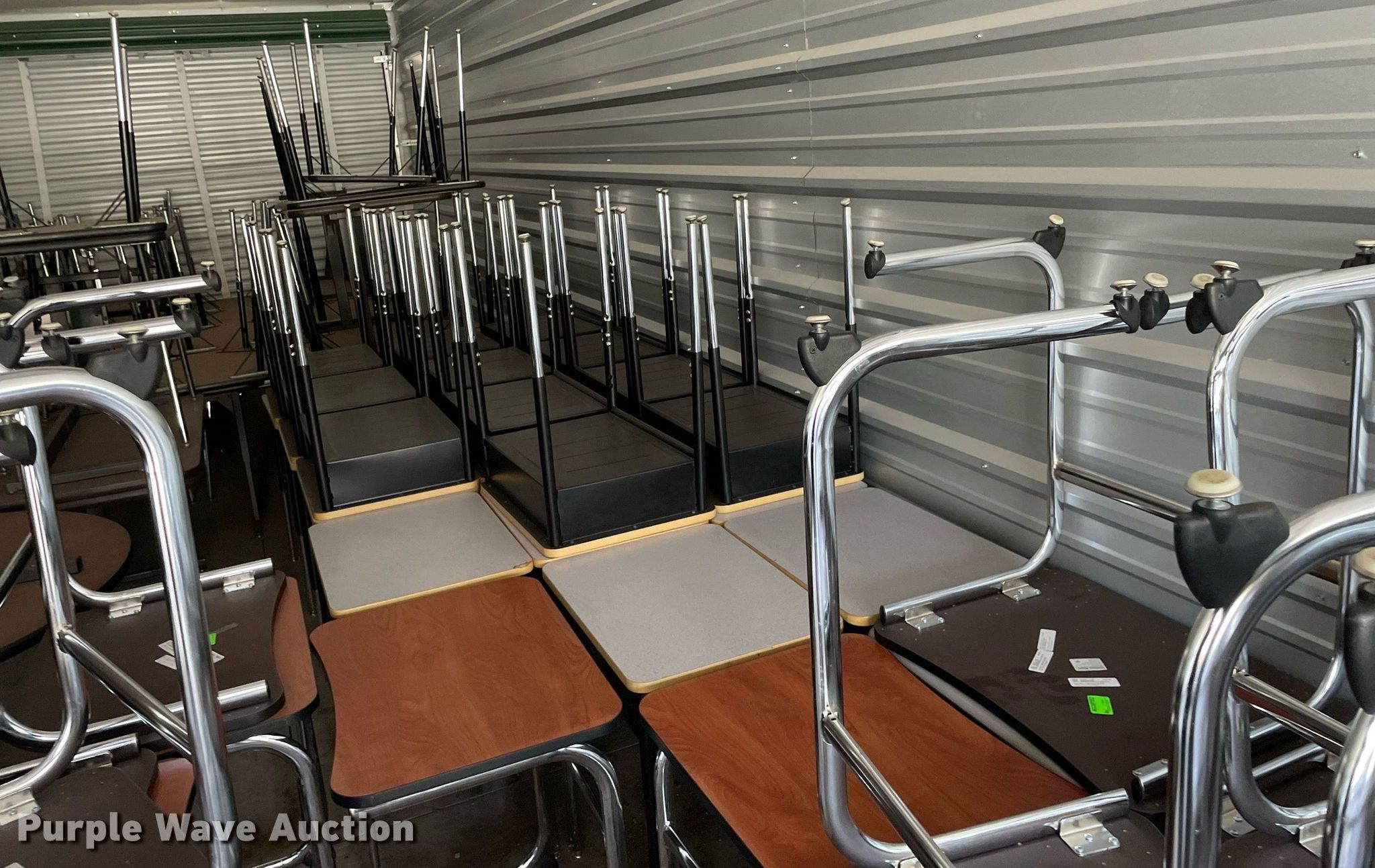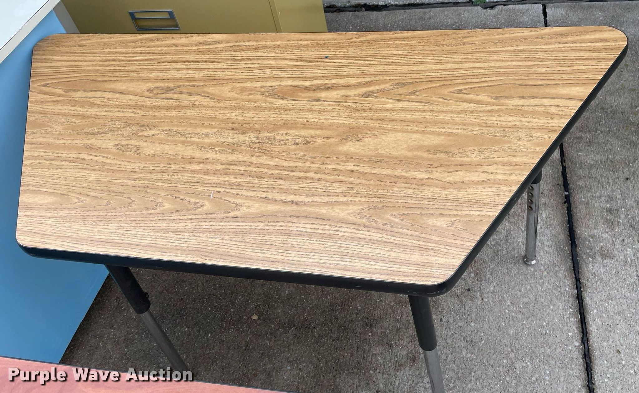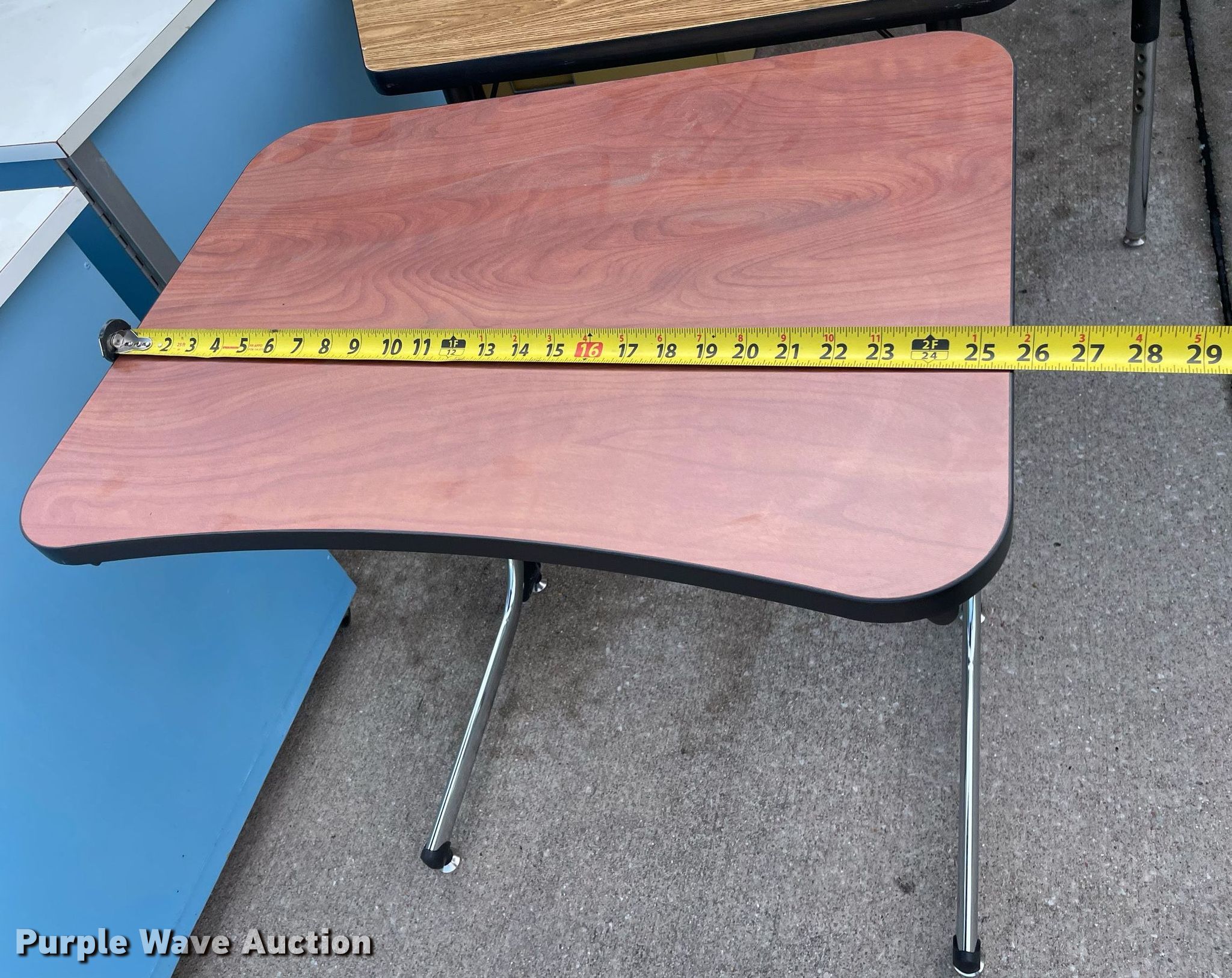 Purple Wave is selling a used Furniture in Kansas. This item is a Furniture with the following: Approx. 100 desks, Approx. 26 desks, 23.5" x 17.5", Approx. 40 desks, 25.5" x 18", Approx. 32 desks, 35.5" x 23.5", (2) 4' round tables, 5' L x 3' W table, (3) file cabinets, (2) sewing machine cabinets, (3) sewing machines, Unknown operating condition