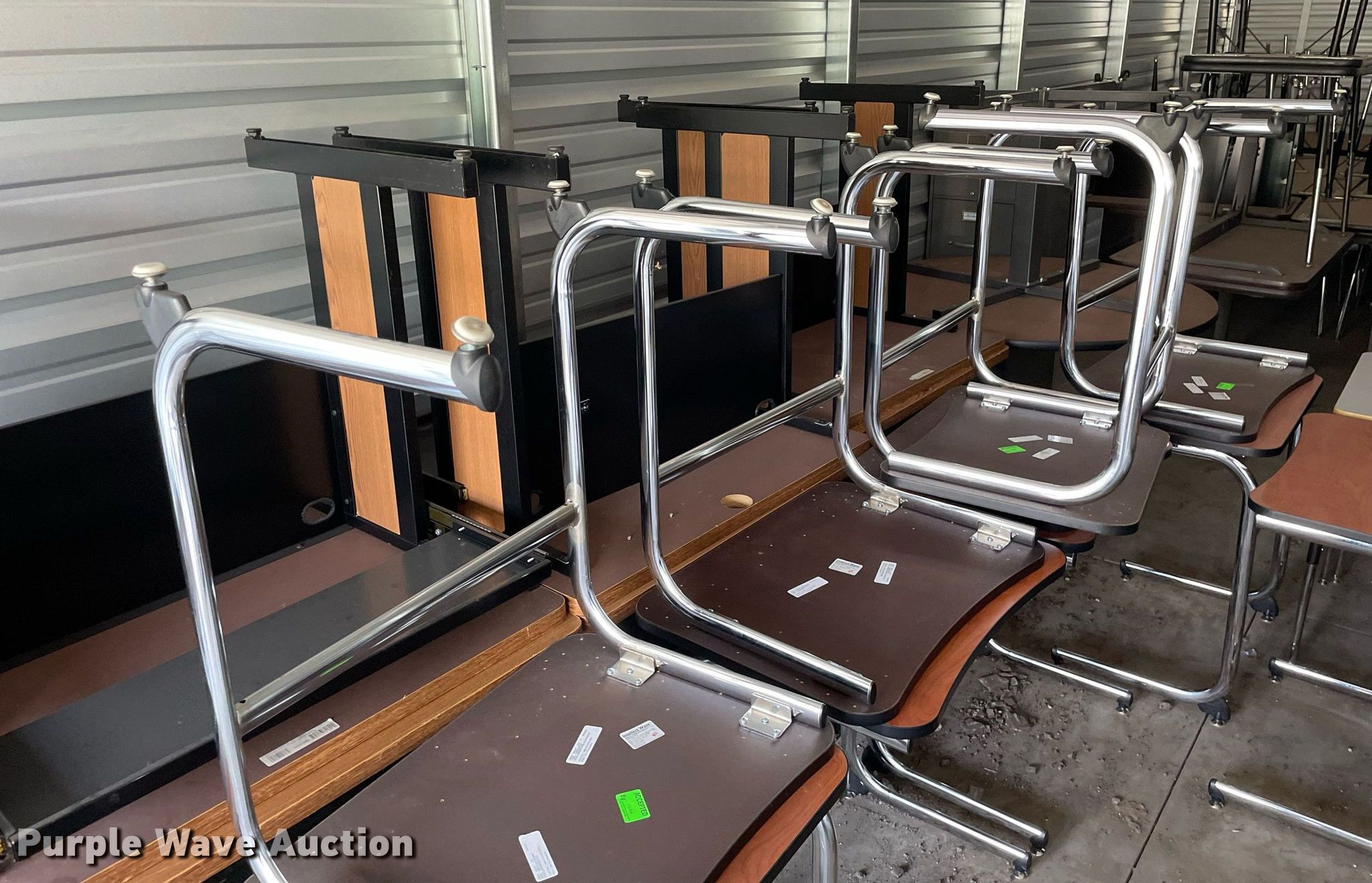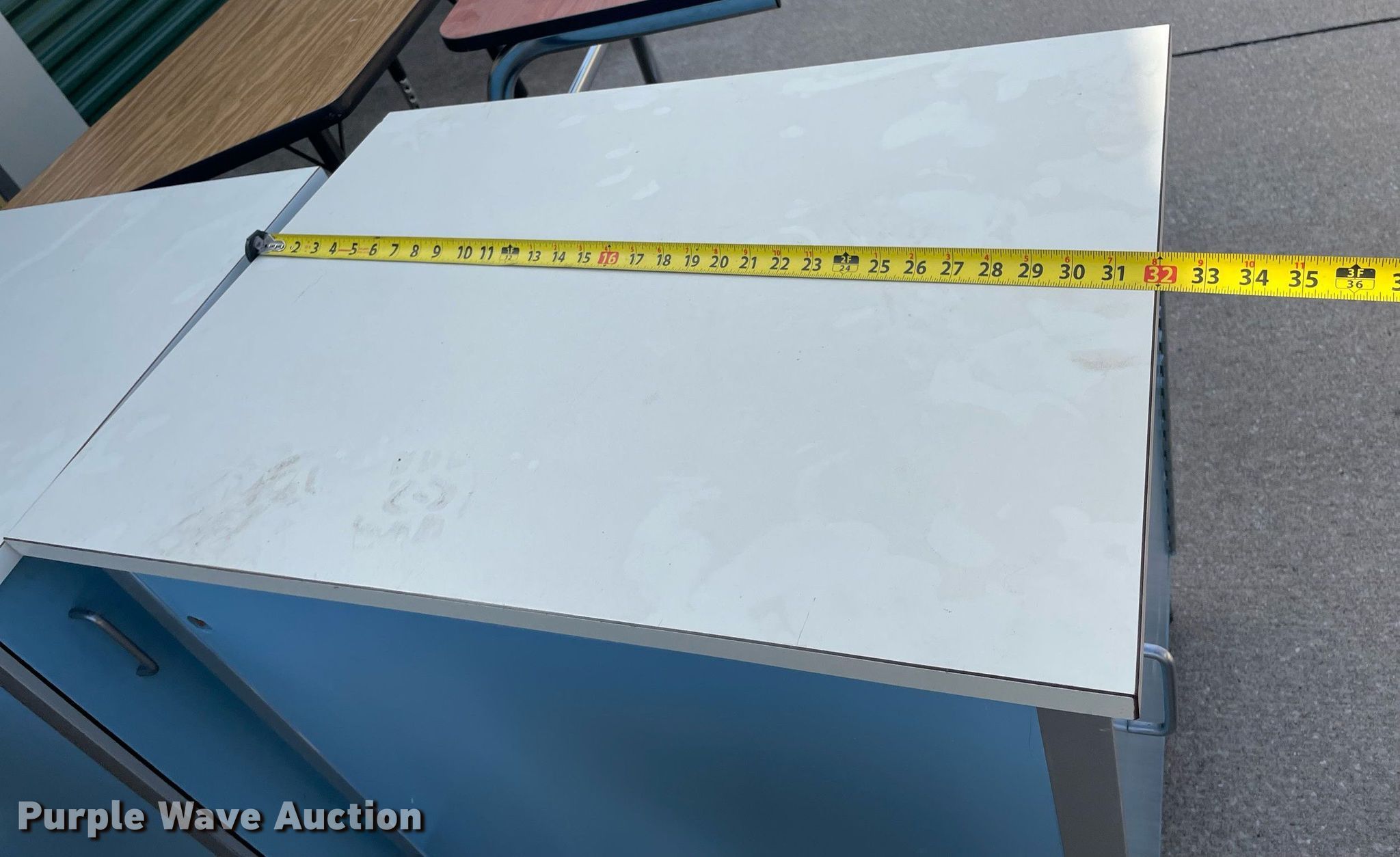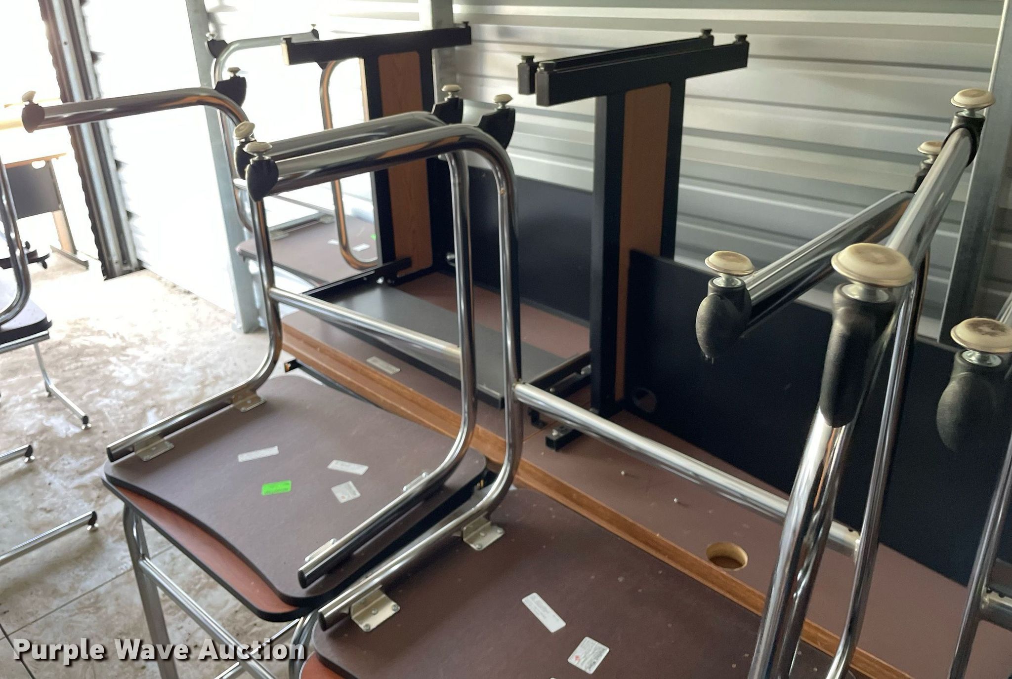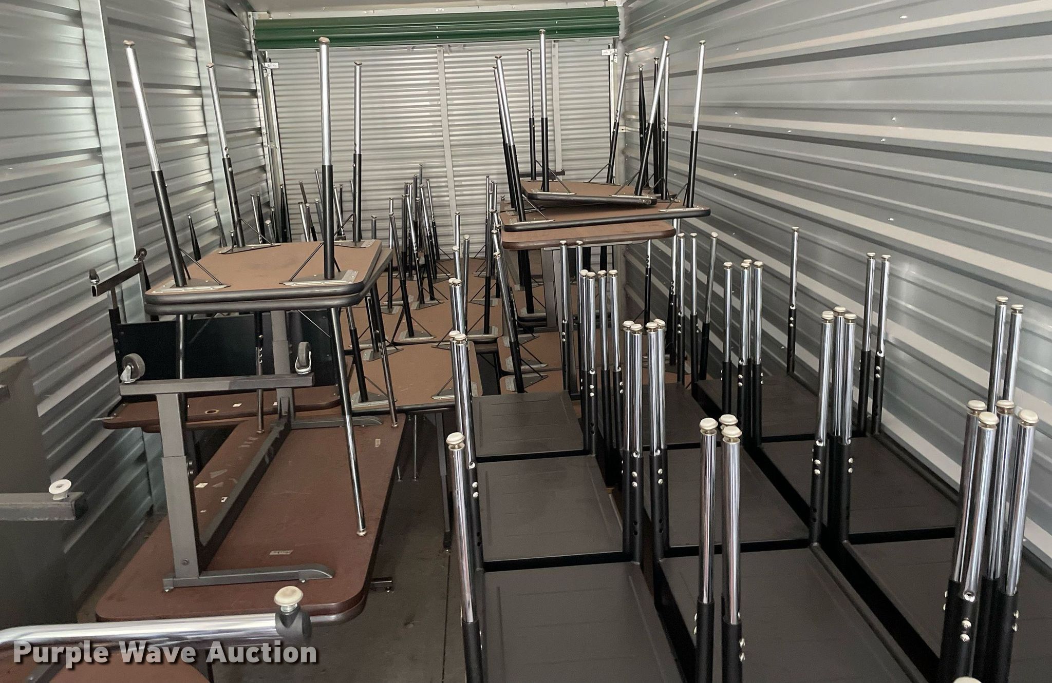 Purple Wave is selling a used Furniture in Kansas. This item is a Furniture with the following: Approx. 100 desks, Approx. 26 desks, 23.5" x 17.5", Approx. 40 desks, 25.5" x 18", Approx. 32 desks, 35.5" x 23.5", (2) 4' round tables, 5' L x 3' W table, (3) file cabinets, (2) sewing machine cabinets, (3) sewing machines, Unknown operating condition