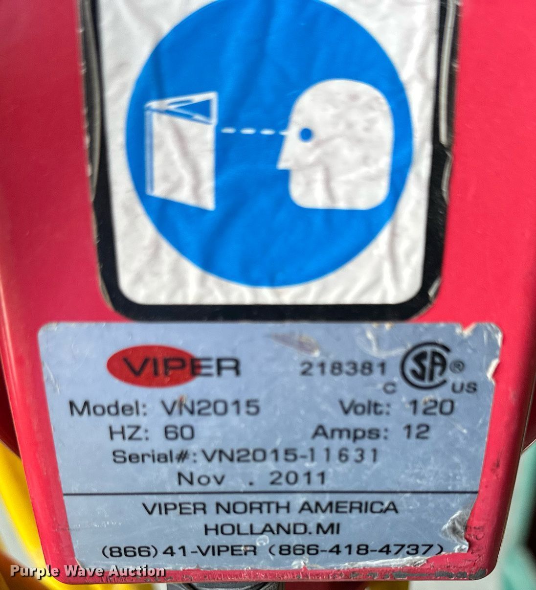 2011 Viper VN2015 floor buffer. Serial: VN2015-11631. Electric Motor Volts: 120, Amps: 12, Hz: 60. Notes Unknown operating condition. USD 489 Hays. 323 West 12th Street. Hays, KS 67601