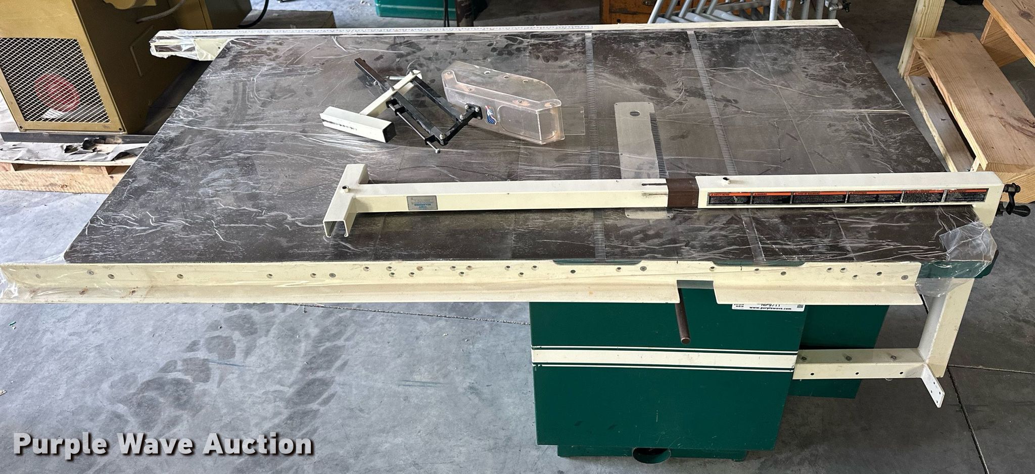 Purple Wave is selling a used Tools in Kansas. This item is a Powermatic 68 table saw with the following: Serial: 768161, Dimensions: 78"L x 44"W x 35"H