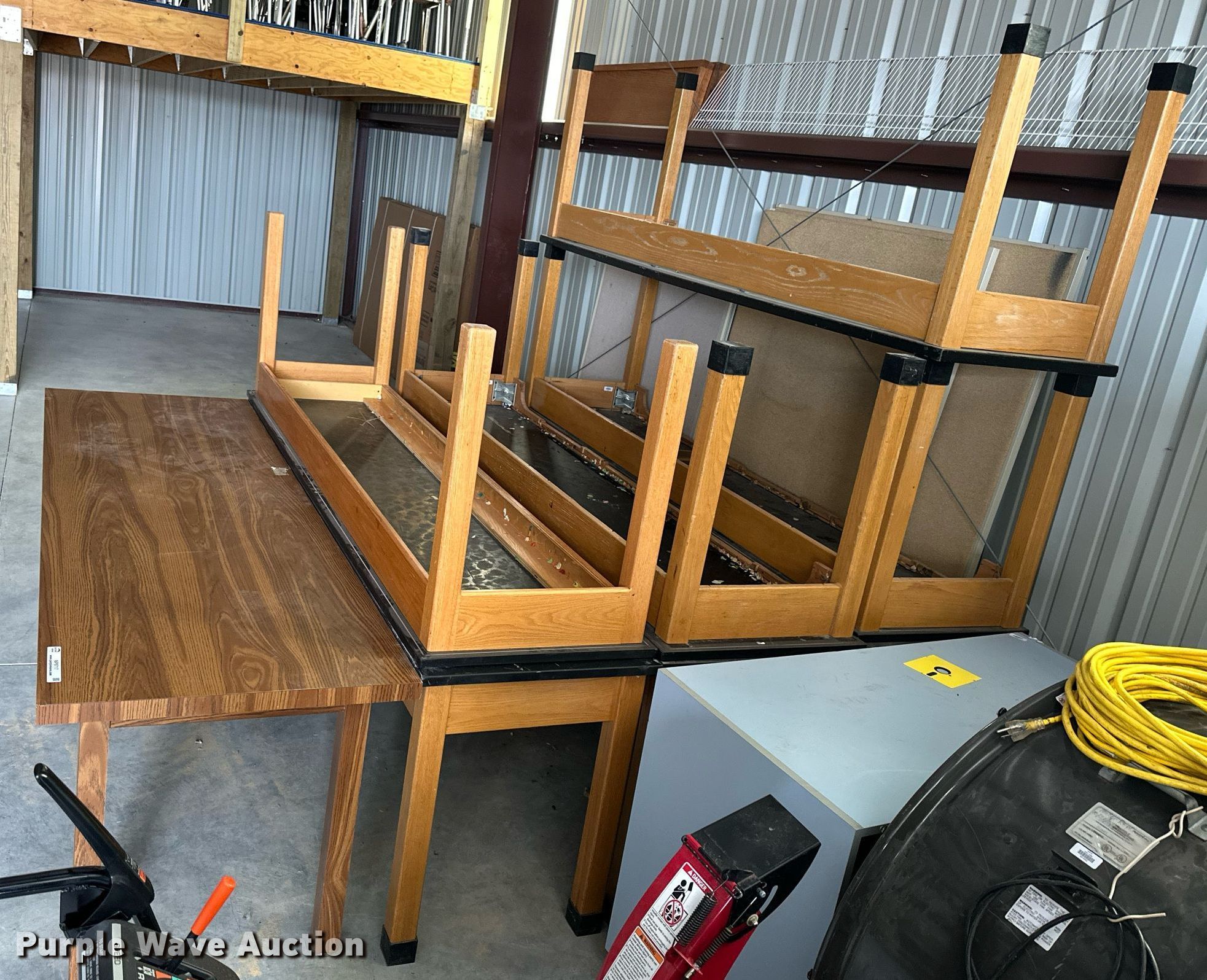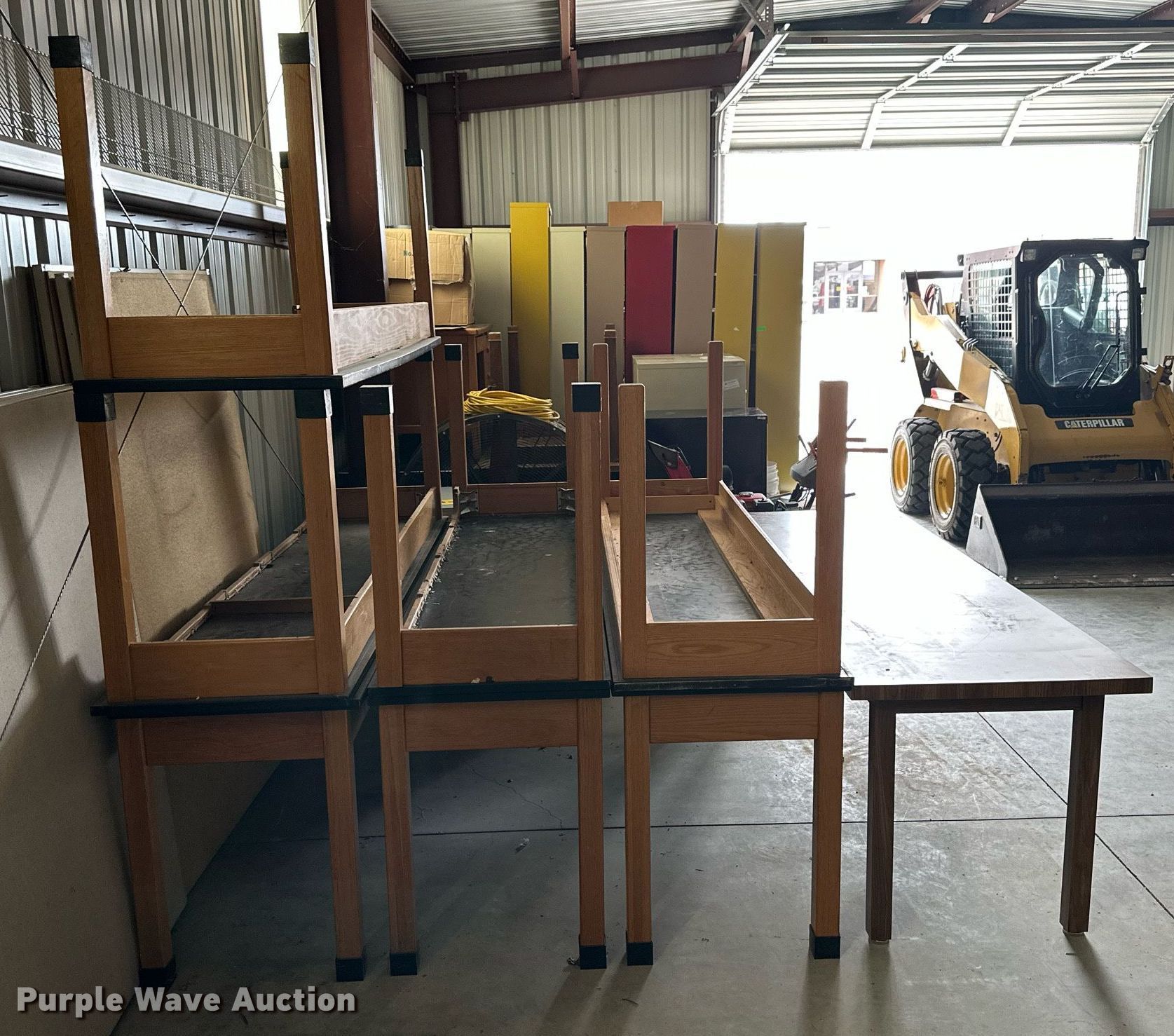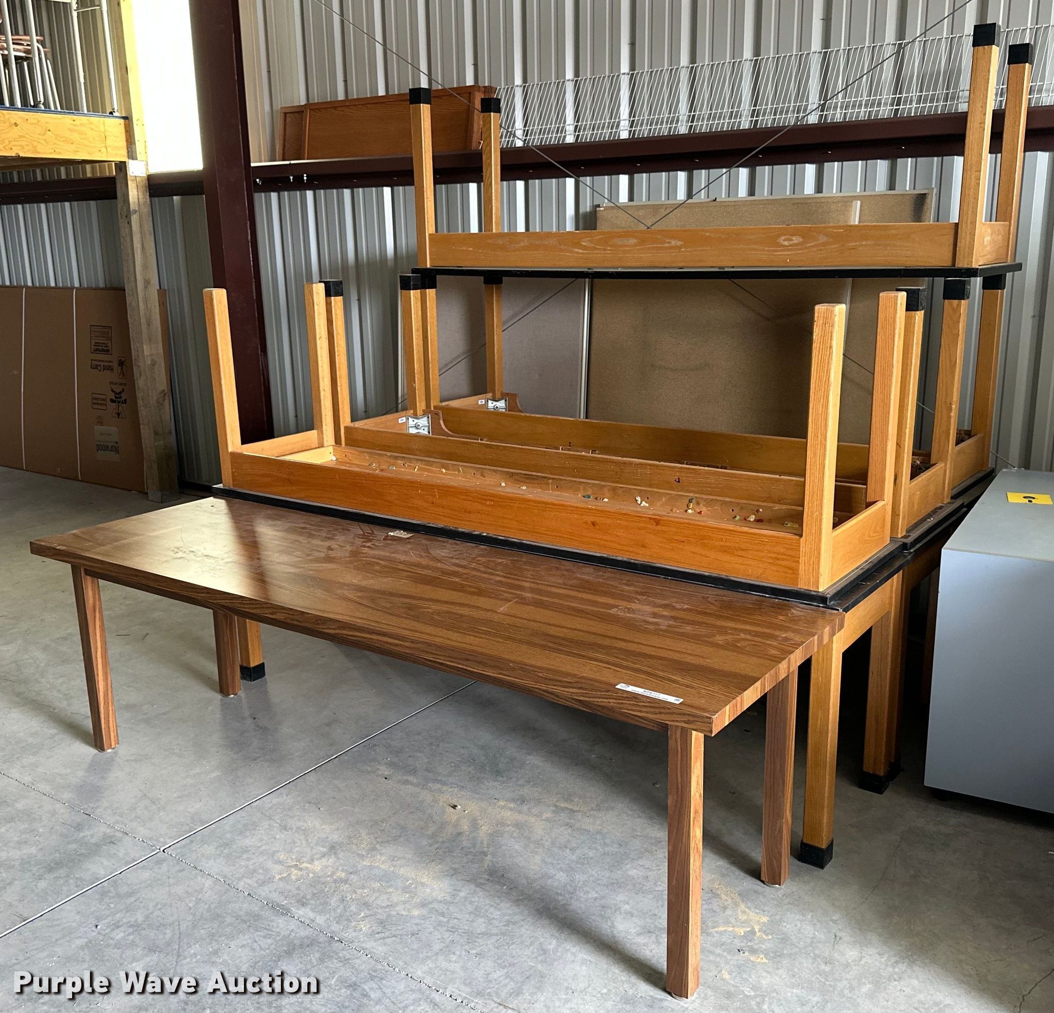 Purple Wave is selling a used Furniture in Kansas. This item is a (8) tables with the following: 96" x 29" x 29", (7) 96"L x 24"W x 29" H