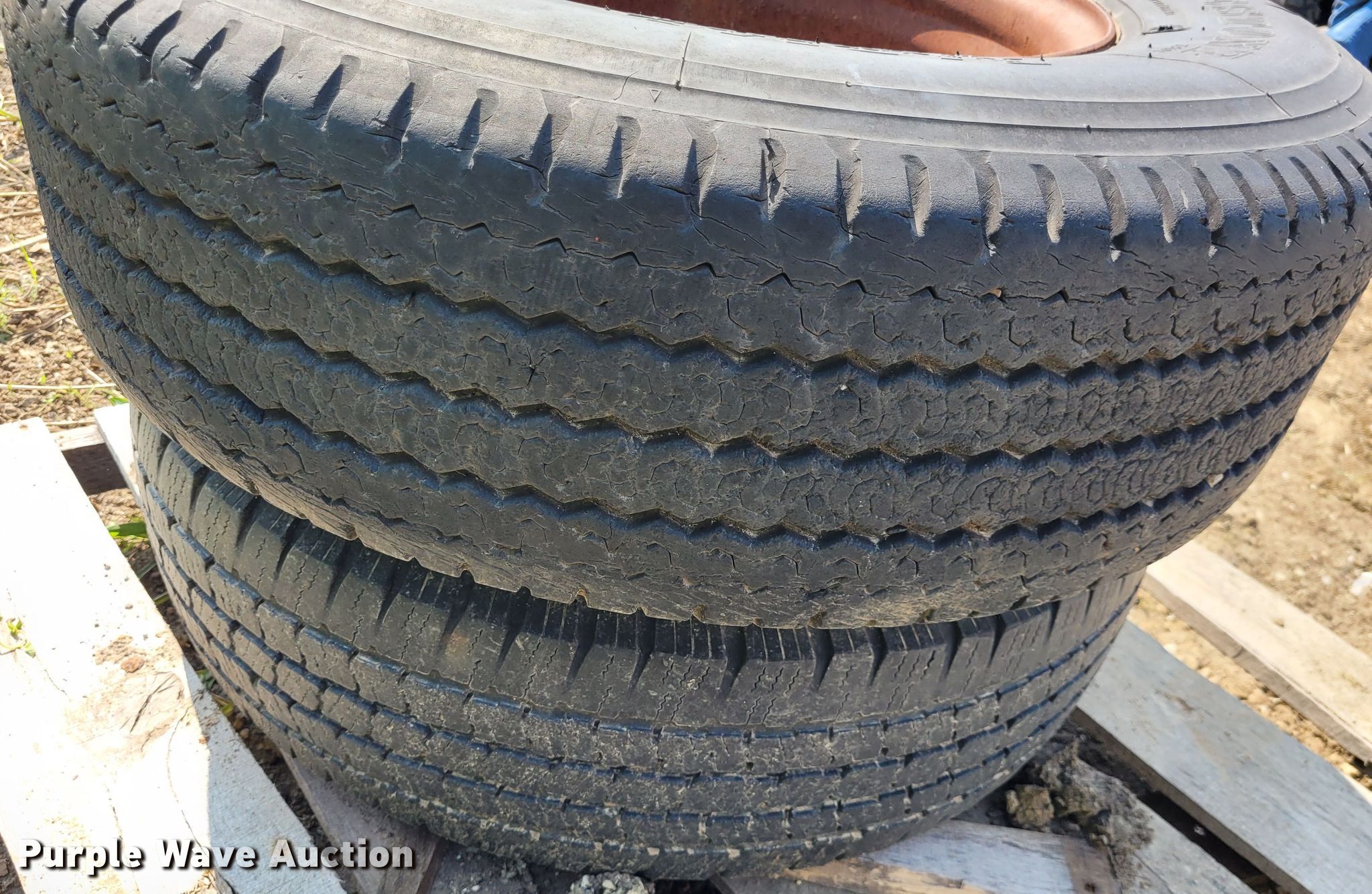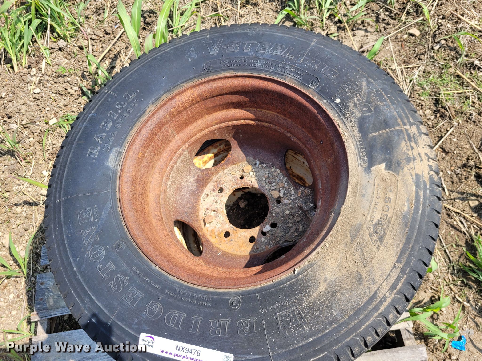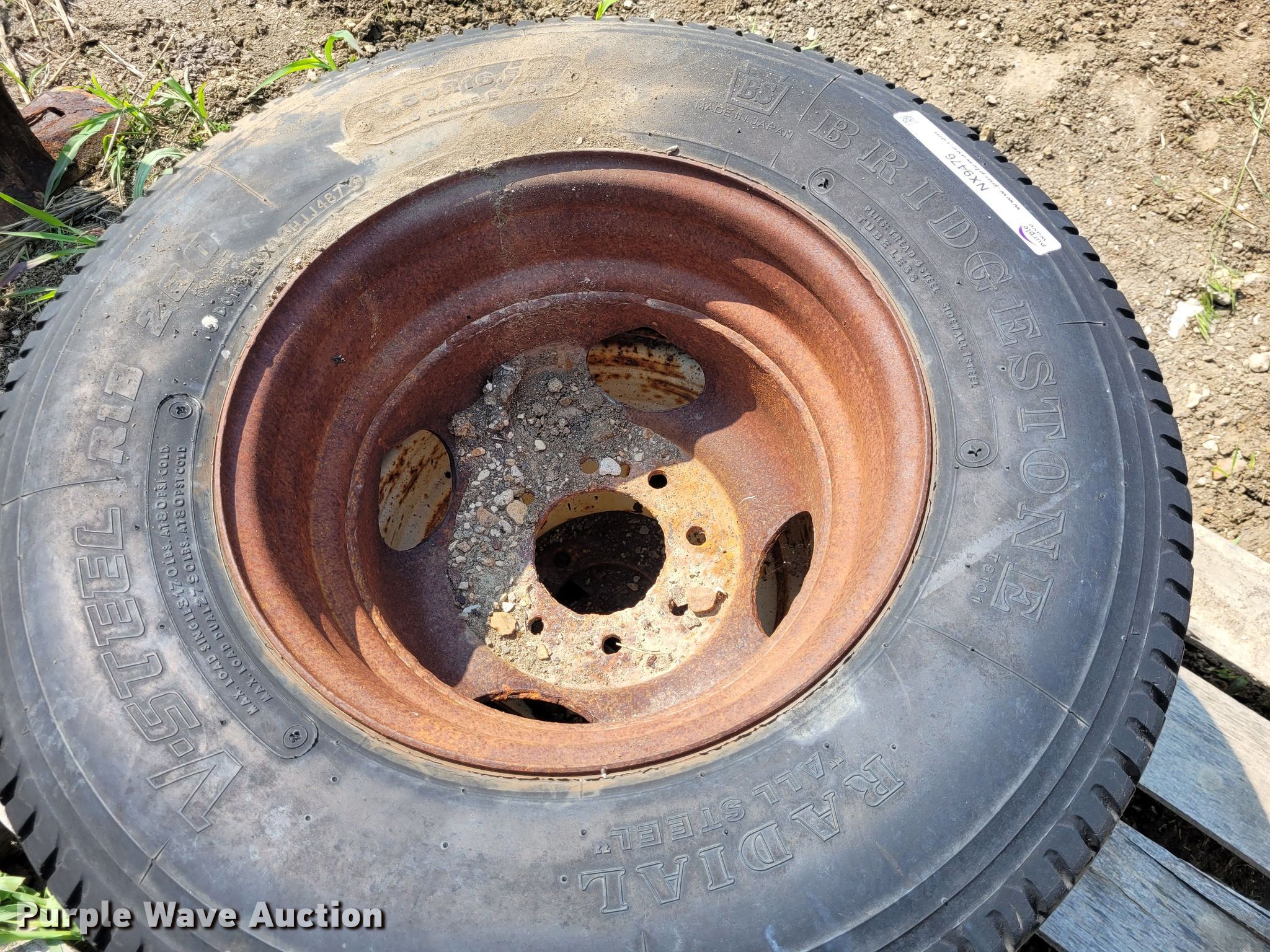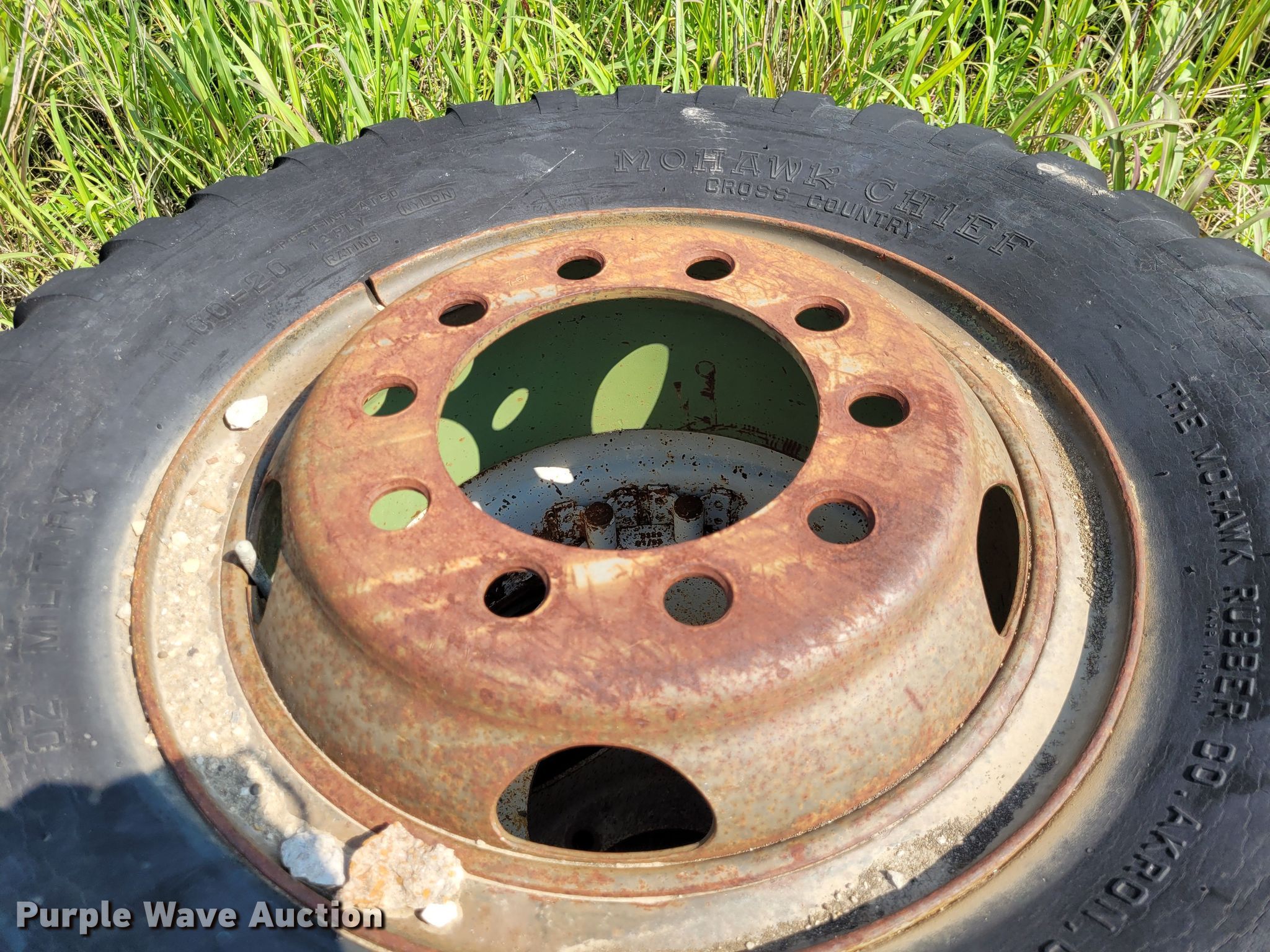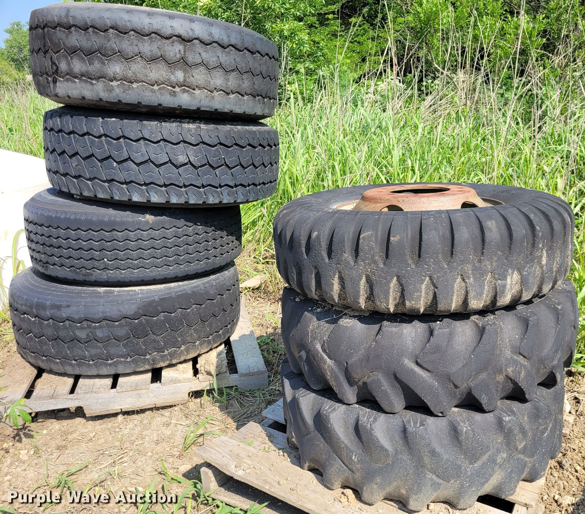 (9) tires and wheels. (2) 9.50R16.5, (3) 11.00-20, (4) 425/65R22.5. Emporia, KS 66801