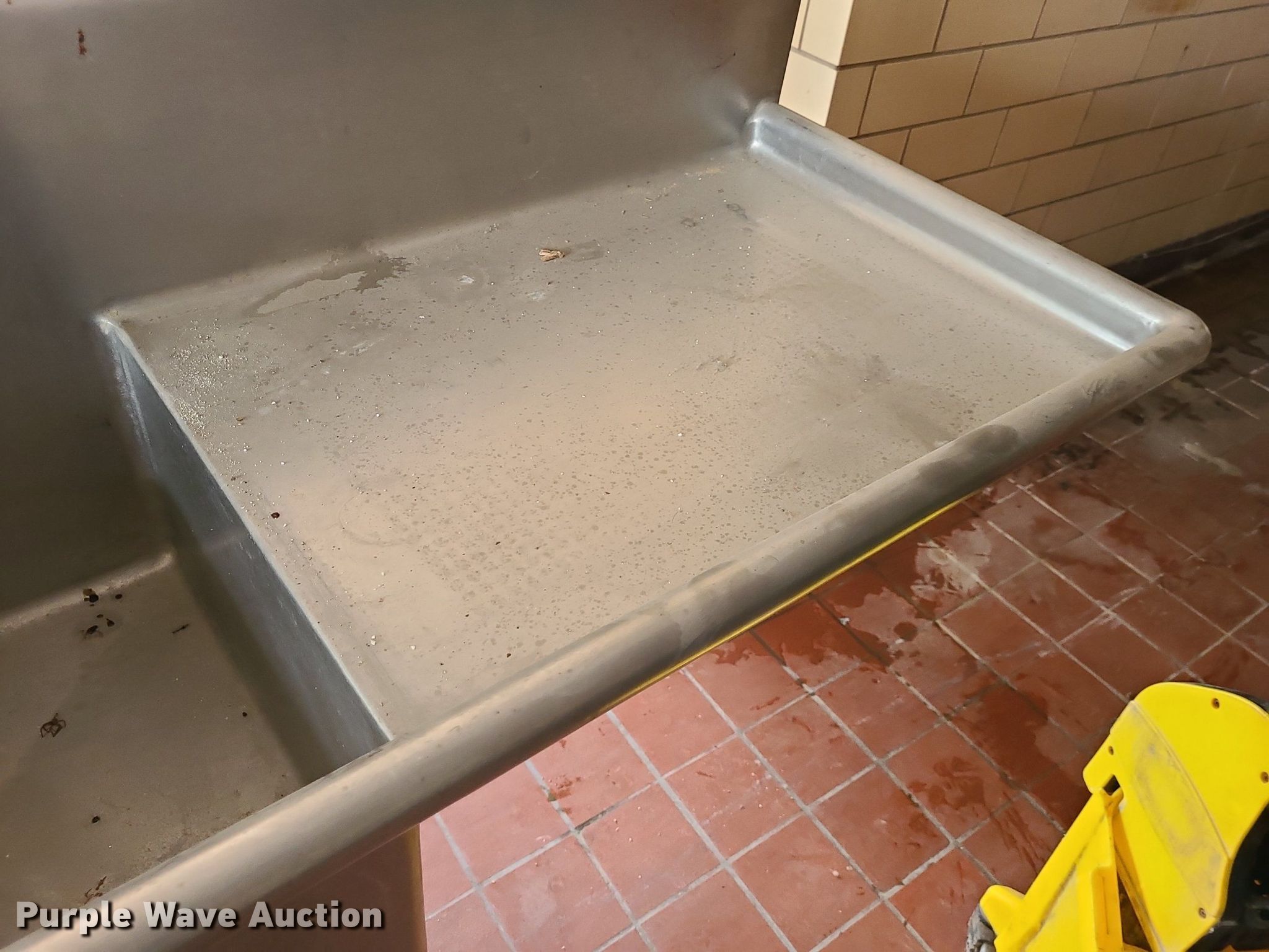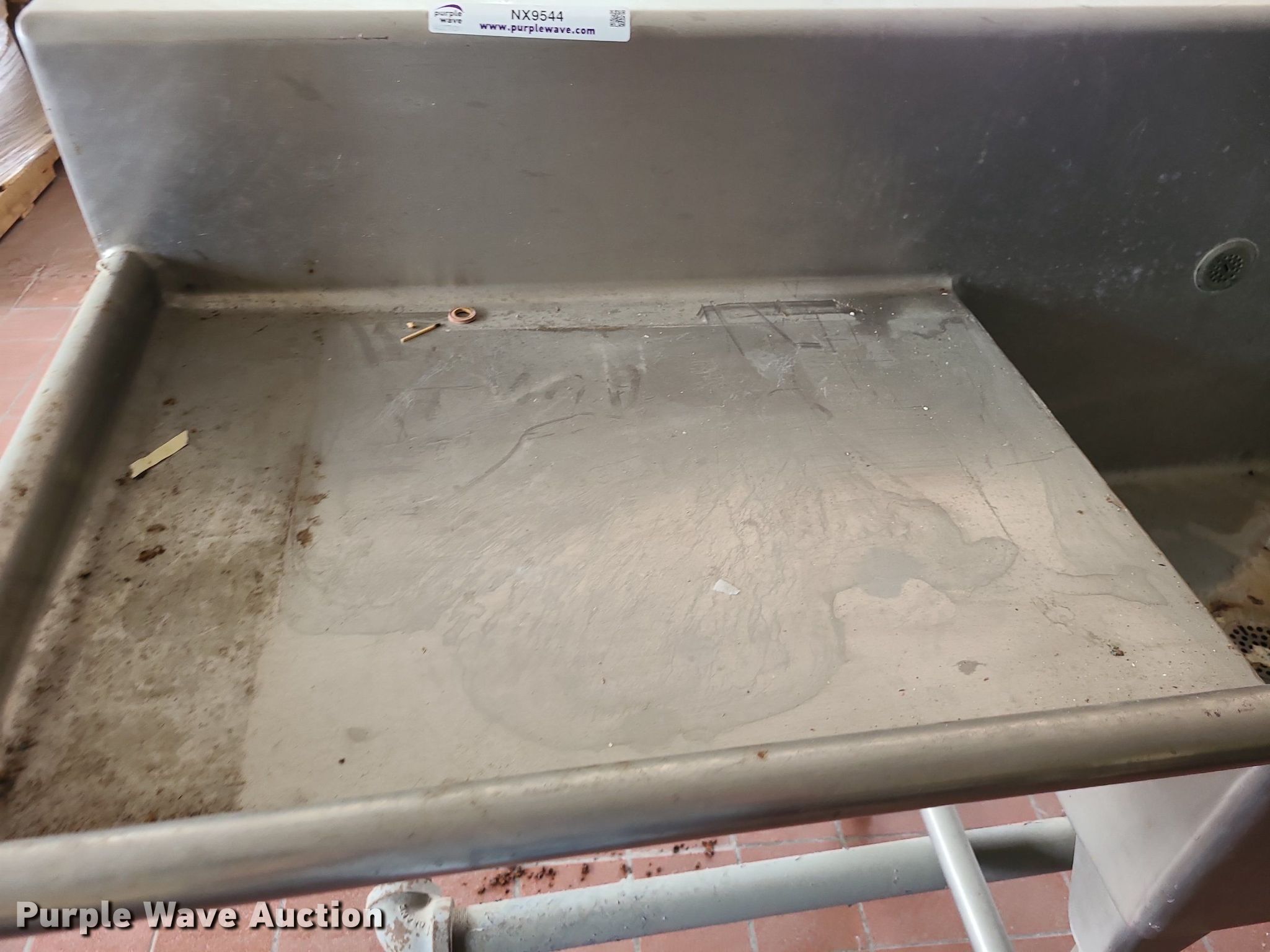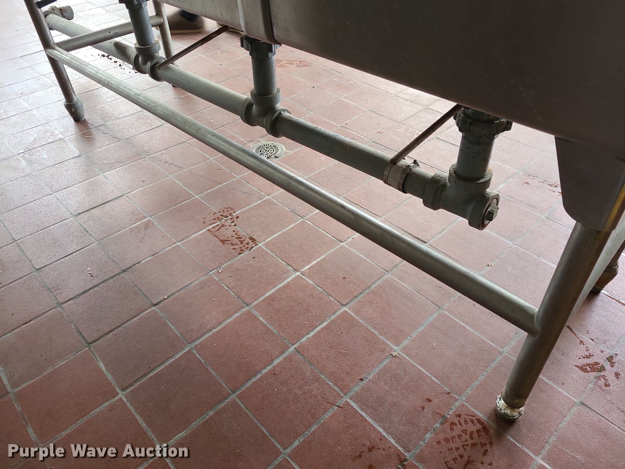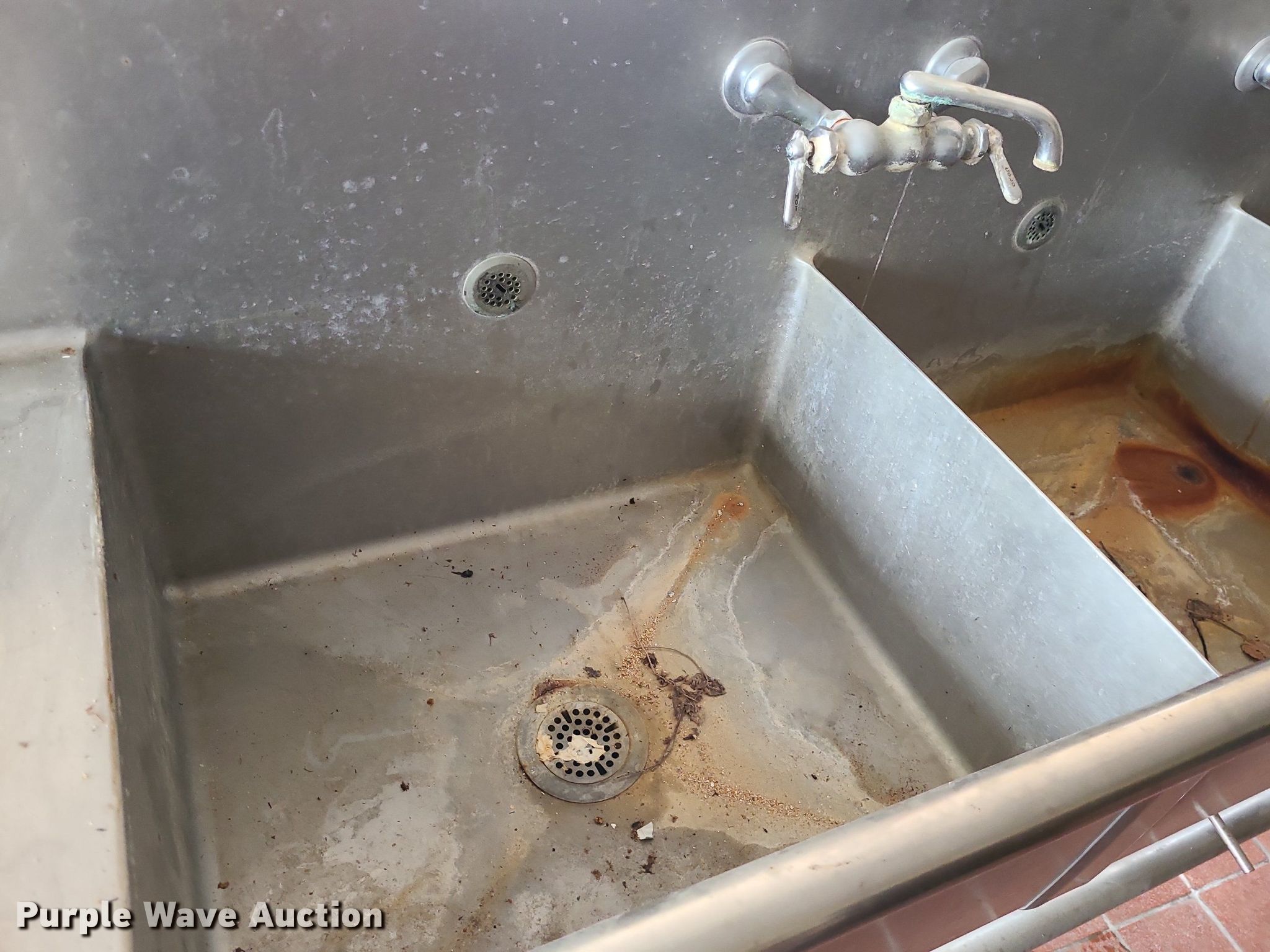 Purple Wave is selling a used Restaurant Equip. in Kansas. This item is a Zahner three basin stainless steel sink with the following: 11' x 2' x 44"