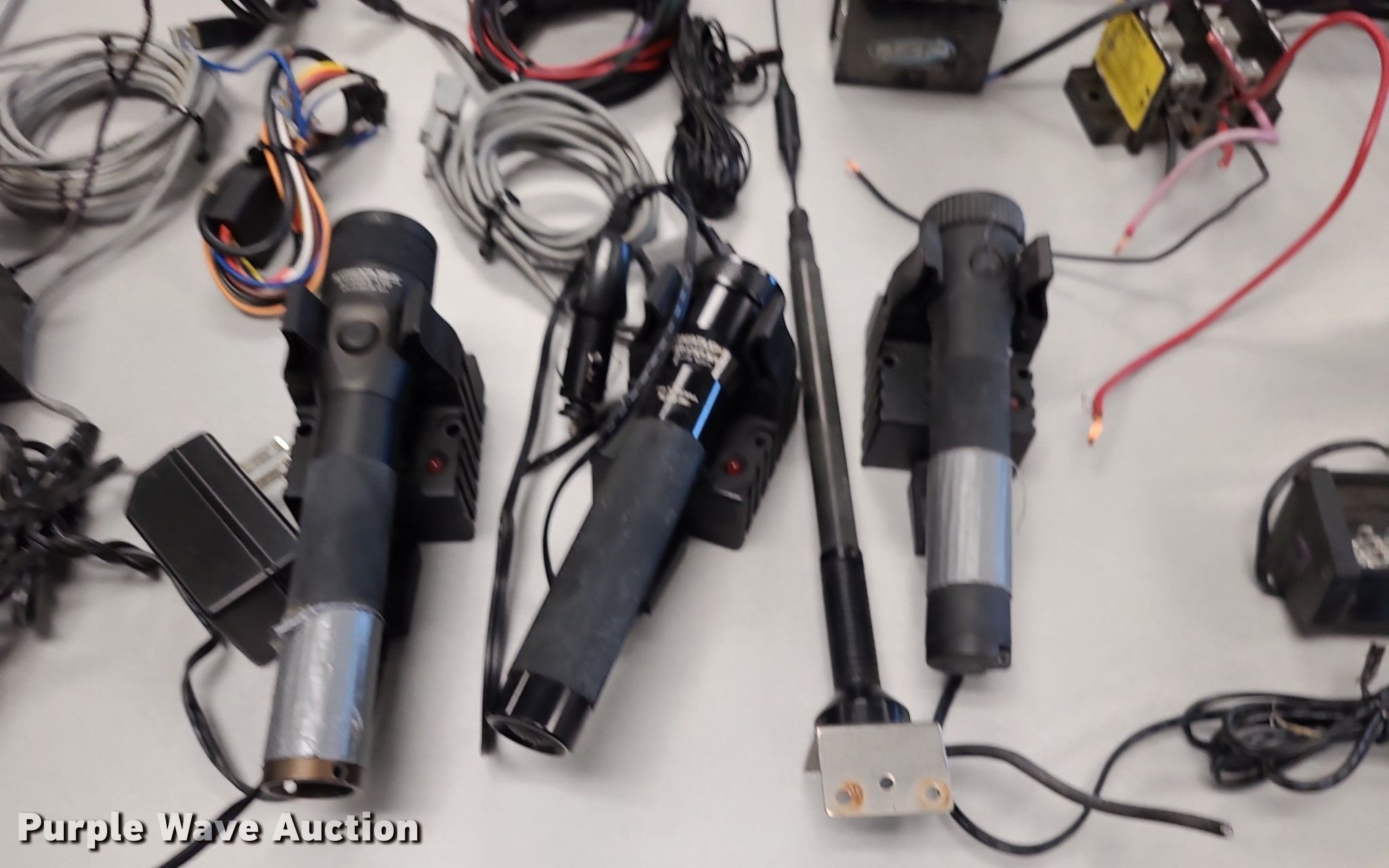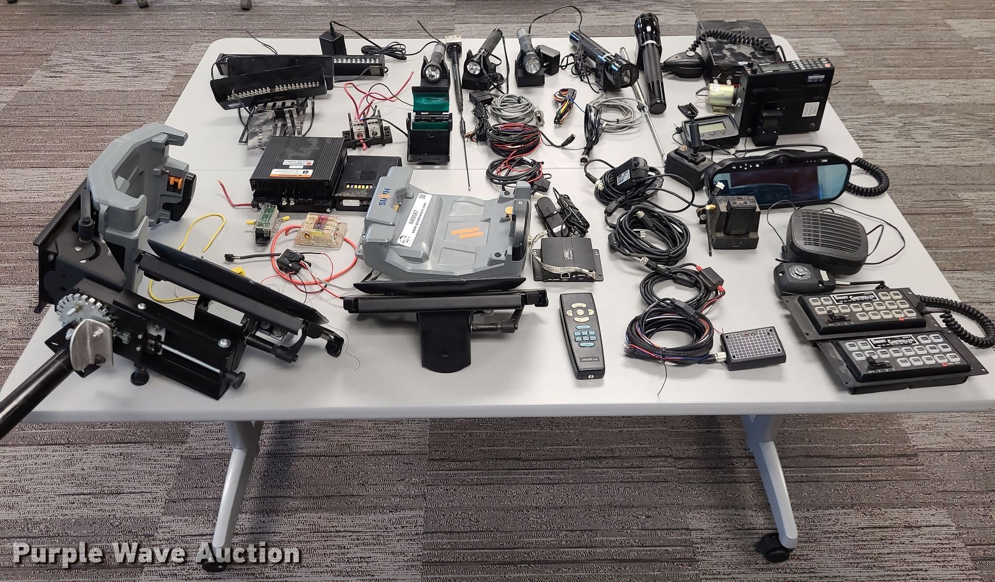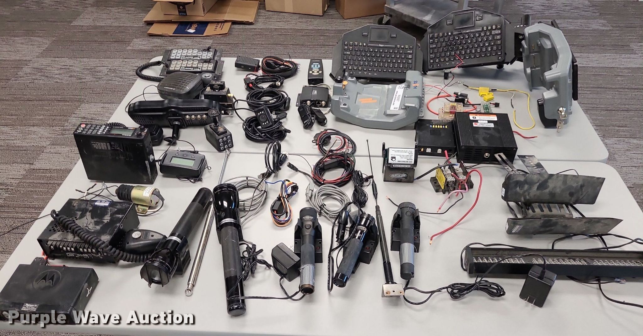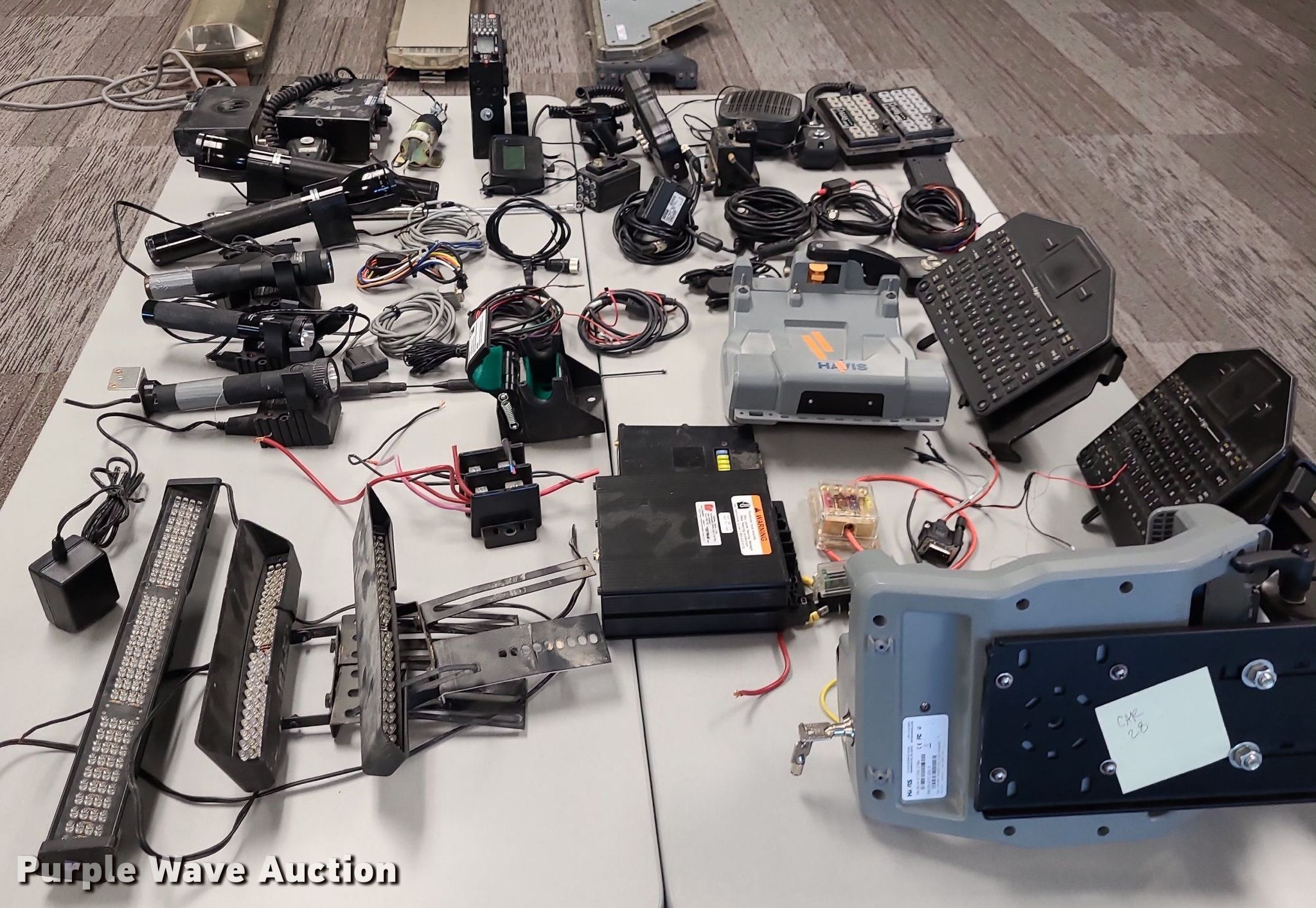 Purple Wave is selling a used Automotive Parts or Acces. in Kansas. This item is a Law enforcement equipment with the following: IKey keyboards, One with stand, Havis docking station, Smart controller, Camera mirror, Speaker, LED lights, Uniden trunk tracker, Flashlight and more