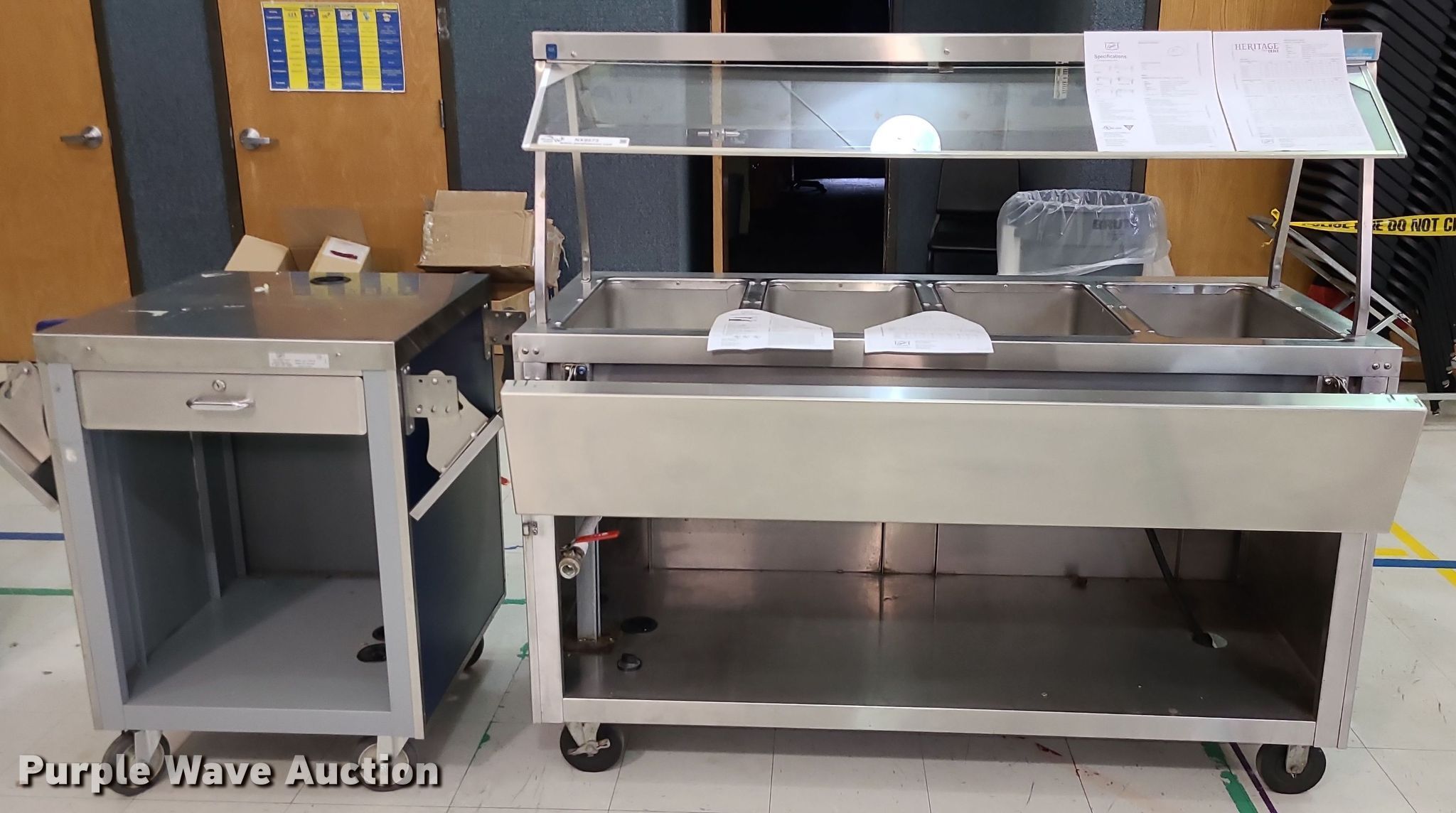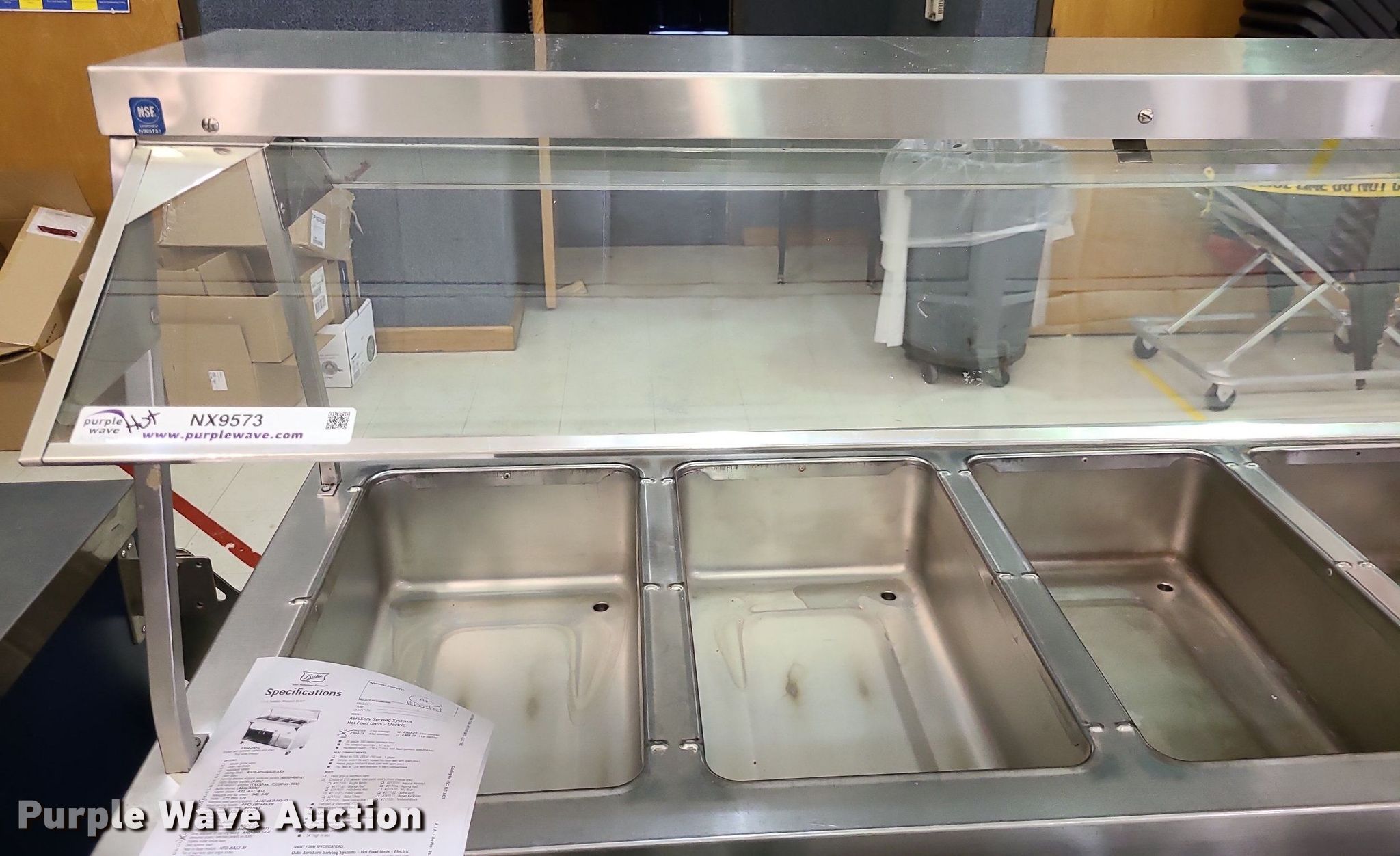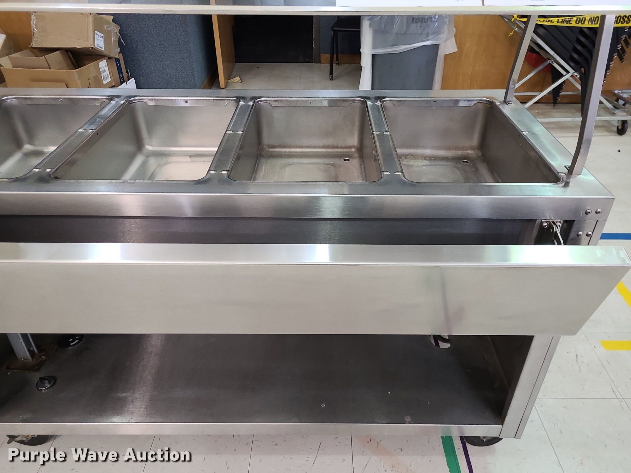 Purple Wave is selling a used Restaurant Equip. in Kansas. This item is a Restaurant equipment with the following: Duke four well serving station, 5' L, Duke cashier station