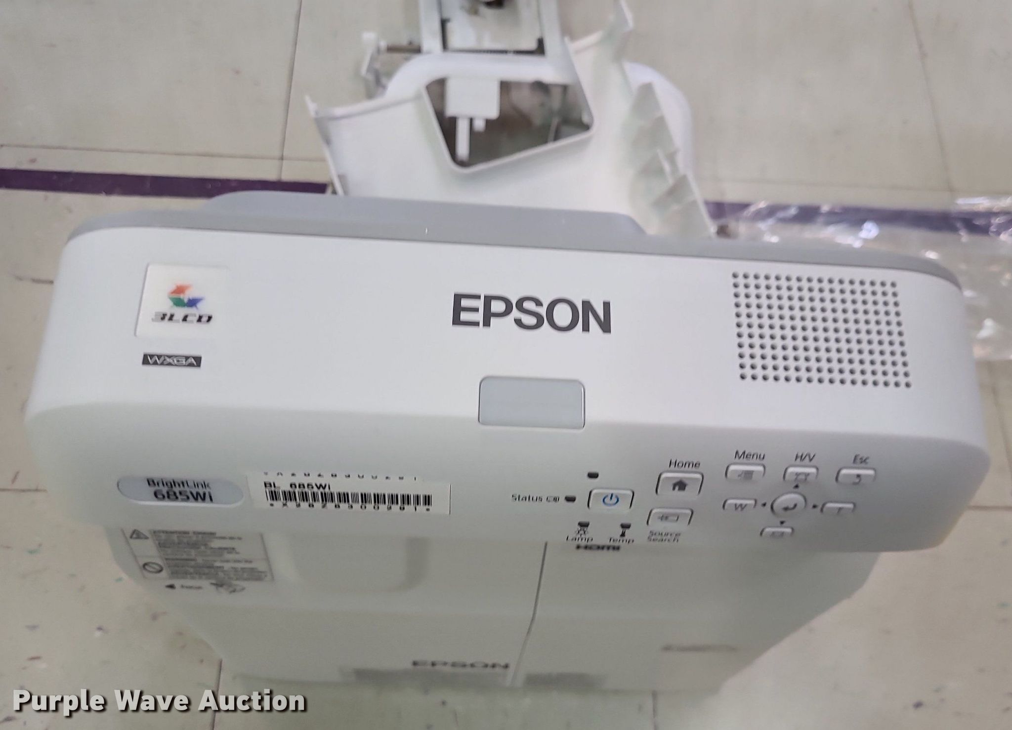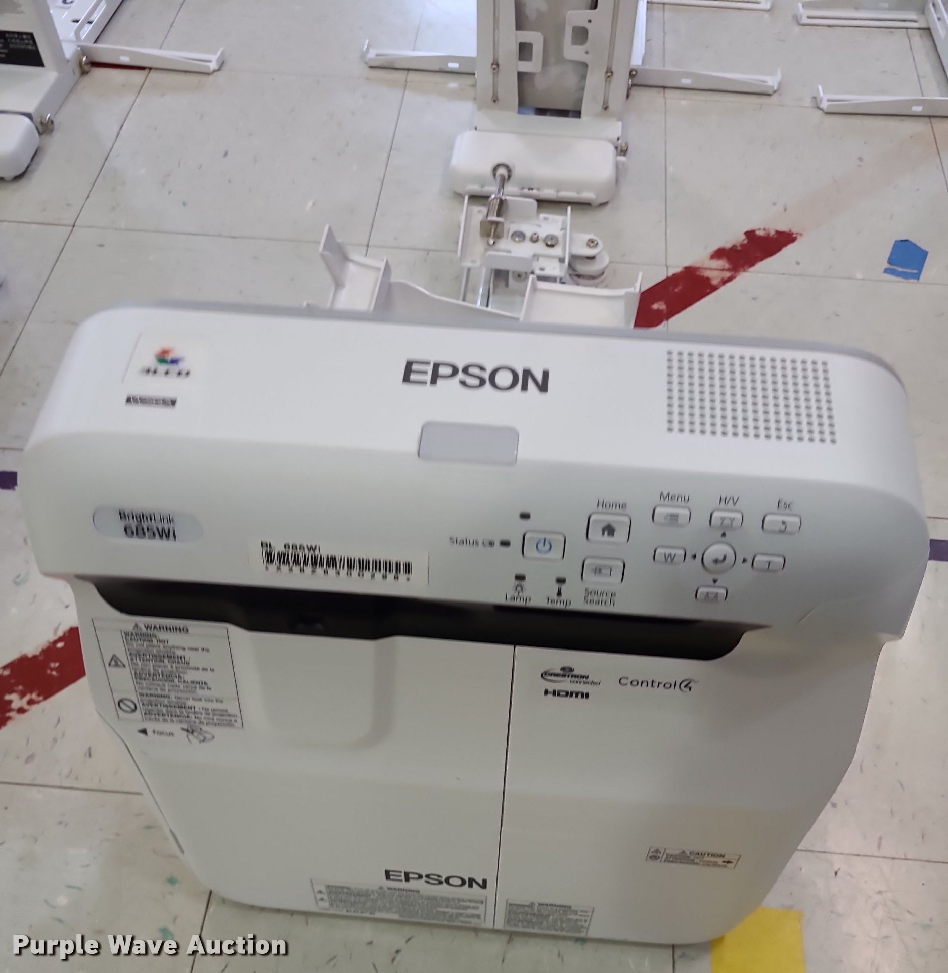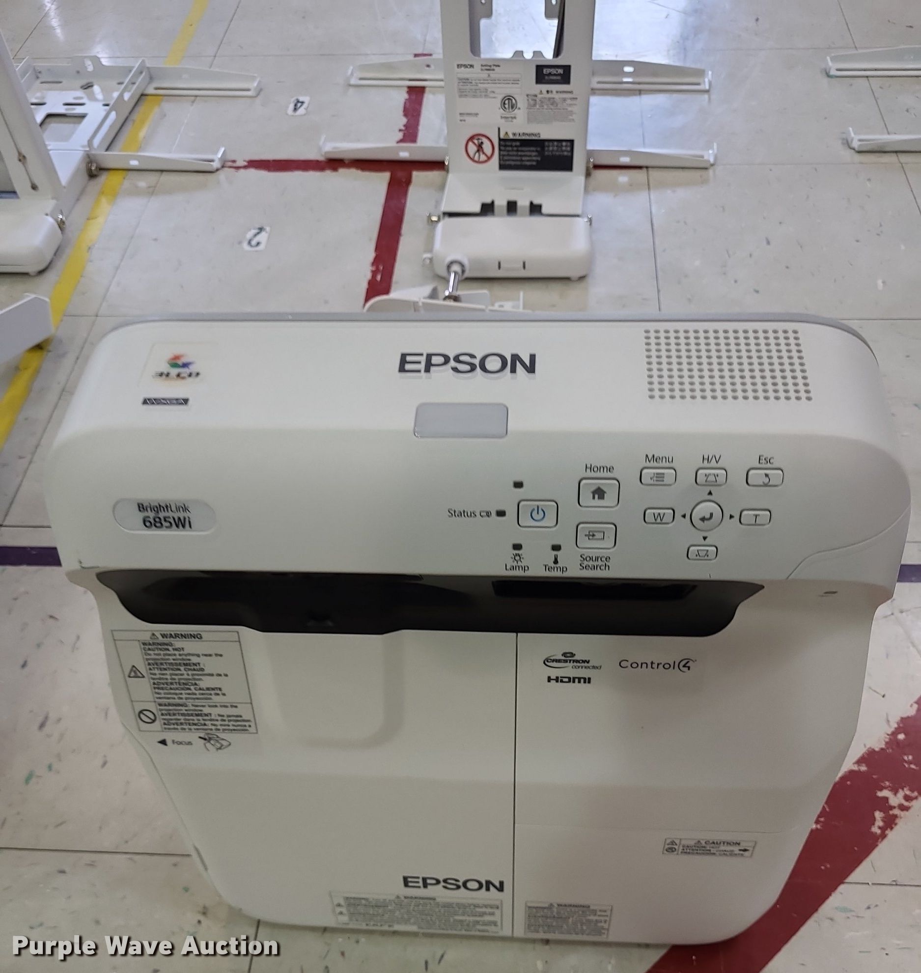 Purple Wave is selling a used Electronics in Kansas. This item is a (9) Epson projectors with the following: Model 585Wi, (8) Model 685Wi, (10) mounts, Parts may be missing