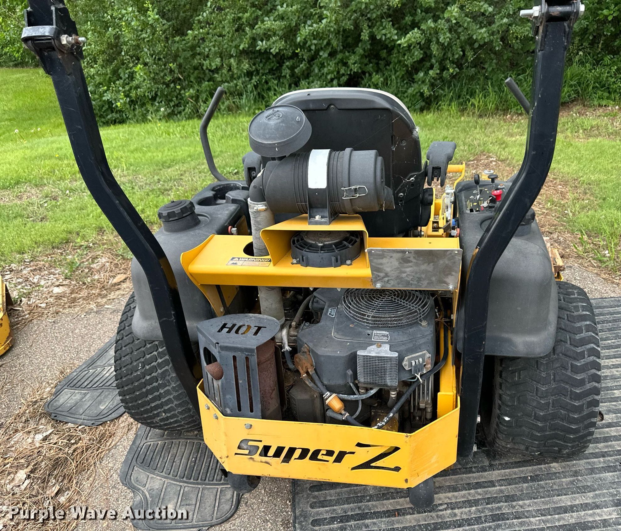 Hustler Super Z ZTR lawn mower. Cutting width: 72". Engine Cylinders: 2, Fuel type: Gas. Transmission Hydrostatic. Tires Rear: 24x12.00-12. Notes Engine issues, oil leak. Kansas Wildlife & Parks. 101 W Scott Lake Dr. Scott City, KS 67871
