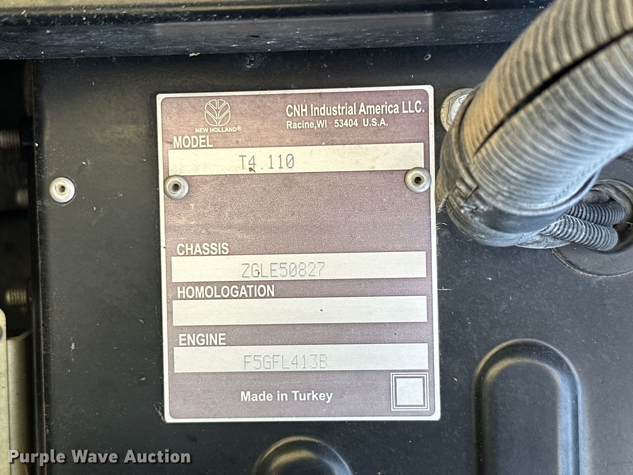 Purple Wave is selling a used Tractor in Oklahoma. This item is a 2016 New Holland T4.110 MFWD tractor with the following: Hours: 1,567 on meter, Serial: ZGLE50827