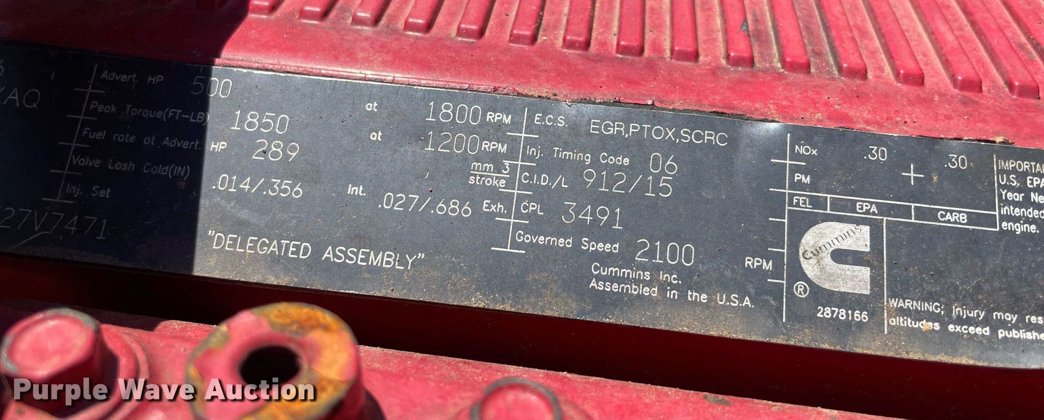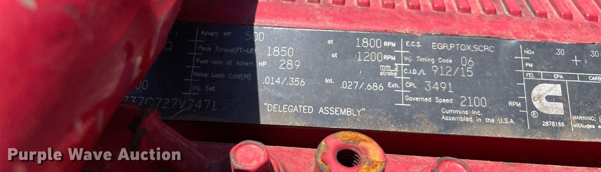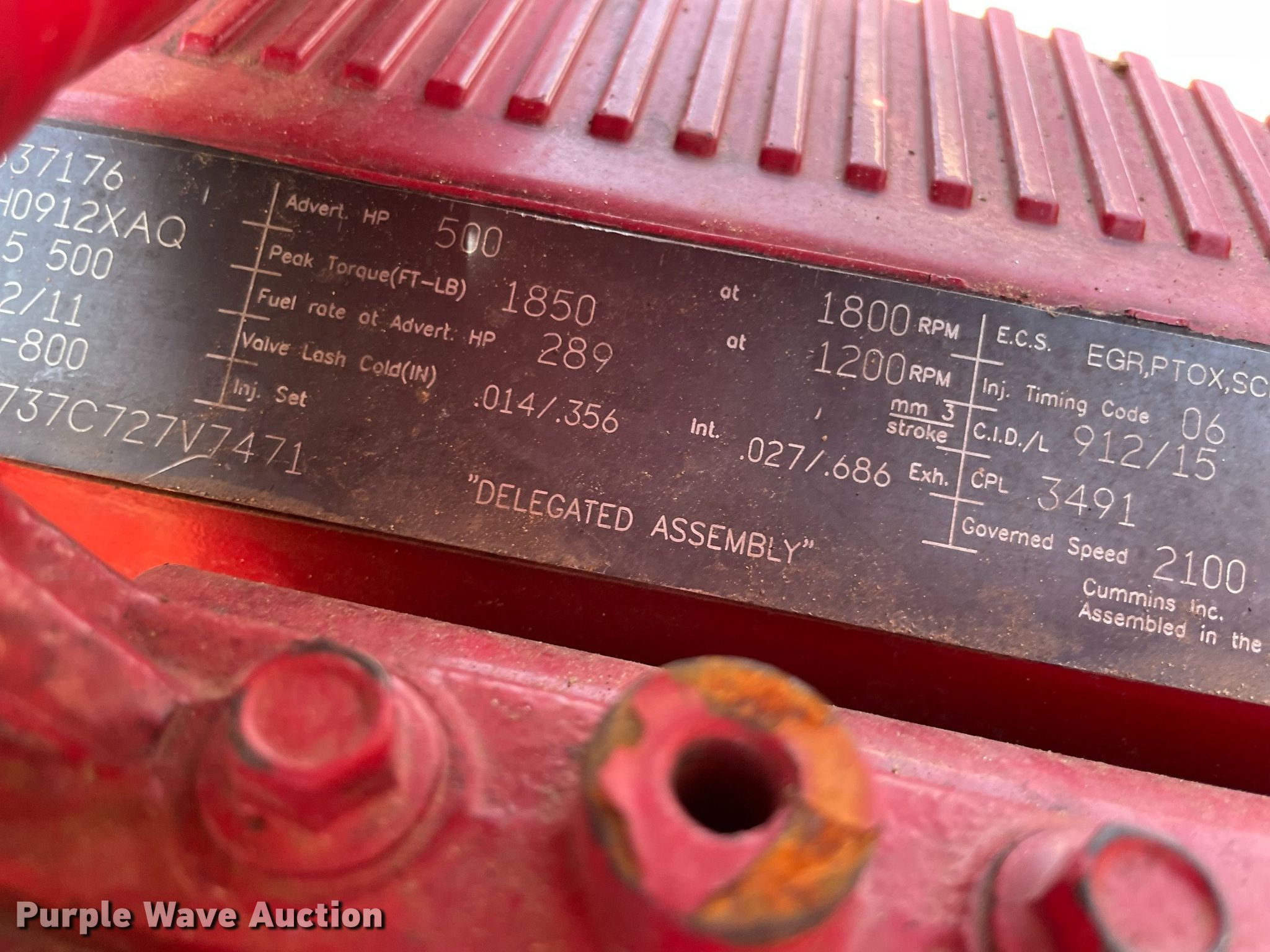 2012 Peterbilt 388 semi truck. Miles: 734,140 on odometer, Hours: 23,530 on meter, VIN: 1XPWD49X4CD173215. Engine Cummins ISX15 500, Displacement: 15.0L, Cylinders: 6, Fuel type: Diesel, Engine brake. Transmission Eaton Fuller, Manual, Speed: 13. Chassis Axles: Tandem, Differential lock: Full, Suspension: Air, Brakes: Air, GVWR: 52,000 lbs. Interior AC, Heat, Heated mirrors, Power windows, Power locks, Cruise control, Air ride cab, Sleeper Sleeper length: 42", Beds: Single, Rear climate control. Features Fifth wheel type: Air operated, Sliding, Fuel tank: Dual. Tires Size: 11R22.5. Oklahoma title. Mileage has not been verified. Exempt will be written in the odometer disclosure on the title. Title distribution may be delayed up to 30 days from verification of funds. 4302 OK-29. Marlow, OK 73055