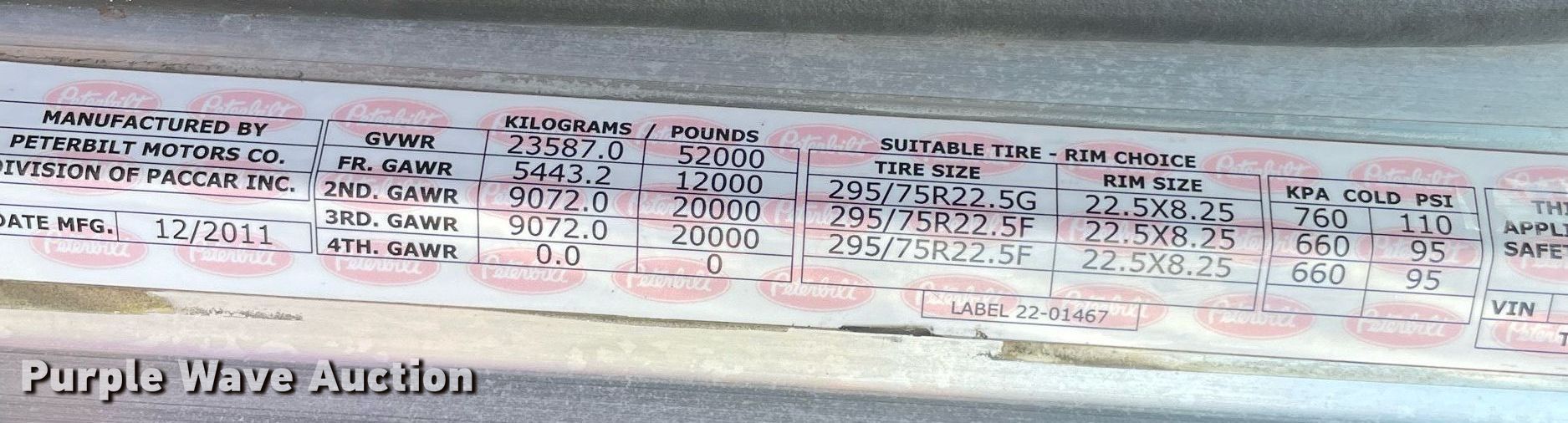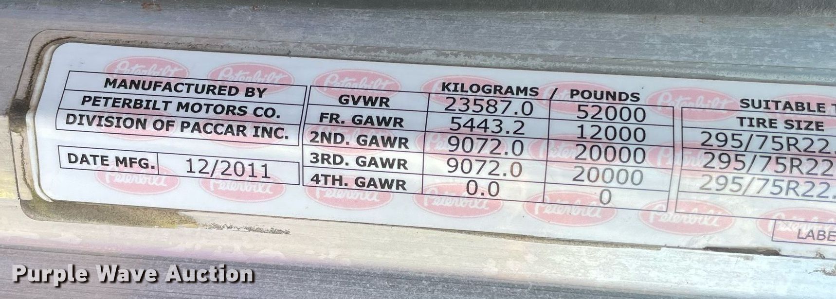 Take a look at this used 2012 Peterbilt 388 semi truck being sold on July 13th, 2023 in the SOLD! July 13 Truck and Trailer Auction made by Peterbilt. Take a look at all of the item information below or take a look at similar auctions for Trucks.