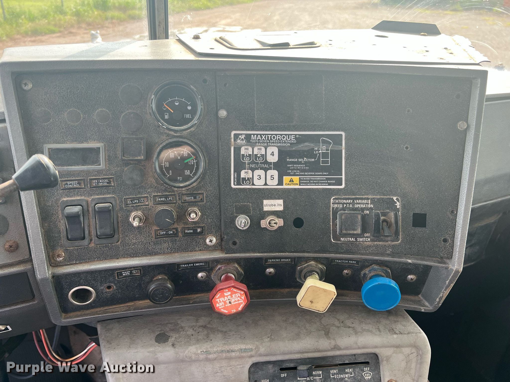 2001 Mack RD690S dump truck. Miles: 224,077 on odometer, Hours: 14,274 on meter, VIN: 1M2P264Y91M033032. Engine Mack , Displacement: 12.0L, Cylinders: 6, Fuel type: Diesel. Transmission Mack Maxitorque, Manual, Speed: 7. Chassis Axles: Tandem, Suspension: Camelback, Brakes: Air, PTO. Interior AC, Heat, Cruise control. Features Dump bed Godwin, 14' L x 96" W, Side height: 40", Side board height: 6", Bed type: Steel, Ram: Single , End gate: Air operated. Tires Size: 11R24.5. Oklahoma title. Seller is an Oklahoma licensed motor vehicle dealer. Title will be assigned and distributed by the dealer. Please contact the seller for distribution questions. Oklahoma Truck & Equipment. 11042 SW Sheridan Rd. Lawton, OK 73505