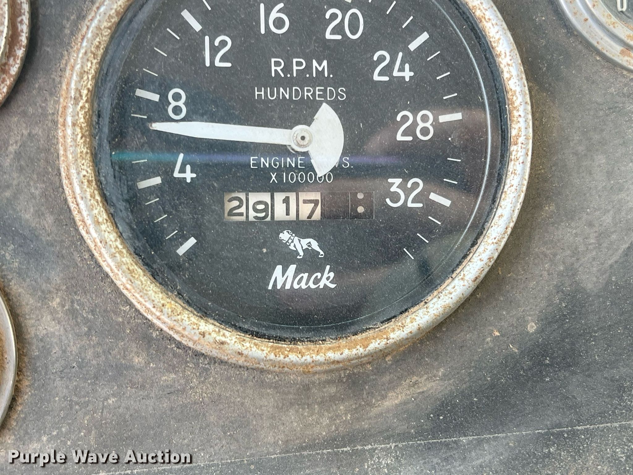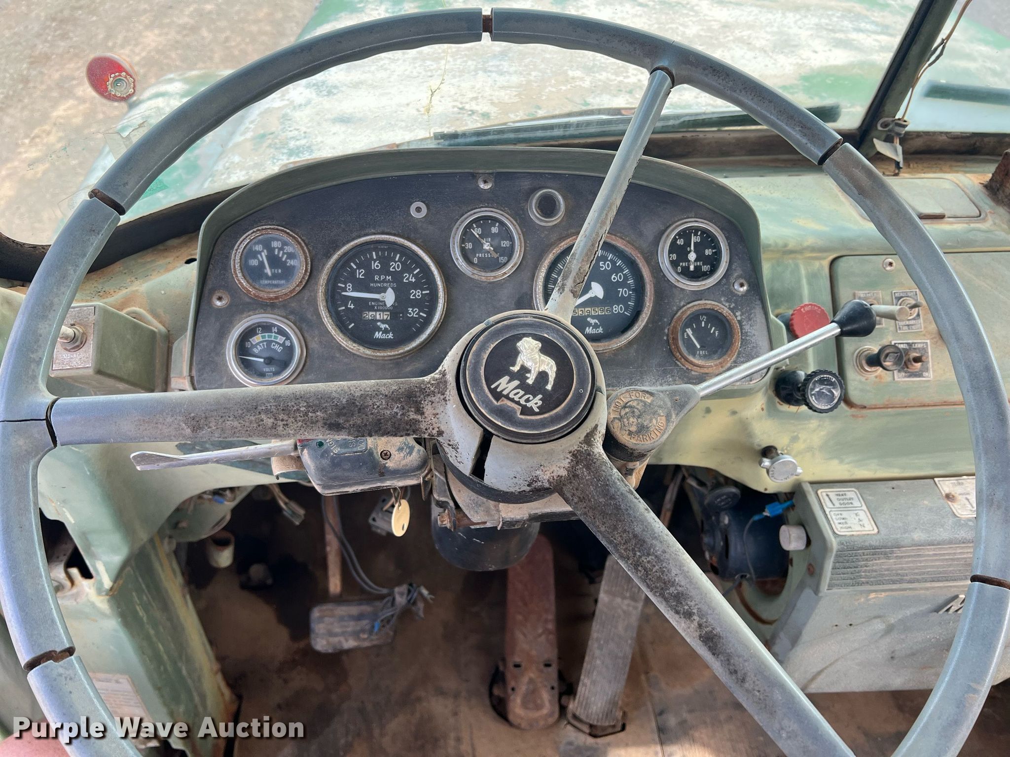 1971 Mack R685ST semi truck. Miles: 539,596 on odometer, Hours: 2,917 on meter, VIN: R685ST20652. Engine Mack, Cylinders: 6, Fuel type: Diesel. Transmission Manual. Chassis Axles: Tandem, Suspension: Spring over walking beam, Brakes: Air, PTO, Wet kit. Interior Heat. Features Deck plate: Steel, Fifth wheel type: Fixed, Fuel tank: Dual. Tires Size: 10.00-20. Notes Possible air system issues , Windshield chipped or cracked. Oklahoma classic title. Seller is an Oklahoma licensed motor vehicle dealer. Title will be assigned and distributed by the dealer. Please contact the seller for distribution questions. Oklahoma Truck & Equipment. 11042 SW Sheridan Rd. Lawton, OK 73505