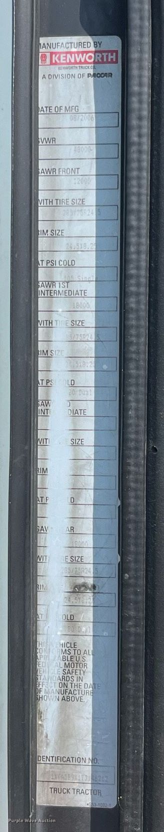 Purple Wave is selling a used Truck Tractor in Missouri. This item is a 2007 Kenworth T600 semi truck with the following: Miles: 1,263,038 on odometer, Hours: 34,869 on meter, VIN: 1XKADB9X17J146212