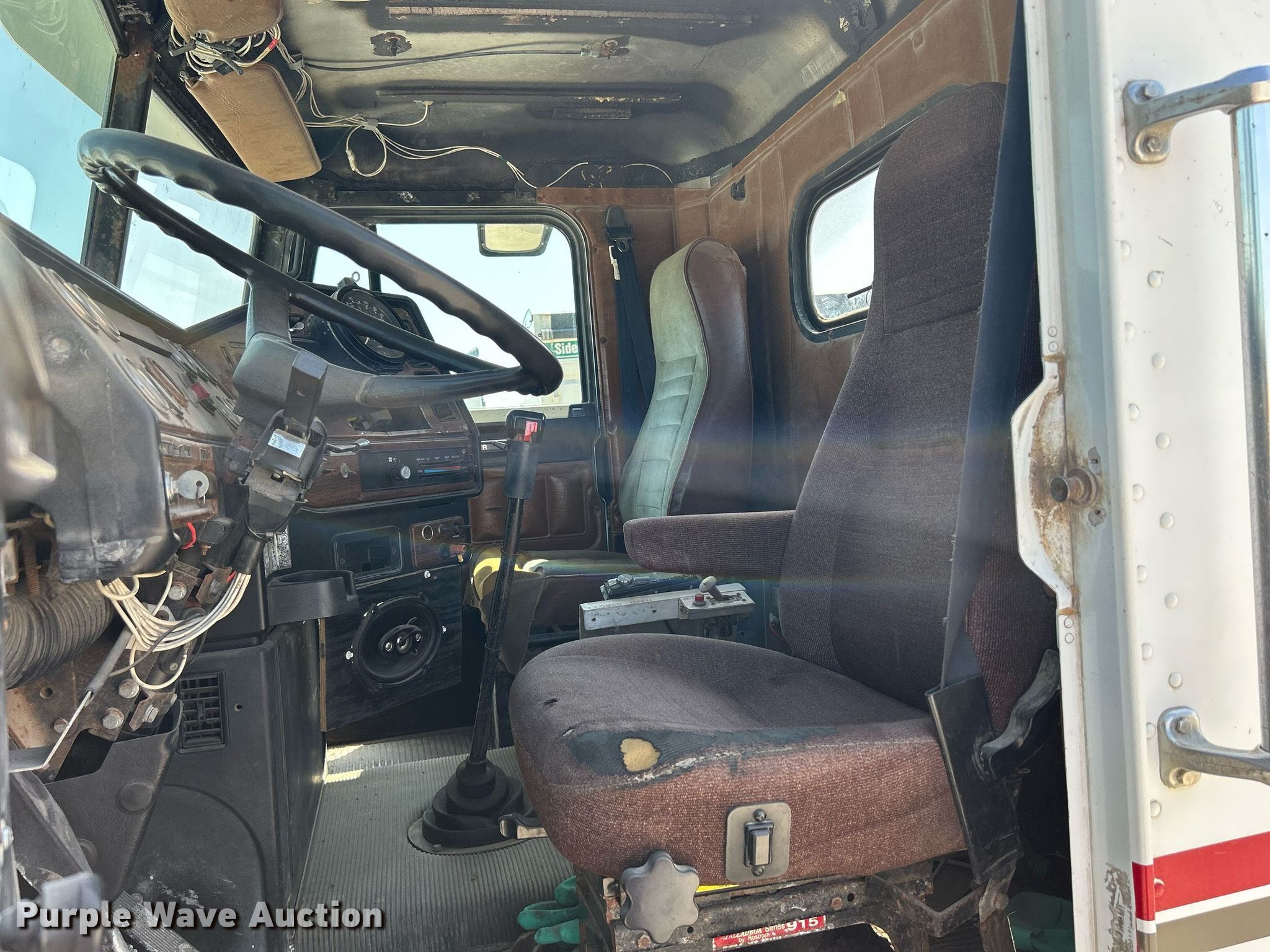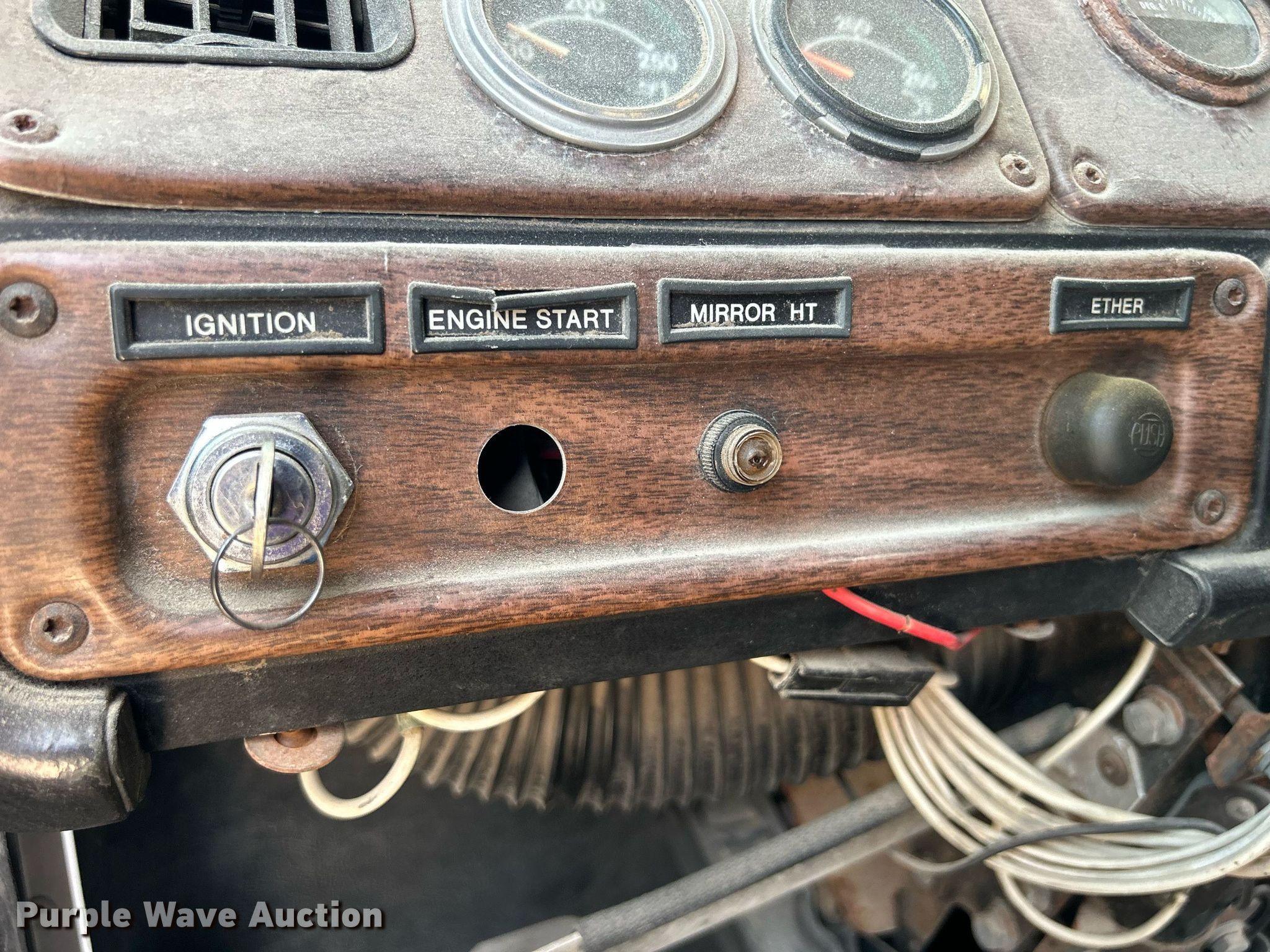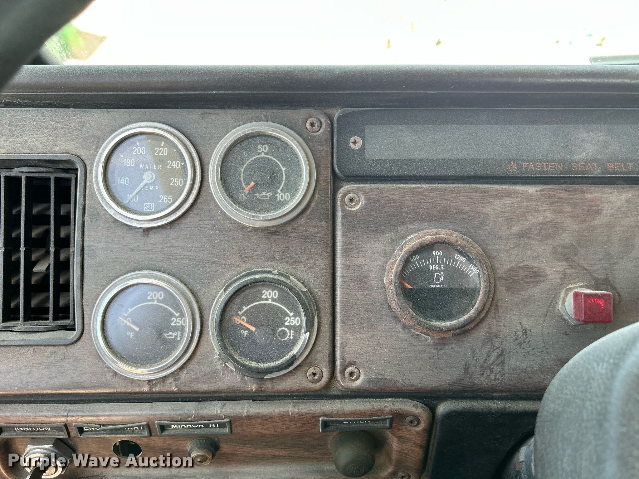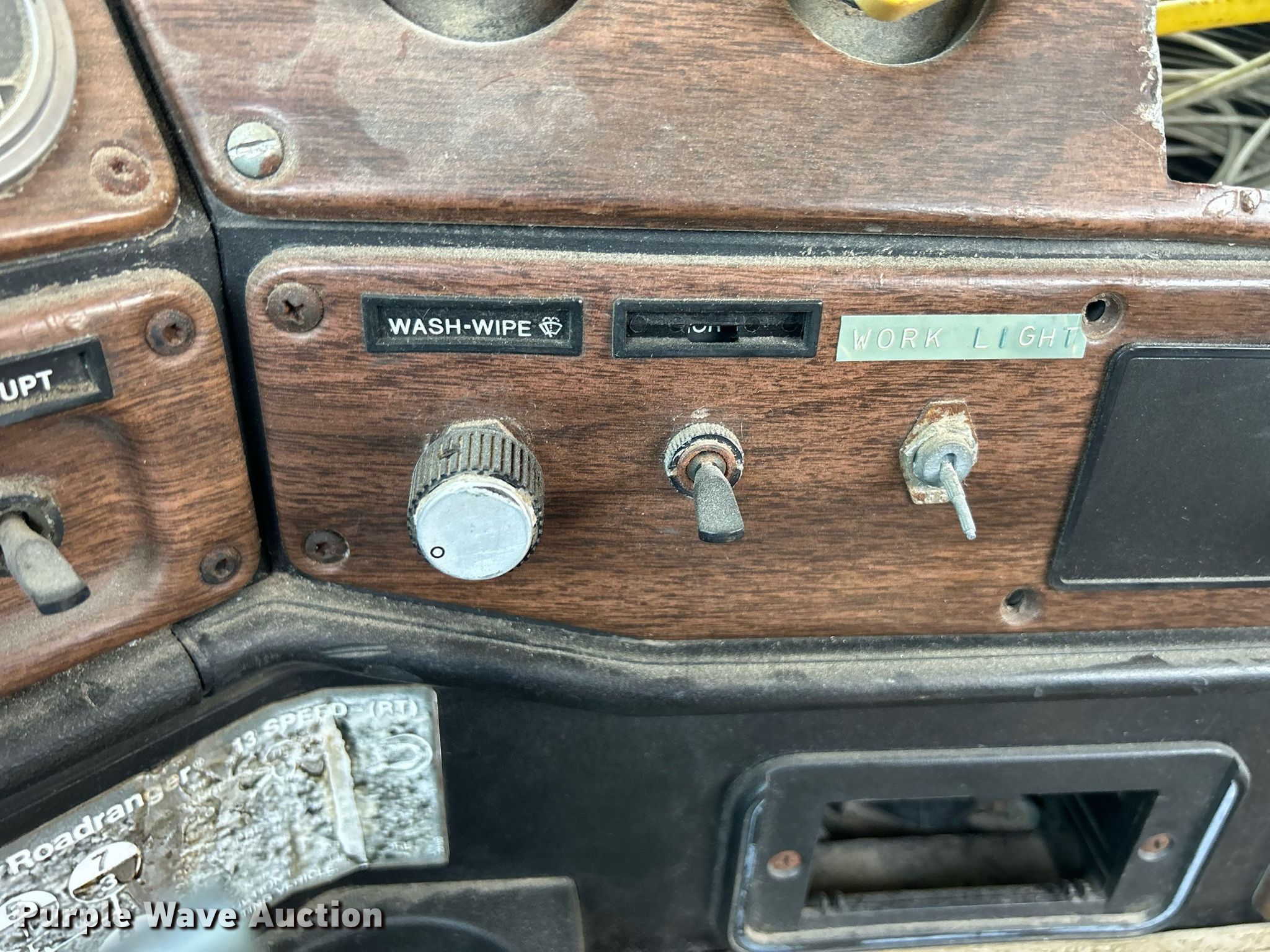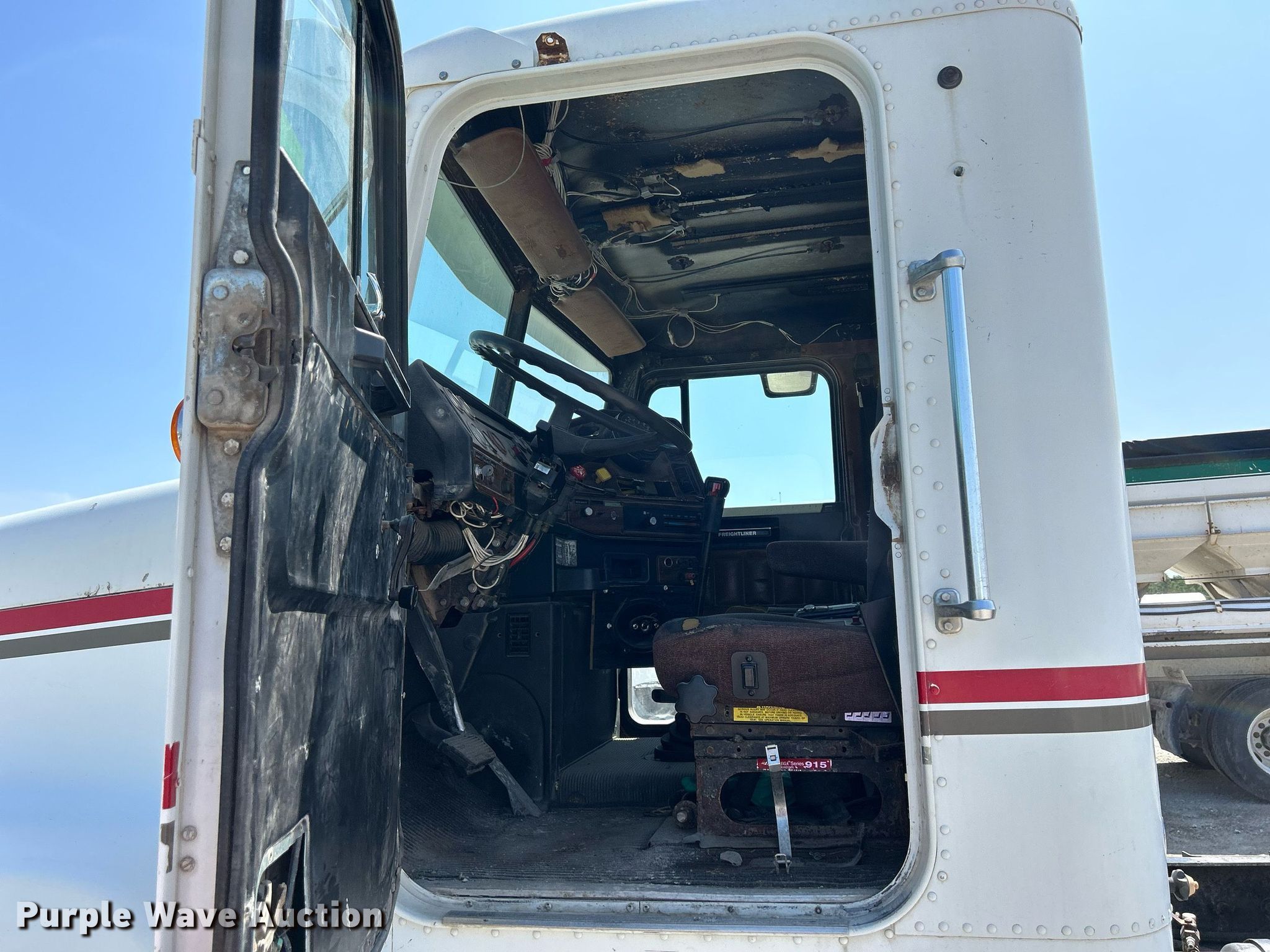 1990 Freightliner FLD semi truck. Miles: 672,545 on odometer, VIN: 1FV4DDY90LP374074, Unit #: 514. Engine Cummins, Displacement: 14.0L, Cylinders: 6, Fuel type: Diesel, Engine brake. Transmission Eaton Fuller Roadranger, Manual. Chassis Axles: Tandem, Differential lock: Inter-axle, Suspension: Spring, Brakes: Air, Truck chassis: 20', Wheelbase: 240". Interior AC, Heat. Features Fuel tank: Dual. Tires Front: 315/80R22.5, Rear: 11R24.5. Notes Dead battery, Non-operational hood springs, Driveshaft disconnected , Non-operational engine , Non-operational unit, Unit must be towed or hauled. Iowa title. Title distribution may be delayed up to 30 days from verification of funds. Agriland FS. 30754 Iowa 149. Hedrick, IA 52563