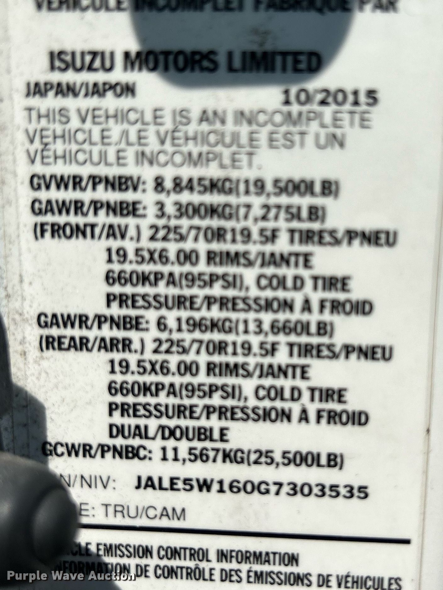 2016 Isuzu NRR refrigerated truck. Miles: 107,744 on odometer, VIN: JALE5W160G7303535, Unit #: 604530. Engine Isuzu 4HK11C, Cylinders: 4, Fuel type: Diesel. Transmission Automatic. Chassis Axles: Single, Suspension: Spring, Brakes: Hydraulic, GVWR: 19,500 lbs, Wheelbase: 152". Interior AC, Heat, Power windows, Power locks, Cruise control. Features Box bed Kidron 16RUIASEW90SP, Serial: 16k00409, 16' L x 7" W x 6" H, Floor: Aluminum, End gate lift Waltco, Capacity: 2,000 lbs, Refrigeration unit Thermo King T-680R Whisper.. Tires Size: 225/70R19.5. Notes Dash warning indicator: Check engine, Windshield chipped or cracked. * Possible engine issues. * Unit must be towed or hauled. Illinois title. Title distribution may be delayed up to 14 days from verification of funds. Aim Transportation Solutions. 782 Industrial Drive. Elmhurst, IL 60126
