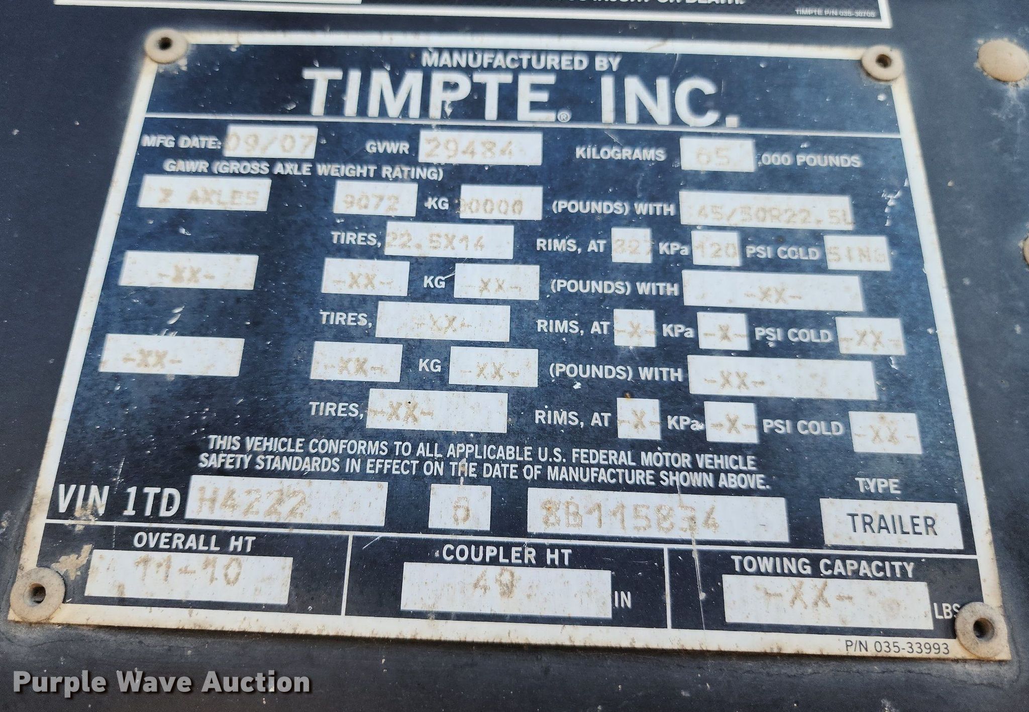 Purple Wave is selling a used Grain or Commodity Trailer in Missouri. This item is a 2008 Timpte grain trailer with the following: VIN: 1TDH422268B115834