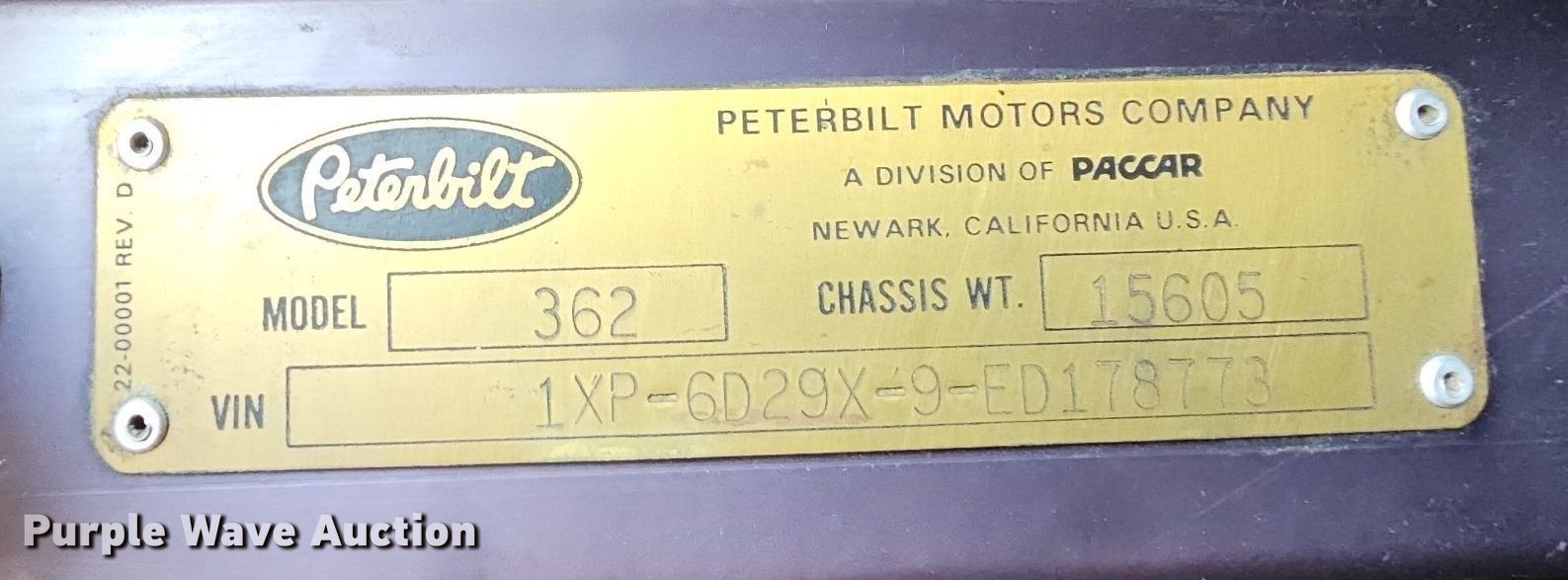 Purple Wave is selling a used Truck Tractor in Missouri. This item is a 1984 Peterbilt 362 semi truck with the following: Miles: 505,128 on odometer, VIN: 1XP6D29X9ED178773