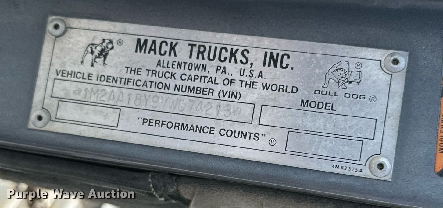 Purple Wave is selling a used Truck Tractor in Oklahoma. This item is a 1997 Mack CH613 semi truck with the following: Miles: 321,071 on odometer, Hours: 12,253 on meter, VIN: 1M2AA18Y9VW074213