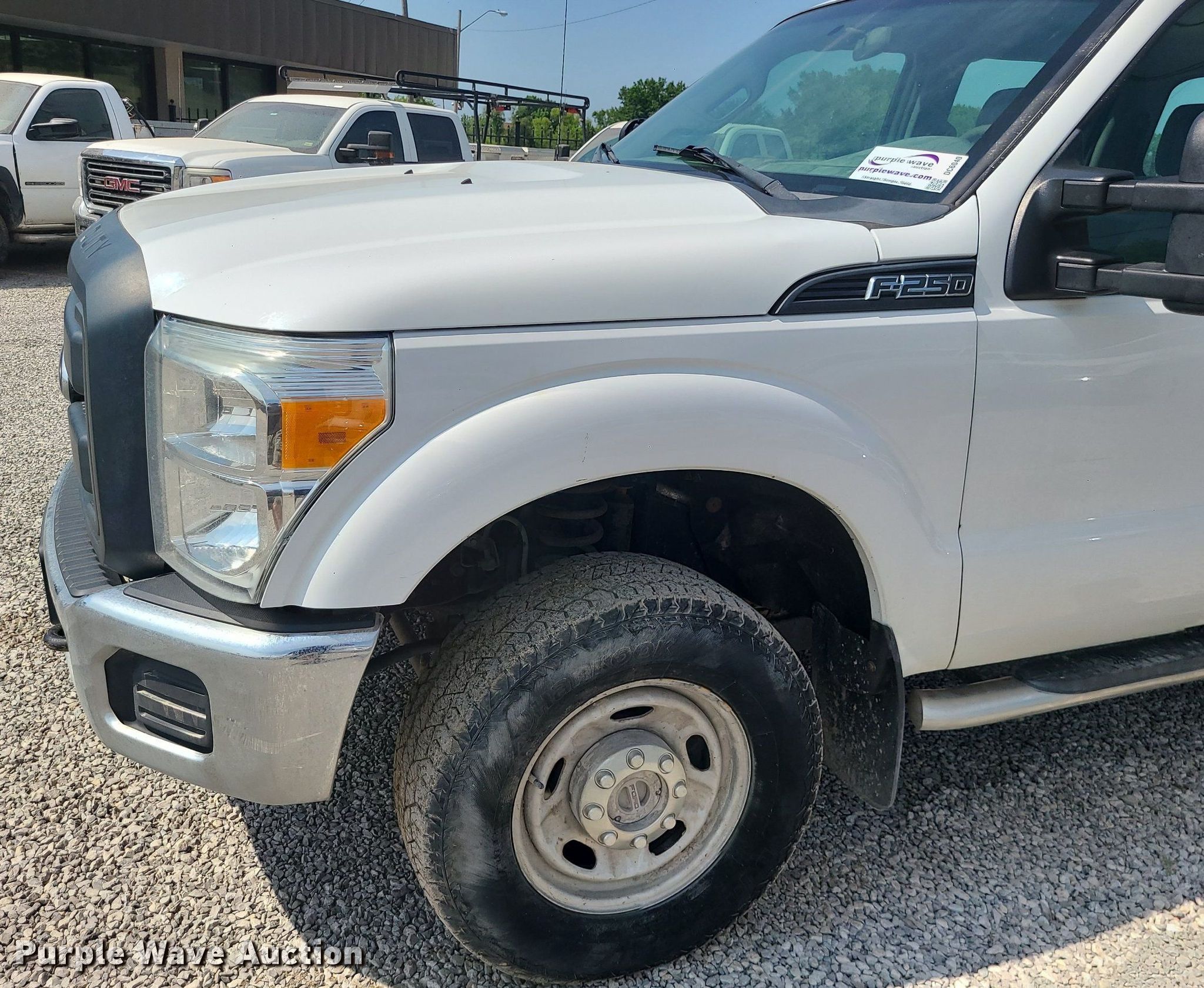 2013 Ford F250 Crew Cab pickup truck. Miles: 274,296 on odometer, VIN: 1FT7W2B66DEB40945. Engine Displacement: 6.2L V8 OHV, Cylinders: 8, Fuel type: Gas. Transmission Automatic, Four wheel drive. Interior AC, Heat, Heated mirrors, Power windows, Power locks, Cruise control. Tires Size: 265/70R17. Missouri title. Title distribution may be delayed up to 14 days from verification of funds. Kissick Construction Company. 8131 Indiana Ave. Kansas City, MO 64132