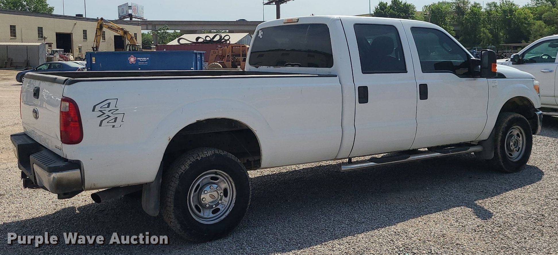 2013 Ford F250 Super Duty Crew Cab pickup truck. Miles: 267,359 on odometer, VIN: 1FT7W2B65DEB45926. Engine Displacement: 6.2L V8 OHV, Cylinders: 8, Fuel type: Gas. Transmission Automatic, Four wheel drive. Interior AC, Heat, Heated mirrors, Power windows, Power locks, Cruise control. Tires Size: 265/70R17. Notes Dash warning indicator: TPMS. Missouri title. Title distribution may be delayed up to 14 days from verification of funds. Kissick Construction Company. 8131 Indiana Ave. Kansas City, MO 64132