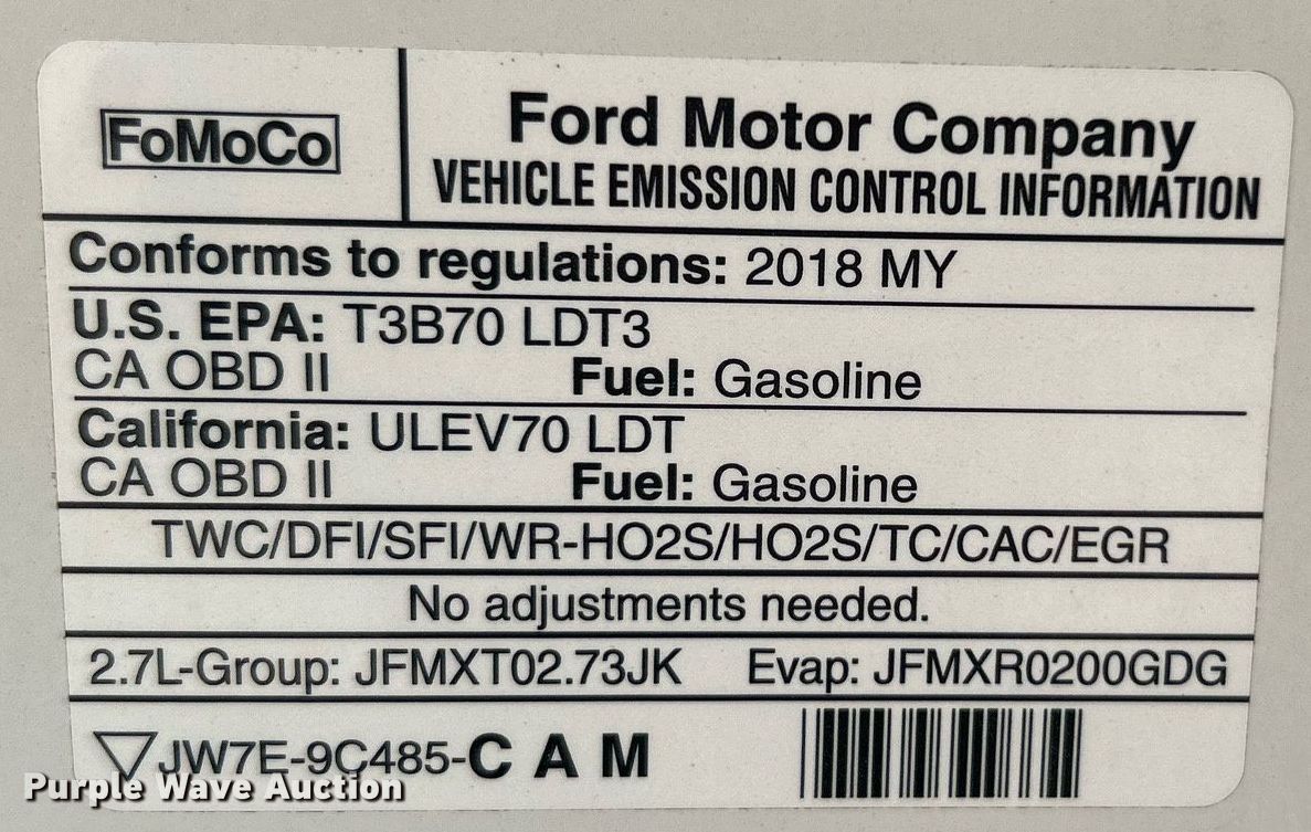 2018 Ford F150 XLT SuperCrew pickup truck. Miles: 147,190 on odometer, VIN: 1FTEW1CP3JKD02360, Unit #: 102066. Engine Displacement: 2.7L V6 DOHC, Cylinders: 6, Fuel type: Gas. Transmission Automatic. Interior AC, Heat, Seat: Power driver, Power passenger, Power windows, Power locks, Cruise control, Backup camera. Tires Size: 265/60R18. Oklahoma title. Title distribution may be delayed up to 14 days from verification of funds. TLS Group, Inc.. 1326 West 37th Place. Tulsa, OK 74107