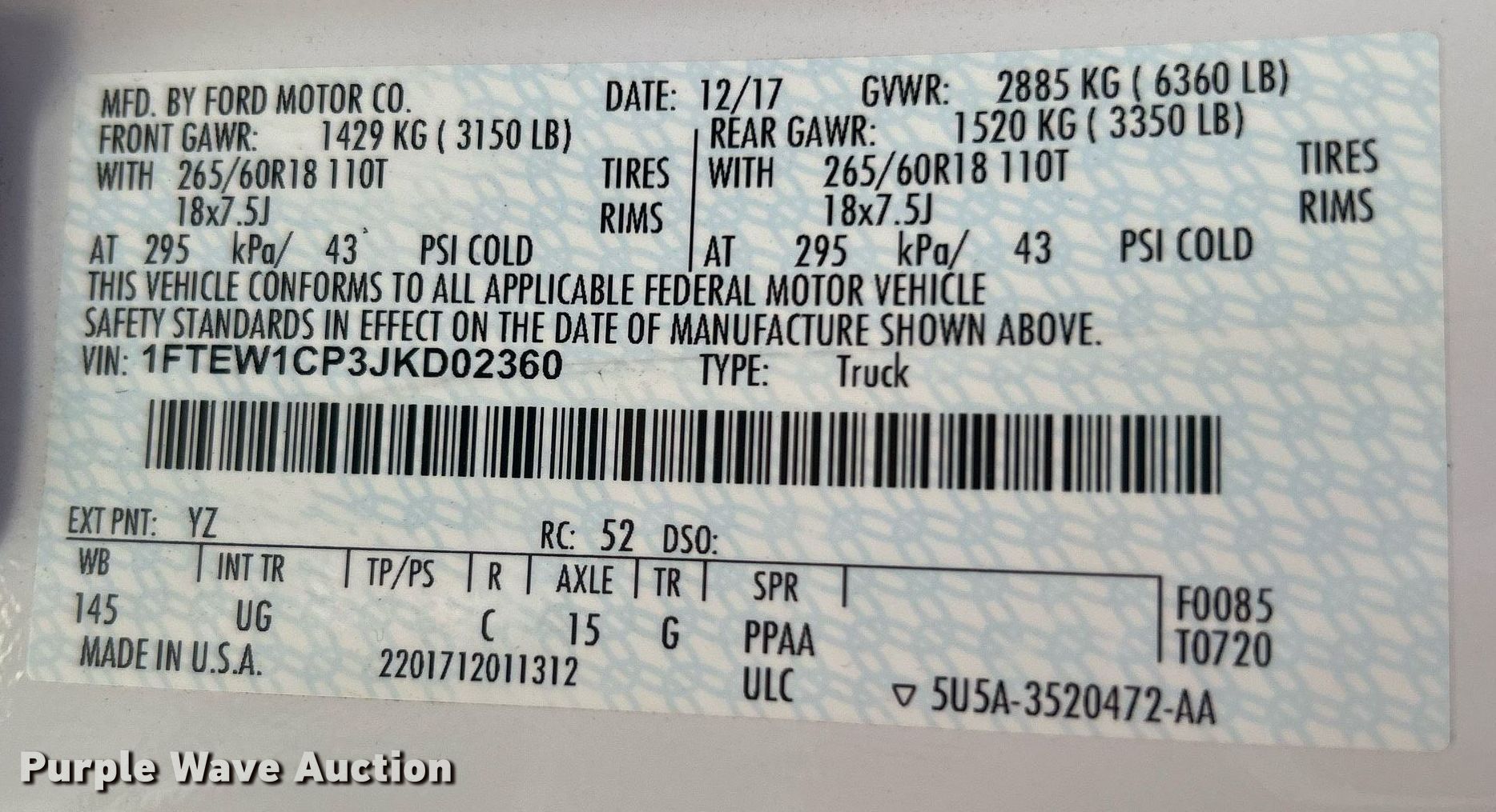 Purple Wave is selling a used 1/2 Ton Pickup or Van in Oklahoma. This item is a 2018 Ford F150 XLT SuperCrew pickup truck with the following: Miles: 147,190 on odometer, VIN: 1FTEW1CP3JKD02360, Unit #: 102066