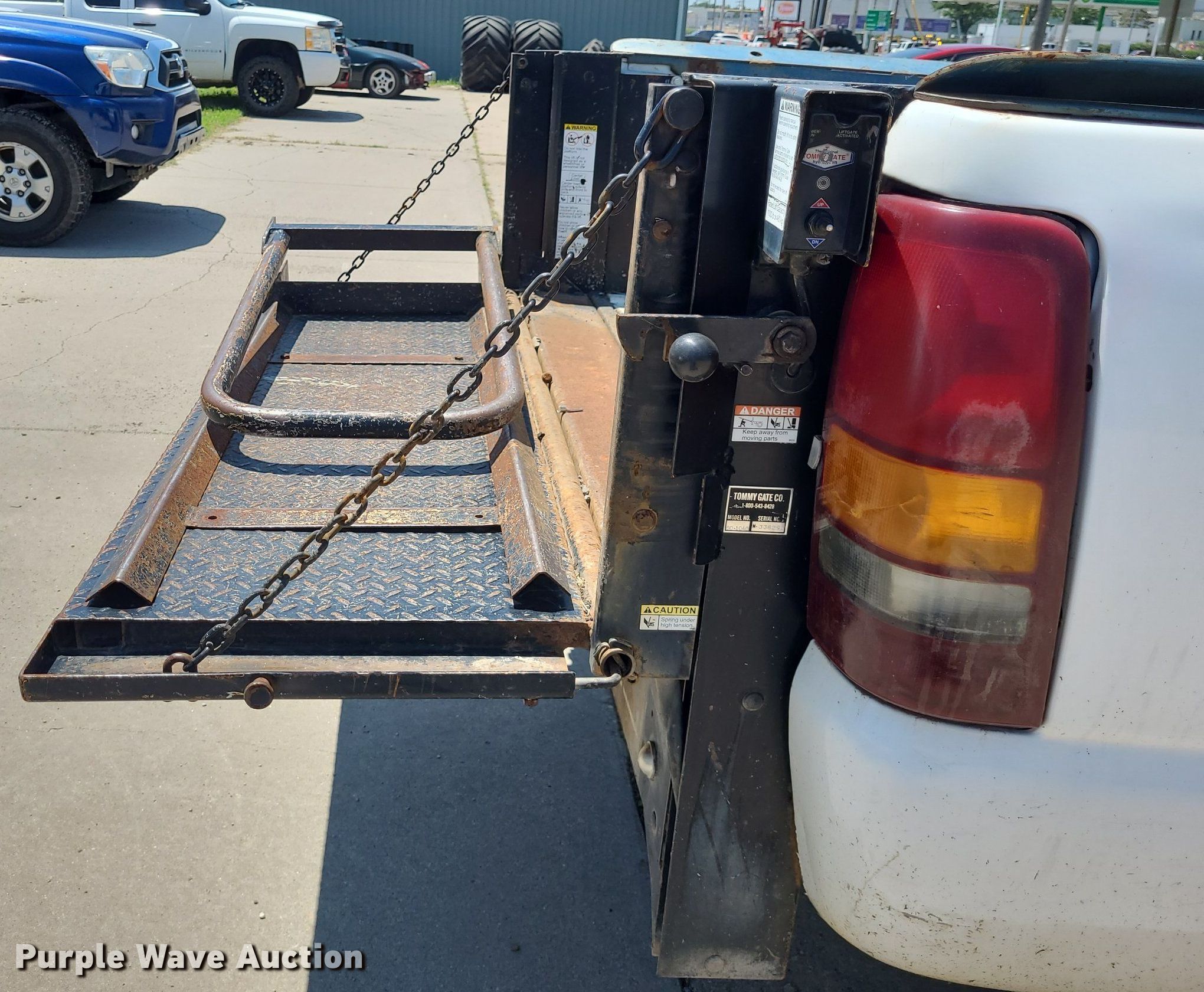2002 Chevrolet Silverado 2500 pickup truck. Miles: 192,027 on odometer, VIN: 1GCGC24U12Z151507. Engine Displacement: 6.0L V8 OHV, Cylinders: 8, Fuel type: Gas. Transmission Manual, Speed: 5. Interior AC, Heat, Power windows, Power locks, Cruise control. Features End gate lift Tommy Gate 601040, Serial: 338292, Capacity: 1,000 lbs. Tires Front: 235/85R16, Rear: 245/75R16. Notes Dash warning indicator: Airbag, Non-operational parking brake. Kansas title. Title distribution may be delayed up to 14 days from verification of funds. Kansas Land & Tire. 611 Prairie St. Emporia, KS 66801